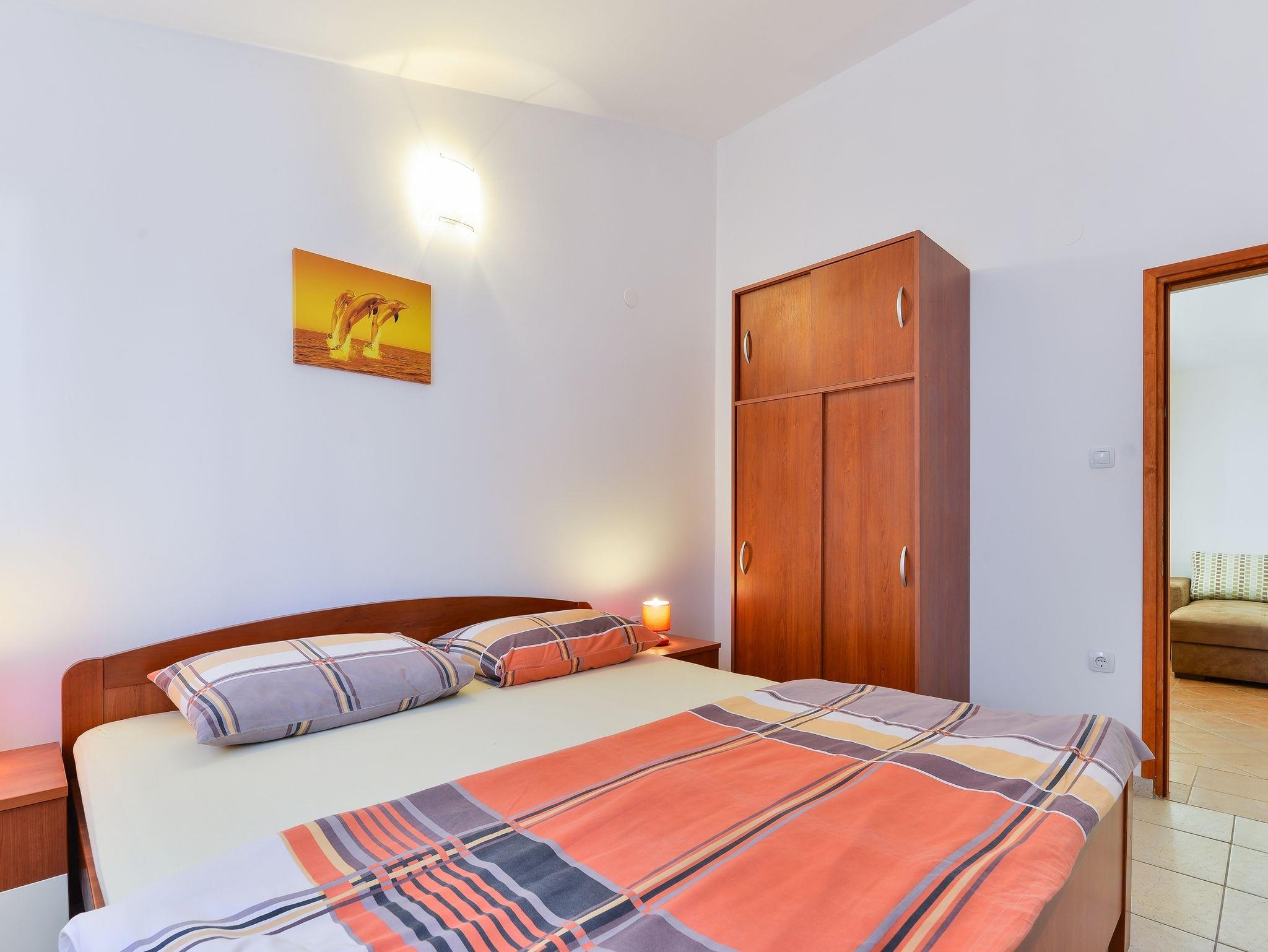 Ferienwohnung bietet Platz für 6 Gäste. Die Betten sind in Schlafzimmern, die es 2 gibt, und in Wohnzimmer, innerhalb einer Gesamtfläche von 49m2, angeordnet. Die Gäste haben eine eigene Terrasse zur Verfügung, auf der sie in warmen Sommernächten genießen können. Das Apartment bietet Meerblick. Es ist erlaubt, Speisen auf dem Gemeinschafts-Grill vorzubereiten. IM PREIS INBEGRIFFEN: Kurtaxe, Endreinigung, Klimatisierung, Parkplatz, Internet, Föhn. VERBINDLICHE ZUSÄTZLICHE KOSTEN: Aufzahlung für Kurzaufenthalte (prozentualer Zuschlag pro Nächtigungsanzahl: 30% - 1, 20% - 2, 10% - 3). Die Verfügbarkeit zusätzlicher Dienstleistungen in Ihrem reservierten Termin und die Preise derselben (falls nicht aufgeführt) müssen im Voraus überprüft werden. Zusätzliche Dienstleistungen die in der Zahlungsaufforderung nicht aufgeführt sind werden direkt beim Vermieter bezahlt, angenommen der Gast nutzt auch diese.