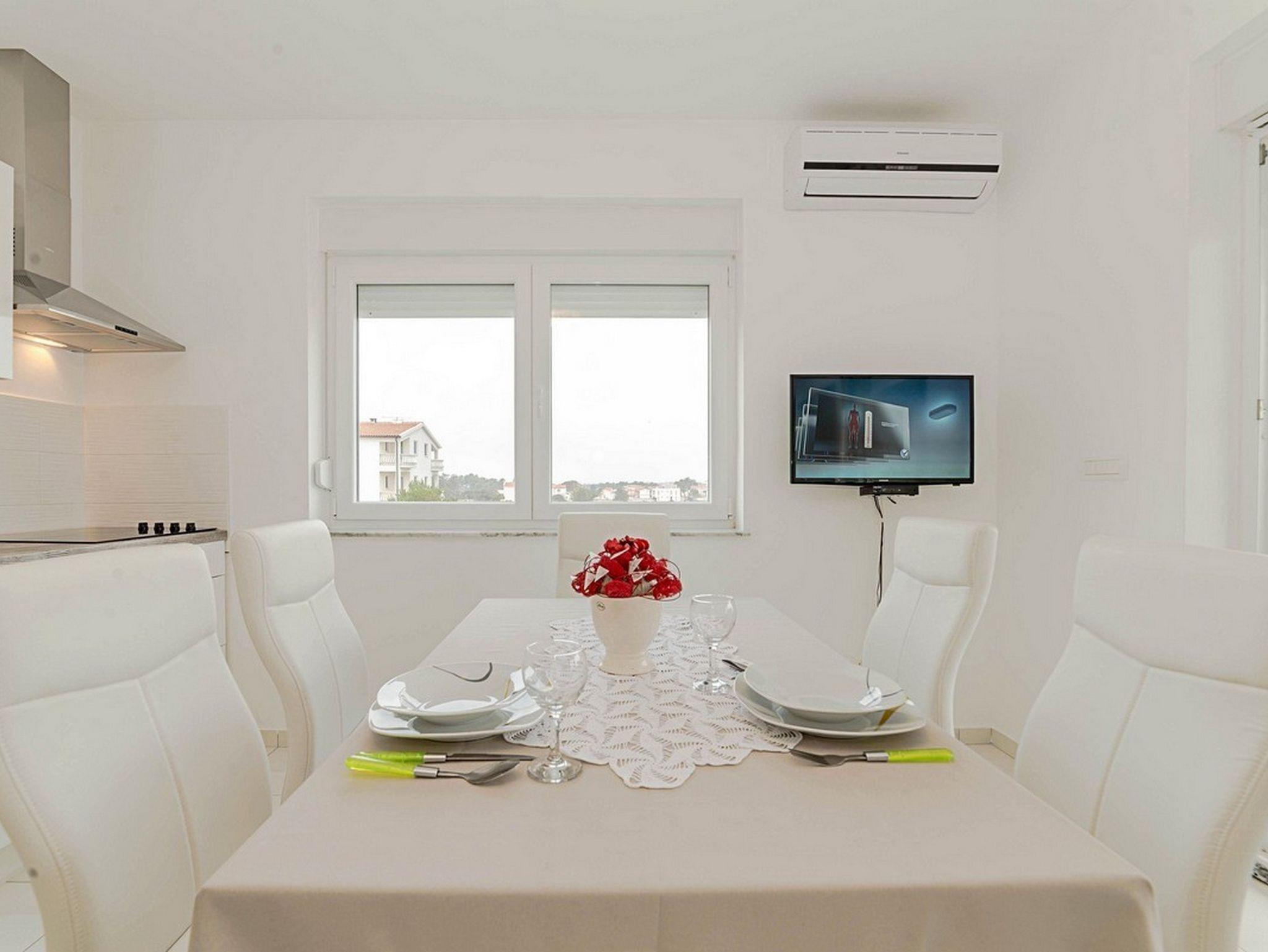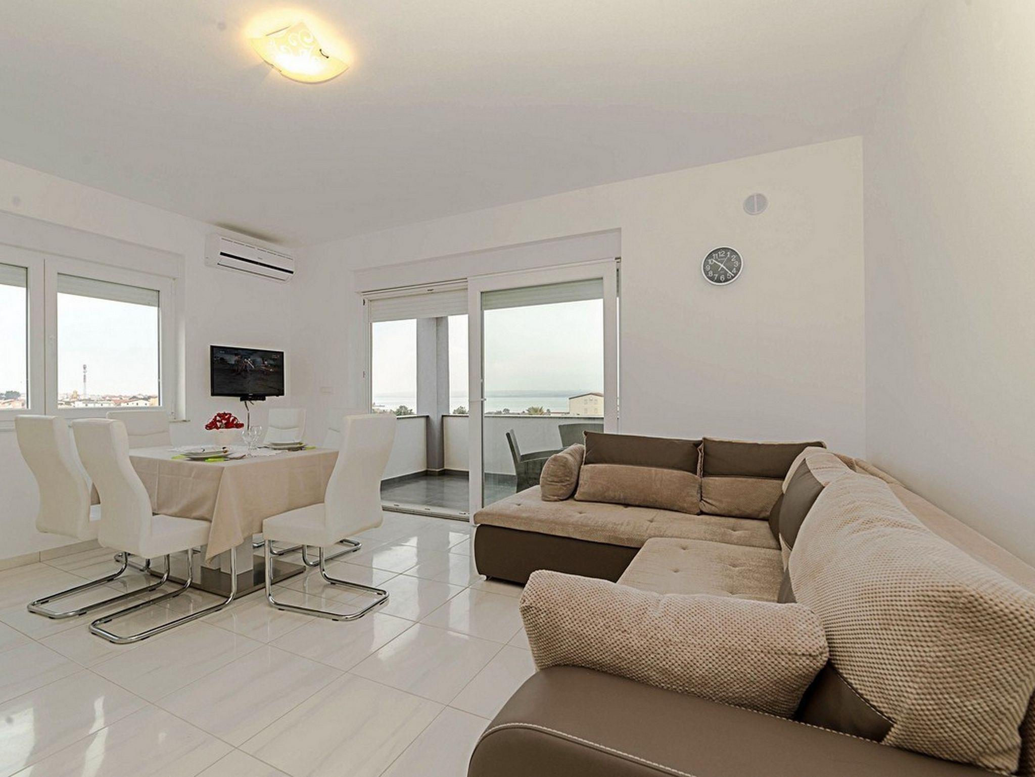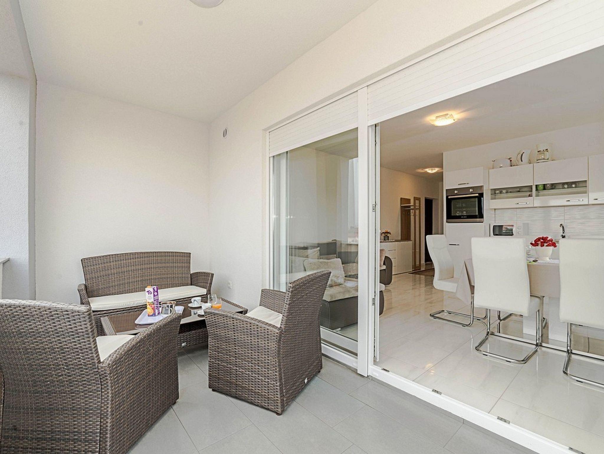 Ferienwohnung bietet Platz für 6 Gäste. Die Betten sind in Schlafzimmern, die es 2 gibt, und in Wohnzimmer, innerhalb einer Gesamtfläche von 55m2, angeordnet. Die Gäste haben einen eigenen Balkon zur Verfügung, auf der sie in warmen Sommernächten genießen können. Das Apartment bietet Meerblick. Es ist erlaubt, Speisen auf dem Gemeinschafts-Grill vorzubereiten. IM PREIS INBEGRIFFEN: Kurtaxe, Endreinigung, Klimatisierung, Parkplatz, Internet, Föhn. VERBINDLICHE ZUSÄTZLICHE KOSTEN: Aufzahlung für Kurzaufenthalte (prozentualer Zuschlag pro Nächtigungsanzahl: 30% - 1, 20% - 2, 10% - 3). Die Verfügbarkeit zusätzlicher Dienstleistungen in Ihrem reservierten Termin und die Preise derselben (falls nicht aufgeführt) müssen im Voraus überprüft werden. Zusätzliche Dienstleistungen die in der Zahlungsaufforderung nicht aufgeführt sind werden direkt beim Vermieter bezahlt, angenommen der Gast nutzt auch diese.