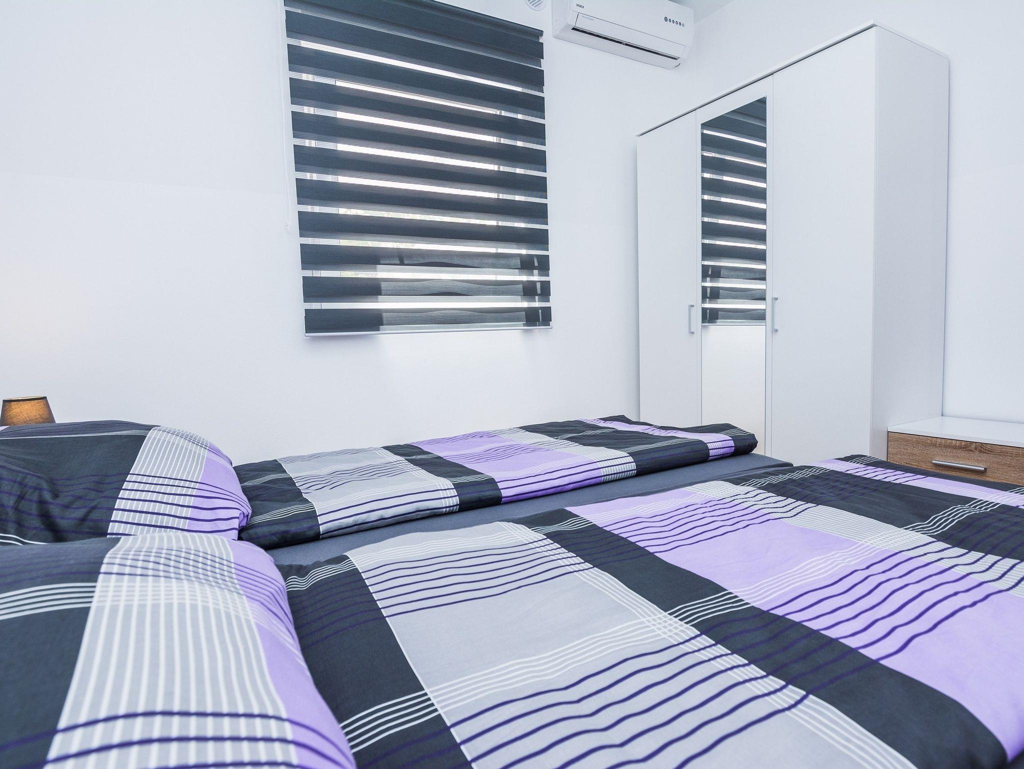 Ferienwohnung bietet Platz für 4 Gäste. Die Betten sind in Schlafzimmern, die es 1 gibt, und in Wohnzimmer, innerhalb einer Gesamtfläche von 30m2, angeordnet. Die Gäste haben eine eigene Terrasse zur Verfügung, auf der sie in warmen Sommernächten genießen können. Es ist erlaubt, Speisen auf dem Gemeinschafts-Grill vorzubereiten. IM PREIS INBEGRIFFEN: Kurtaxe, Endreinigung, Klimatisierung, Parkplatz, Internet, Kinderbett, Föhn. VERBINDLICHE ZUSÄTZLICHE KOSTEN: Aufzahlung für Kurzaufenthalte (prozentualer Zuschlag pro Nächtigungsanzahl: 30% - 1, 20% - 2, 10% - 3). Die Verfügbarkeit zusätzlicher Dienstleistungen in Ihrem reservierten Termin und die Preise derselben (falls nicht aufgeführt) müssen im Voraus überprüft werden. Zusätzliche Dienstleistungen die in der Zahlungsaufforderung nicht aufgeführt sind werden direkt beim Vermieter bezahlt, angenommen der Gast nutzt auch diese.