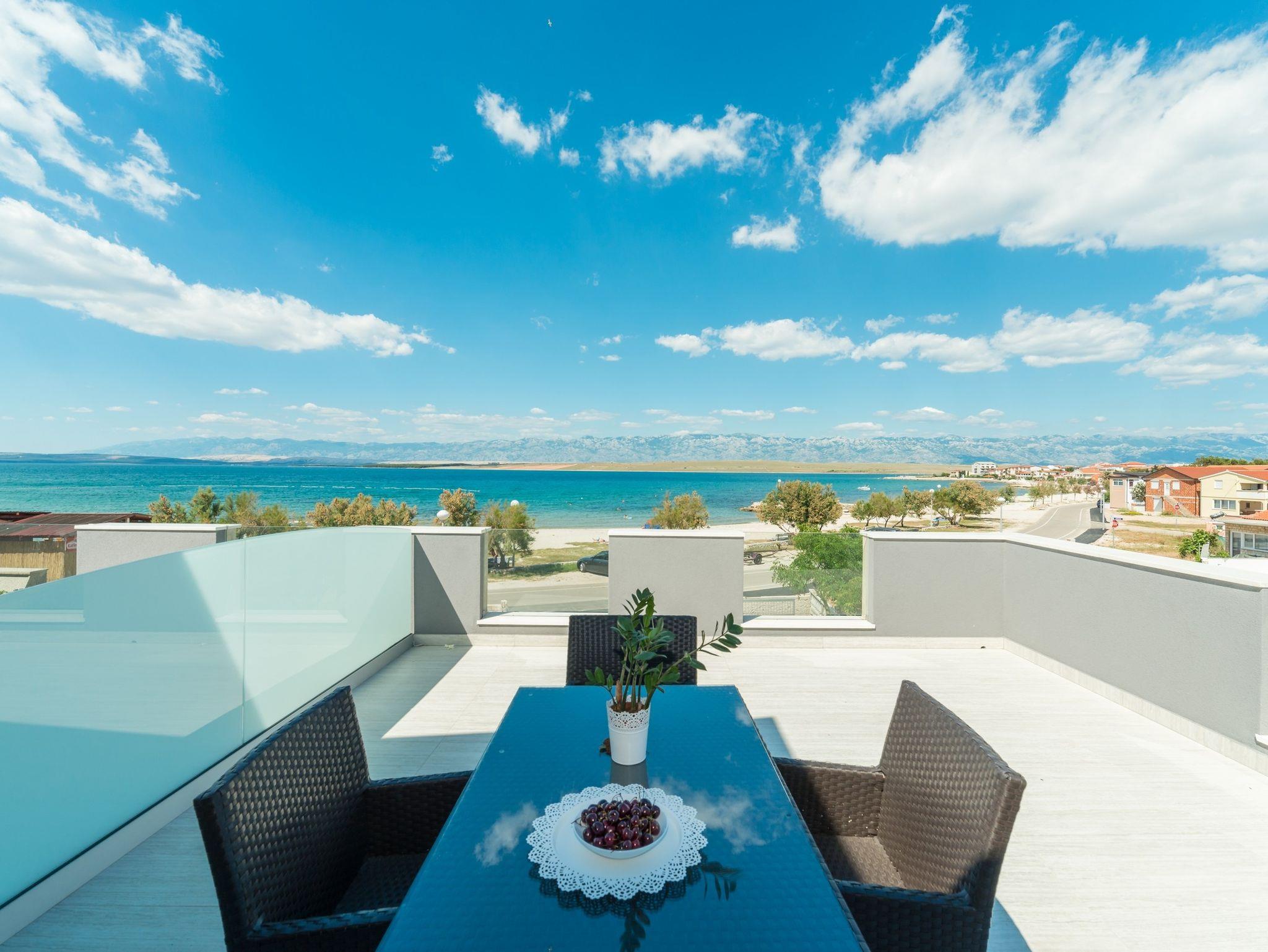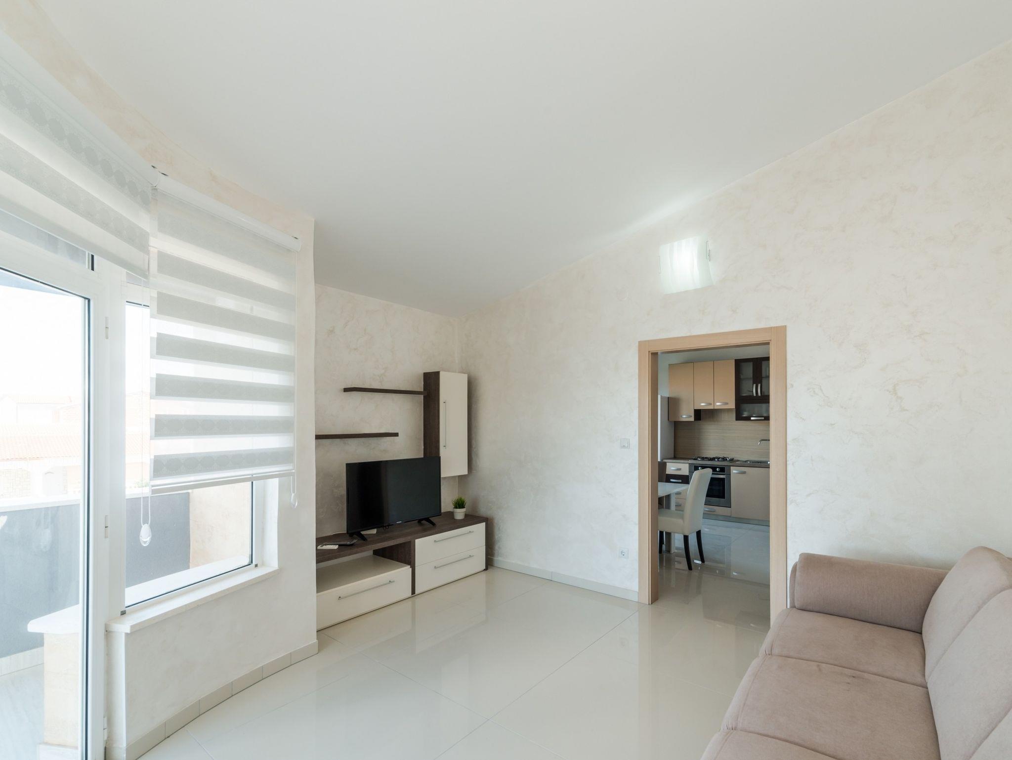 Ferienwohnung bietet Platz für 6 Gäste. Die Betten sind in Schlafzimmern, die es 2 gibt, und in Wohnzimmer, innerhalb einer Gesamtfläche von 59m2, angeordnet. Die Gäste haben eine eigene Terrasse zur Verfügung, auf der sie in warmen Sommernächten genießen können. Das Apartment bietet Meerblick. Es ist erlaubt, Speisen auf dem Gemeinschafts-Grill vorzubereiten. IM PREIS INBEGRIFFEN: Kurtaxe, Endreinigung, Klimatisierung, Parkplatz, Internet, Wäschewaschen, Kinderbett, Föhn. VERBINDLICHE ZUSÄTZLICHE KOSTEN: Aufzahlung für Kurzaufenthalte (prozentualer Zuschlag pro Nächtigungsanzahl: 30% - 1, 20% - 2, 10% - 3). Die Verfügbarkeit zusätzlicher Dienstleistungen in Ihrem reservierten Termin und die Preise derselben (falls nicht aufgeführt) müssen im Voraus überprüft werden. Zusätzliche Dienstleistungen die in der Zahlungsaufforderung nicht aufgeführt sind werden direkt beim Vermieter bezahlt, angenommen der Gast nutzt auch diese.