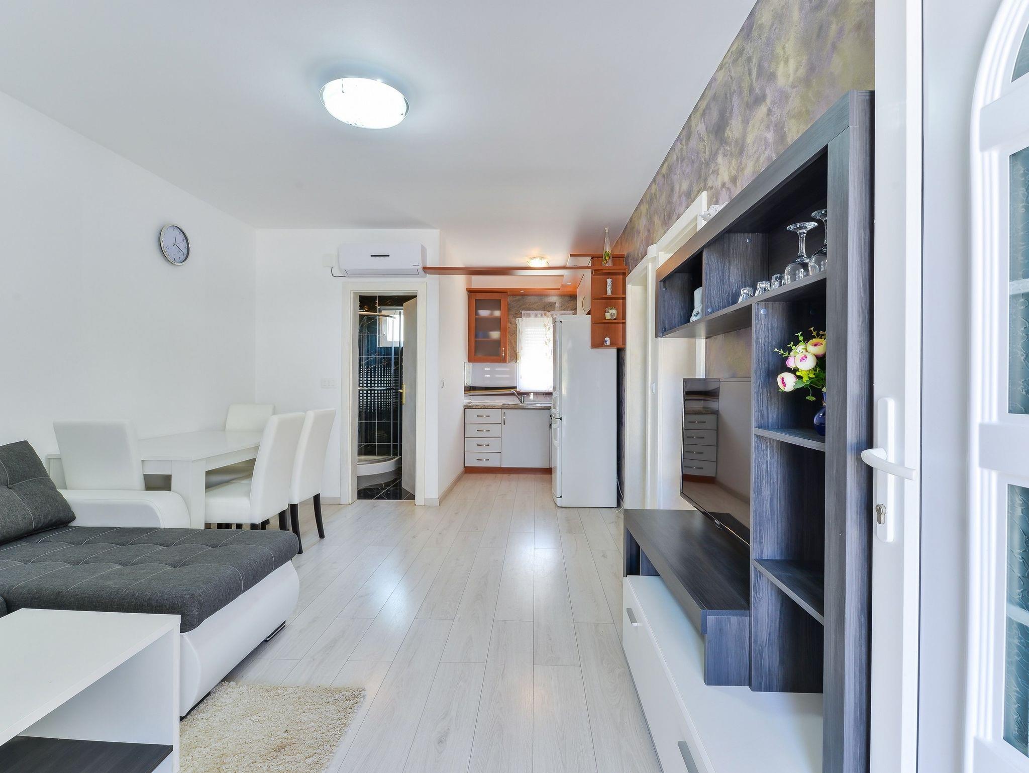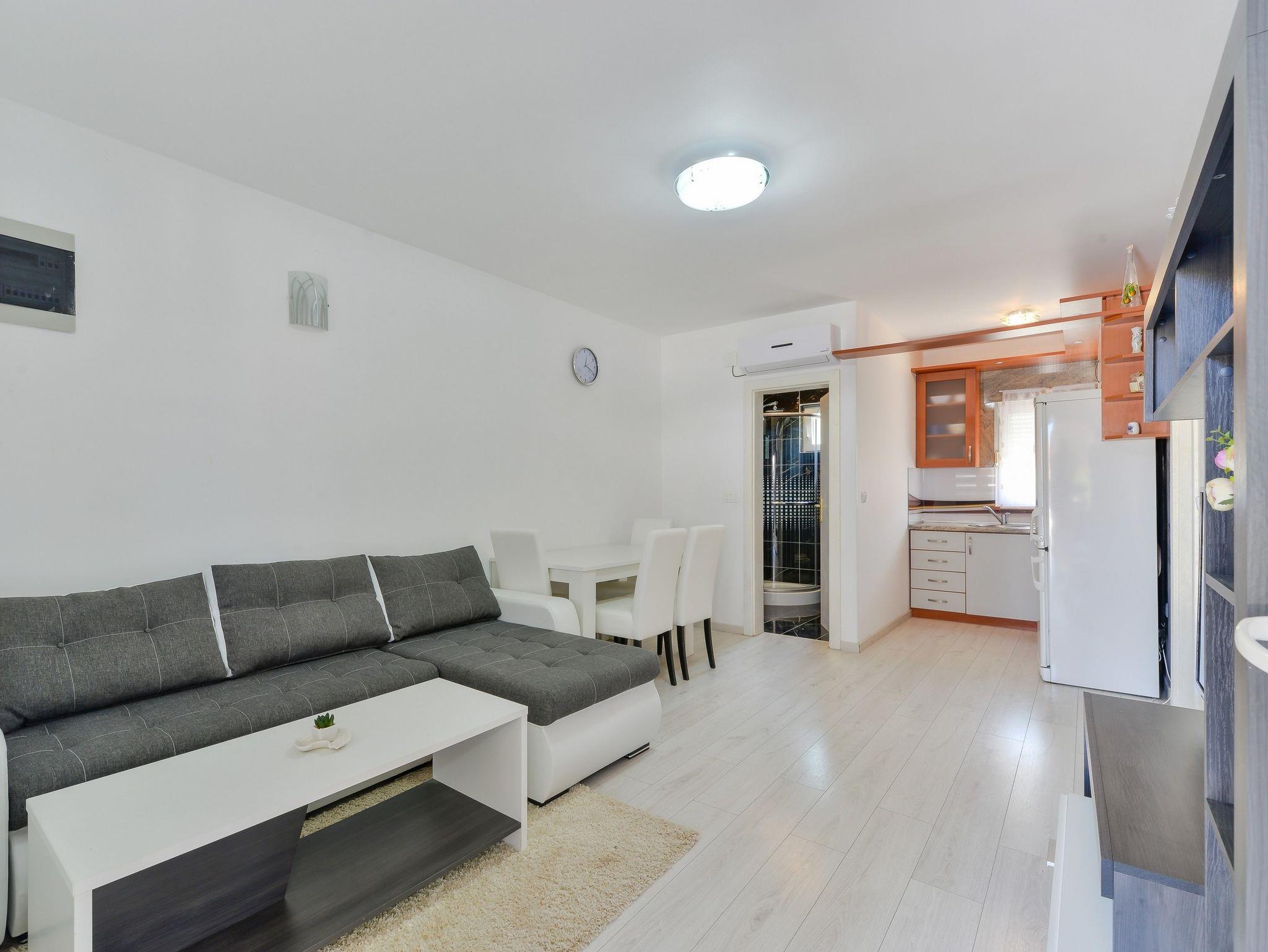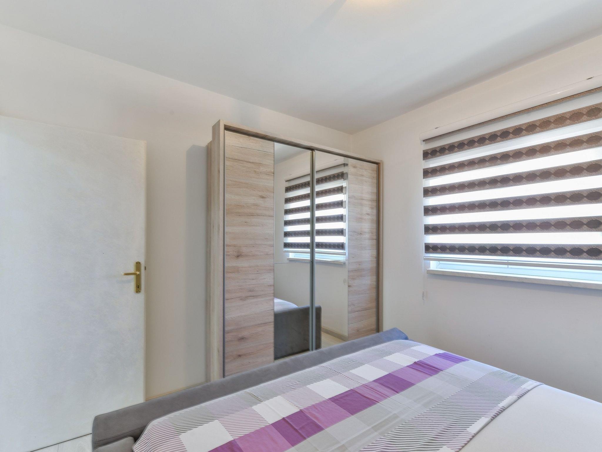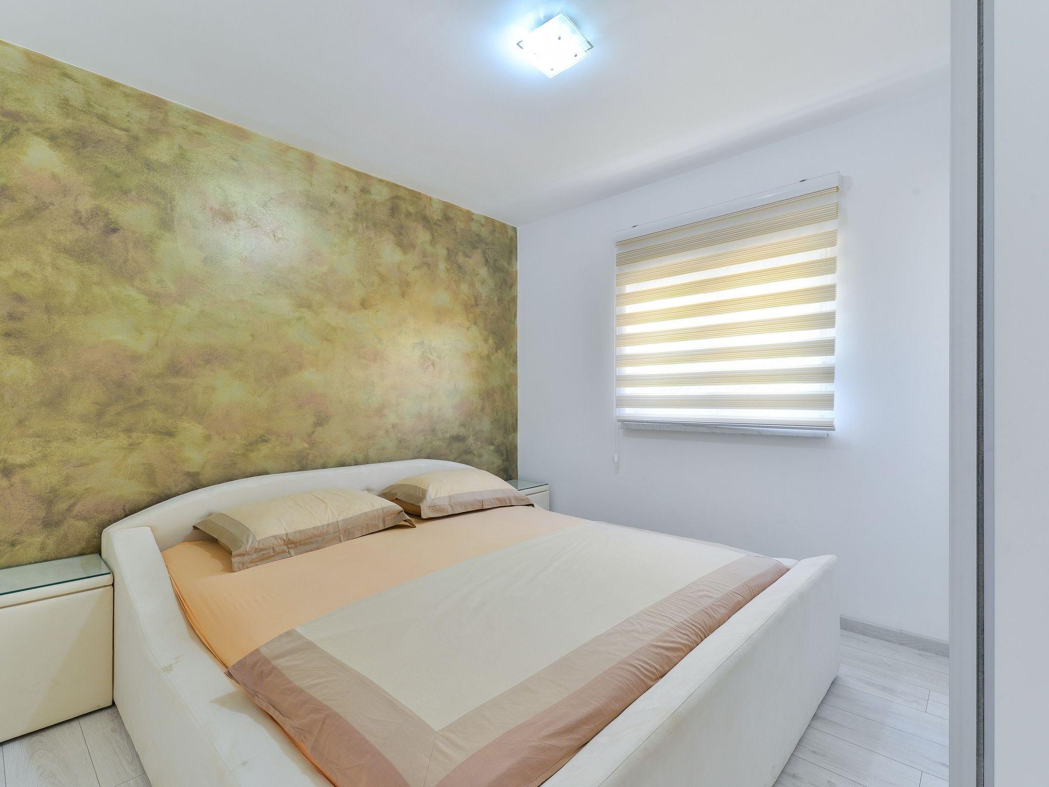 Ferienwohnung bietet Platz für 6 Gäste. Die Betten sind in Schlafzimmern, die es 2 gibt, und in Wohnzimmer, innerhalb einer Gesamtfläche von 47m2, angeordnet. Die Gäste haben eine eigene Terrasse zur Verfügung, auf der sie in warmen Sommernächten genießen können. Das Apartment bietet Meerblick. Es ist erlaubt, Speisen auf dem Gemeinschafts-Grill vorzubereiten. IM PREIS INBEGRIFFEN: Kurtaxe, Endreinigung, Klimatisierung, Parkplatz, Internet, Wäschewaschen, Kinderbett. VERBINDLICHE ZUSÄTZLICHE KOSTEN: Aufzahlung für Kurzaufenthalte (prozentualer Zuschlag pro Nächtigungsanzahl: 30% - 1, 20% - 2, 10% - 3). Die Verfügbarkeit zusätzlicher Dienstleistungen in Ihrem reservierten Termin und die Preise derselben (falls nicht aufgeführt) müssen im Voraus überprüft werden. Zusätzliche Dienstleistungen die in der Zahlungsaufforderung nicht aufgeführt sind werden direkt beim Vermieter bezahlt, angenommen der Gast nutzt auch diese.