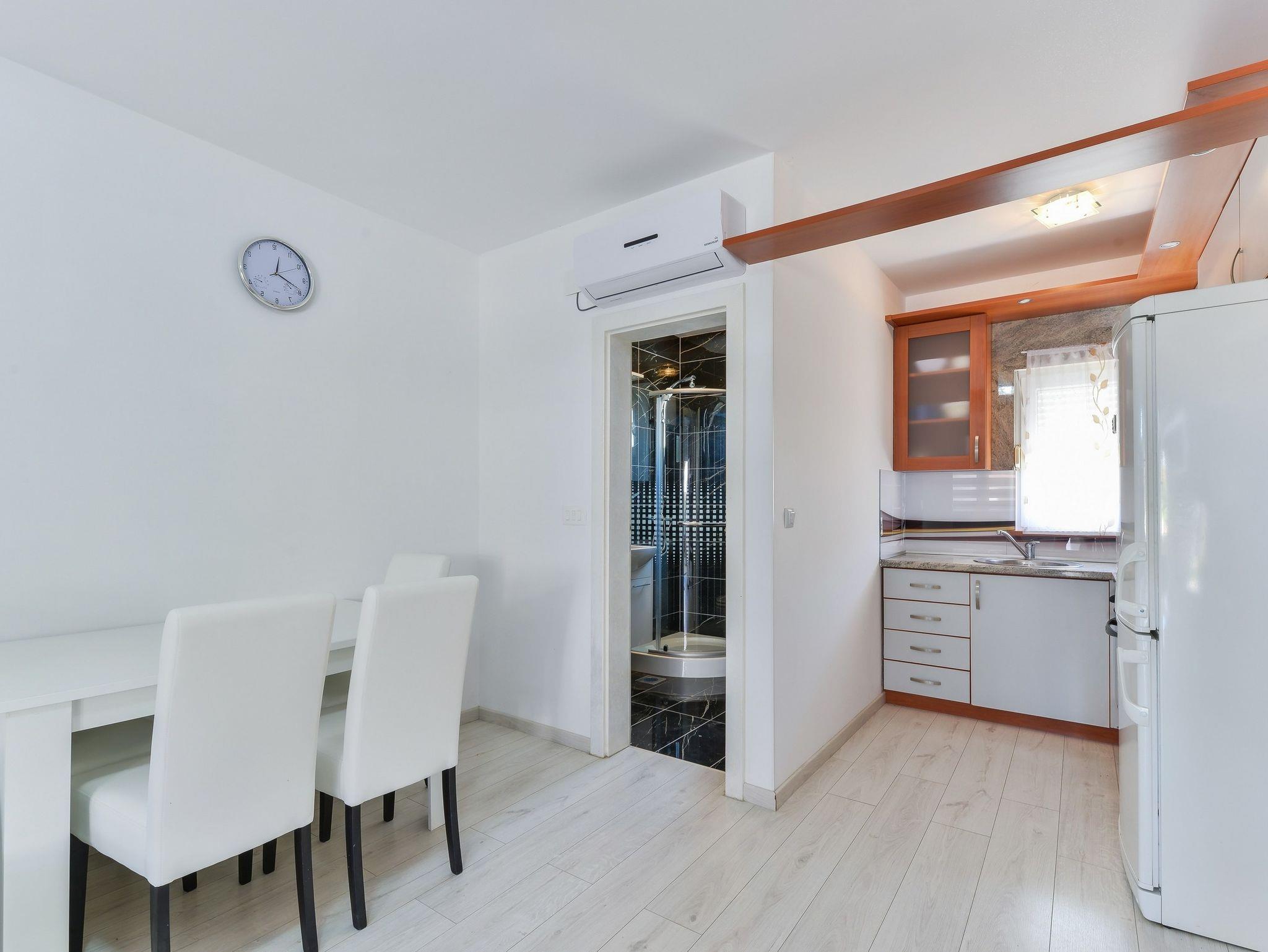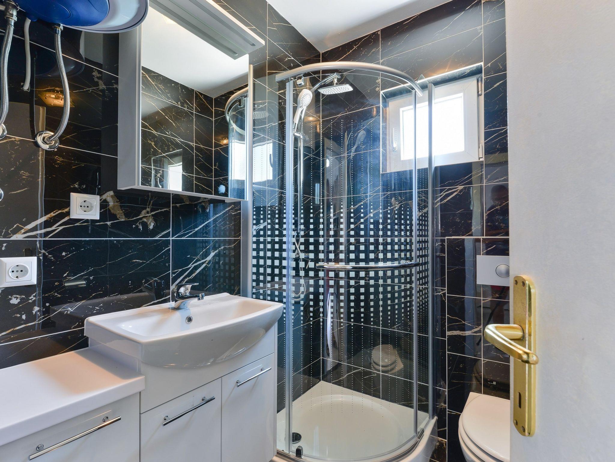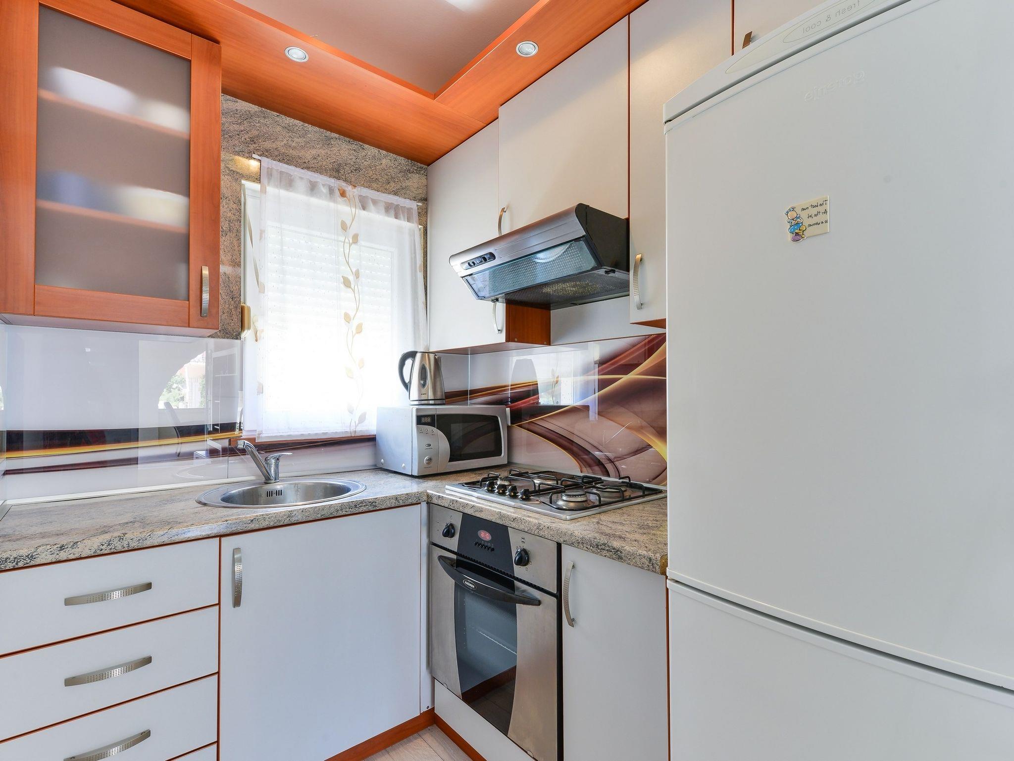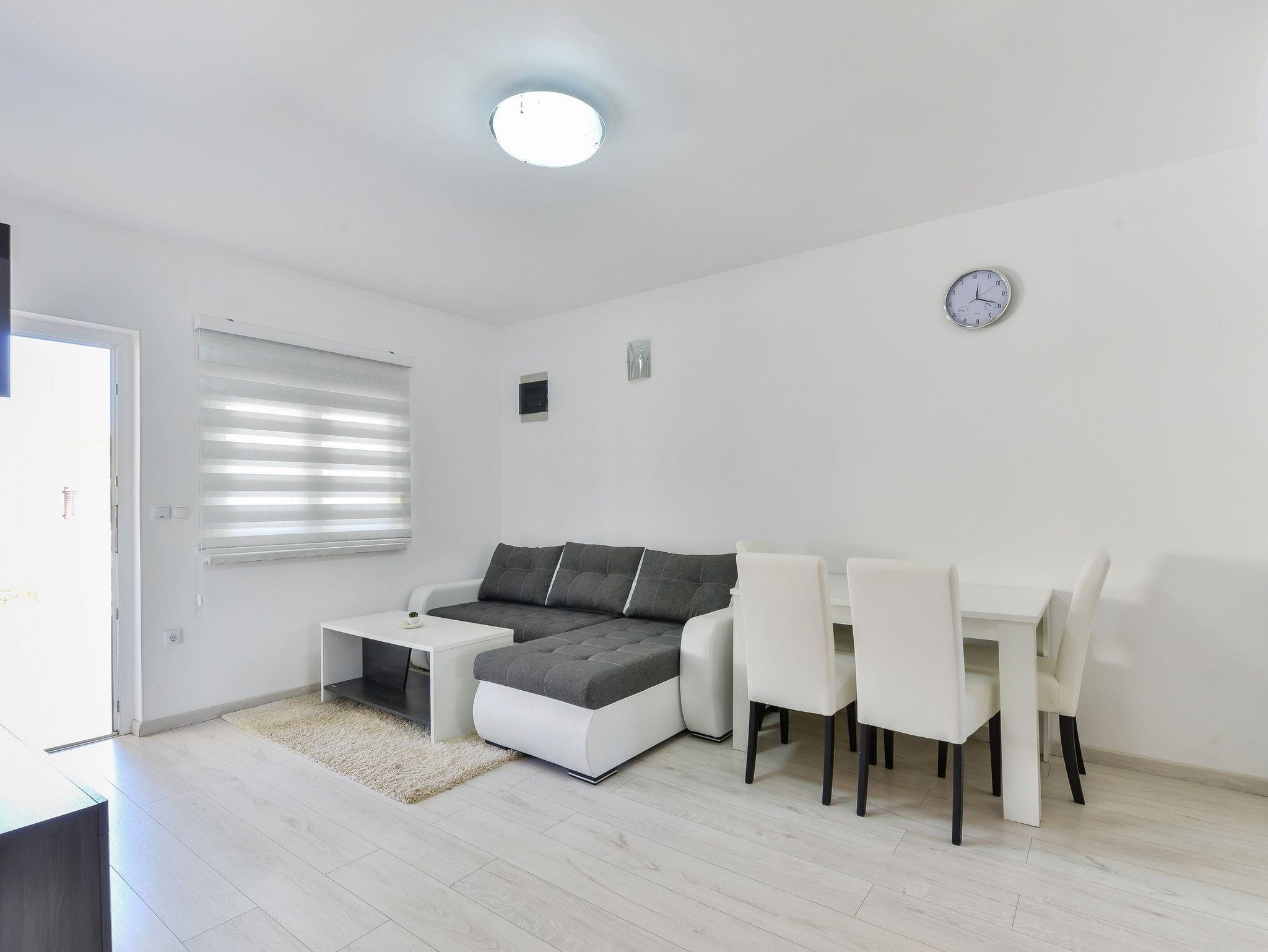 Ferienwohnung bietet Platz für 6 Gäste. Die Betten sind in Schlafzimmern, die es 2 gibt, und in Wohnzimmer, innerhalb einer Gesamtfläche von 47m2, angeordnet. Die Gäste haben eine eigene Terrasse zur Verfügung, auf der sie in warmen Sommernächten genießen können. Das Apartment bietet Meerblick. Es ist erlaubt, Speisen auf dem Gemeinschafts-Grill vorzubereiten. IM PREIS INBEGRIFFEN: Kurtaxe, Endreinigung, Klimatisierung, Parkplatz, Internet, Wäschewaschen, Kinderbett. VERBINDLICHE ZUSÄTZLICHE KOSTEN: Aufzahlung für Kurzaufenthalte (prozentualer Zuschlag pro Nächtigungsanzahl: 30% - 1, 20% - 2, 10% - 3). Die Verfügbarkeit zusätzlicher Dienstleistungen in Ihrem reservierten Termin und die Preise derselben (falls nicht aufgeführt) müssen im Voraus überprüft werden. Zusätzliche Dienstleistungen die in der Zahlungsaufforderung nicht aufgeführt sind werden direkt beim Vermieter bezahlt, angenommen der Gast nutzt auch diese.