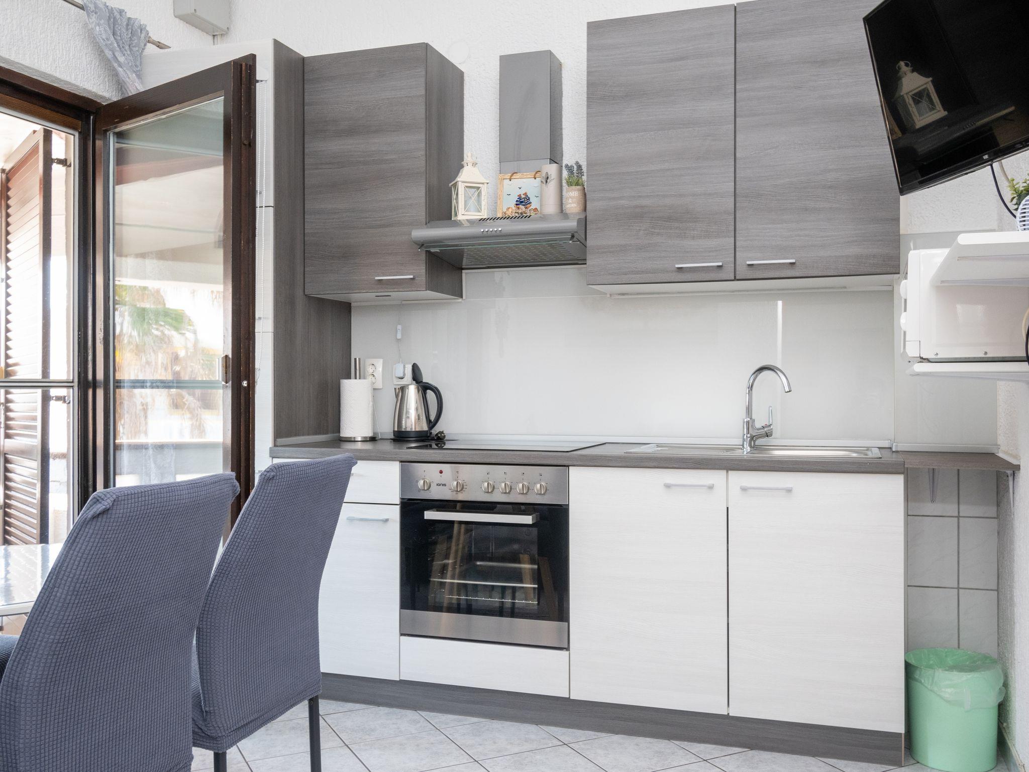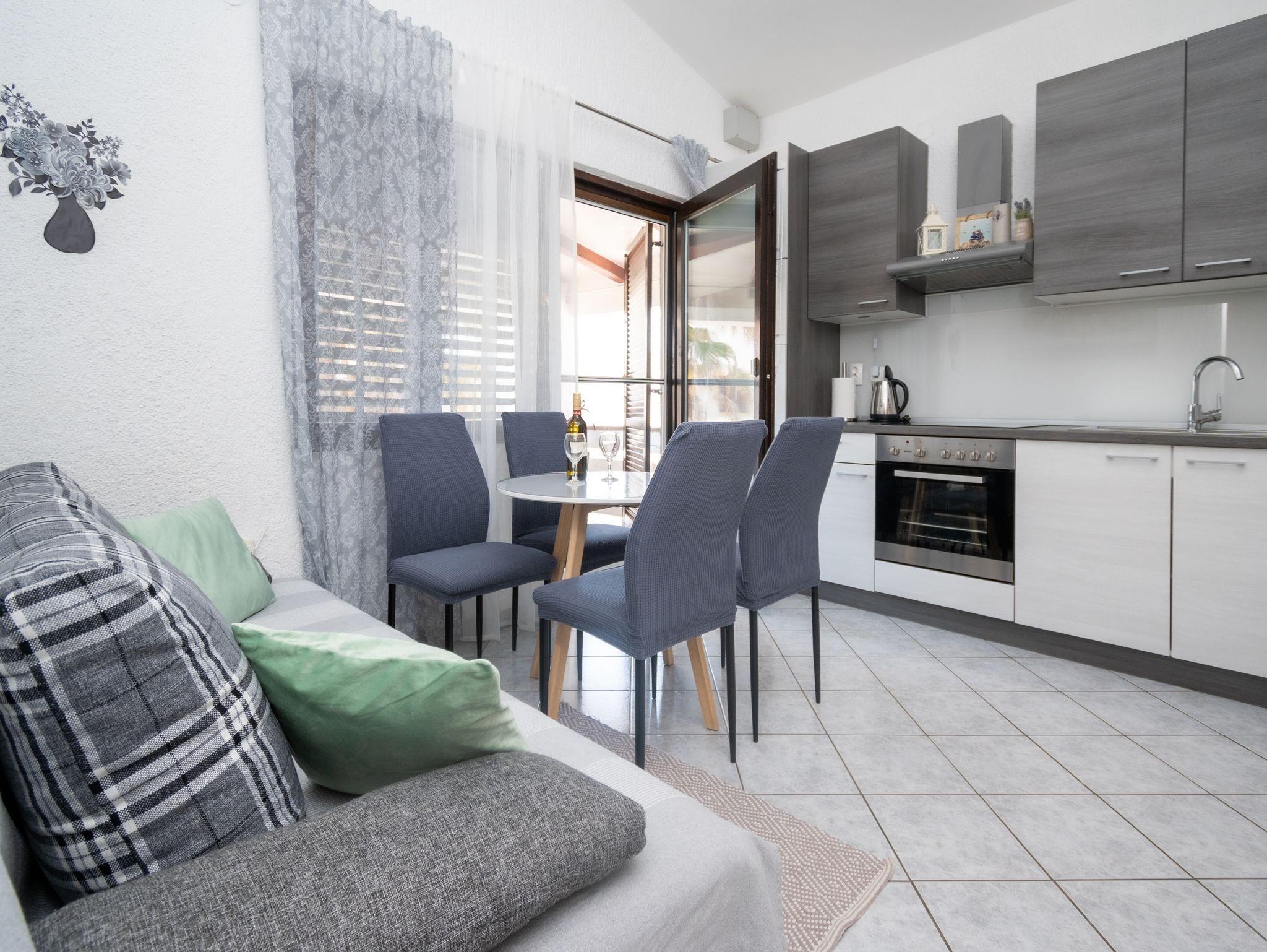Ferienwohnung bietet Platz für 4 Gäste. Die Betten sind in Schlafzimmern, die es 1 gibt, und in Esszimmer, innerhalb einer Gesamtfläche von 24m2, angeordnet. Die Gäste haben eine eigene Terrasse zur Verfügung, auf der sie in warmen Sommernächten genießen können. Das Apartment bietet Meerblick. Es ist erlaubt, Speisen auf dem Gemeinschafts-Grill vorzubereiten. In der Unterkunftseinheit besteht die Möglichkeit des Mitbringens von Haustieren gegen Aufpreis. IM PREIS INBEGRIFFEN: Kurtaxe, Endreinigung, Klimatisierung, Parkplatz, Internet, Bootsanlegeplatz, Bügeleisen, Bügelbrett, Föhn. VERBINDLICHE ZUSÄTZLICHE KOSTEN: Aufzahlung für Kurzaufenthalte (prozentualer Zuschlag pro Nächtigungsanzahl: 30% - 1, 20% - 2, 10% - 3). UNVERBINDLICHE ZUSÄTZLICHE KOSTEN: Wäschewaschen (5,00 € Waschen), Haustiere (5,00 € pro Nacht). Die Verfügbarkeit zusätzlicher Dienstleistungen in Ihrem reservierten Termin und die Preise derselben (falls nicht aufgeführt) müssen im Voraus überprüft werden. Zusätzliche Dienstleistungen die in der Zahlungsaufforderung nicht aufgeführt sind werden direkt beim Vermieter bezahlt, angenommen der Gast nutzt auch diese.