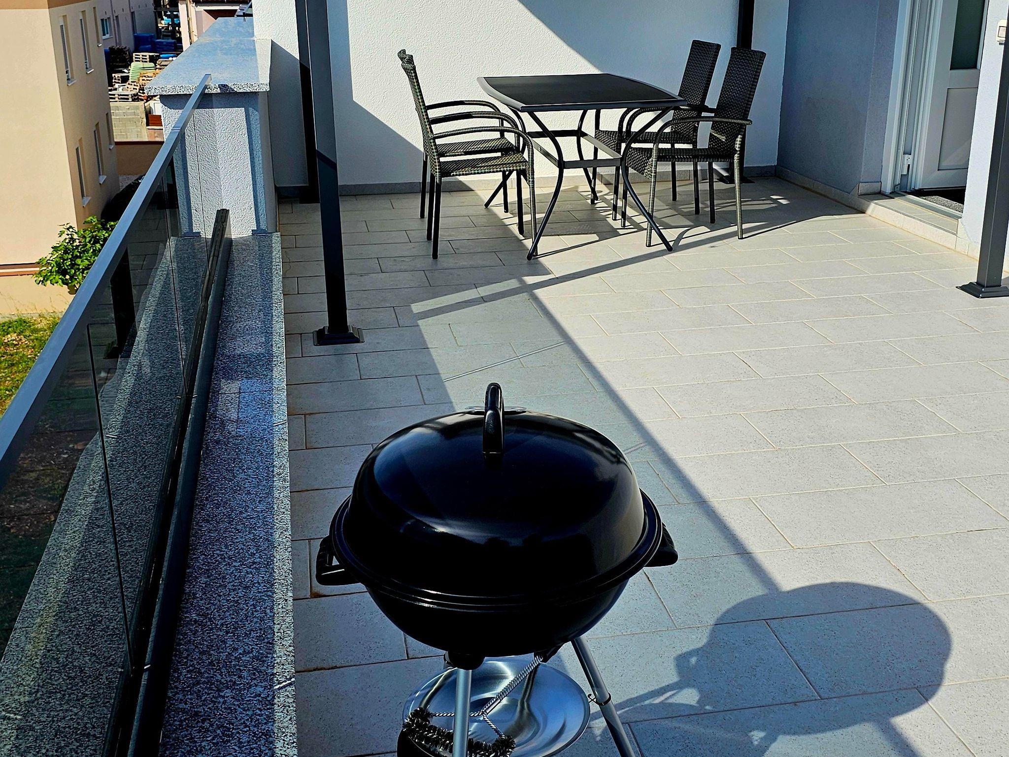 Das Haus verfügt über mehrere moderne Ferienwohnungen und bietet seinen Gästen zahlreiche Annehmlichkeiten. Dazu gehören eigene PKW-Stellplätze direkt vor dem Haus, kostenfreies WLAN, sowie Grillmöglichkeiten auf den zu jeder Wohnung einzeln gehörenden Dachterrassen, mit einem atemberaubenden Blick auf das Meer und den sagenhaften, für Kroatien bekannten Sonnenuntergängen. Ideal für gesellige Abende oder entspannte Stunden im Freien, nach dem Baden, im ca. 200 Metern entferten Meer.