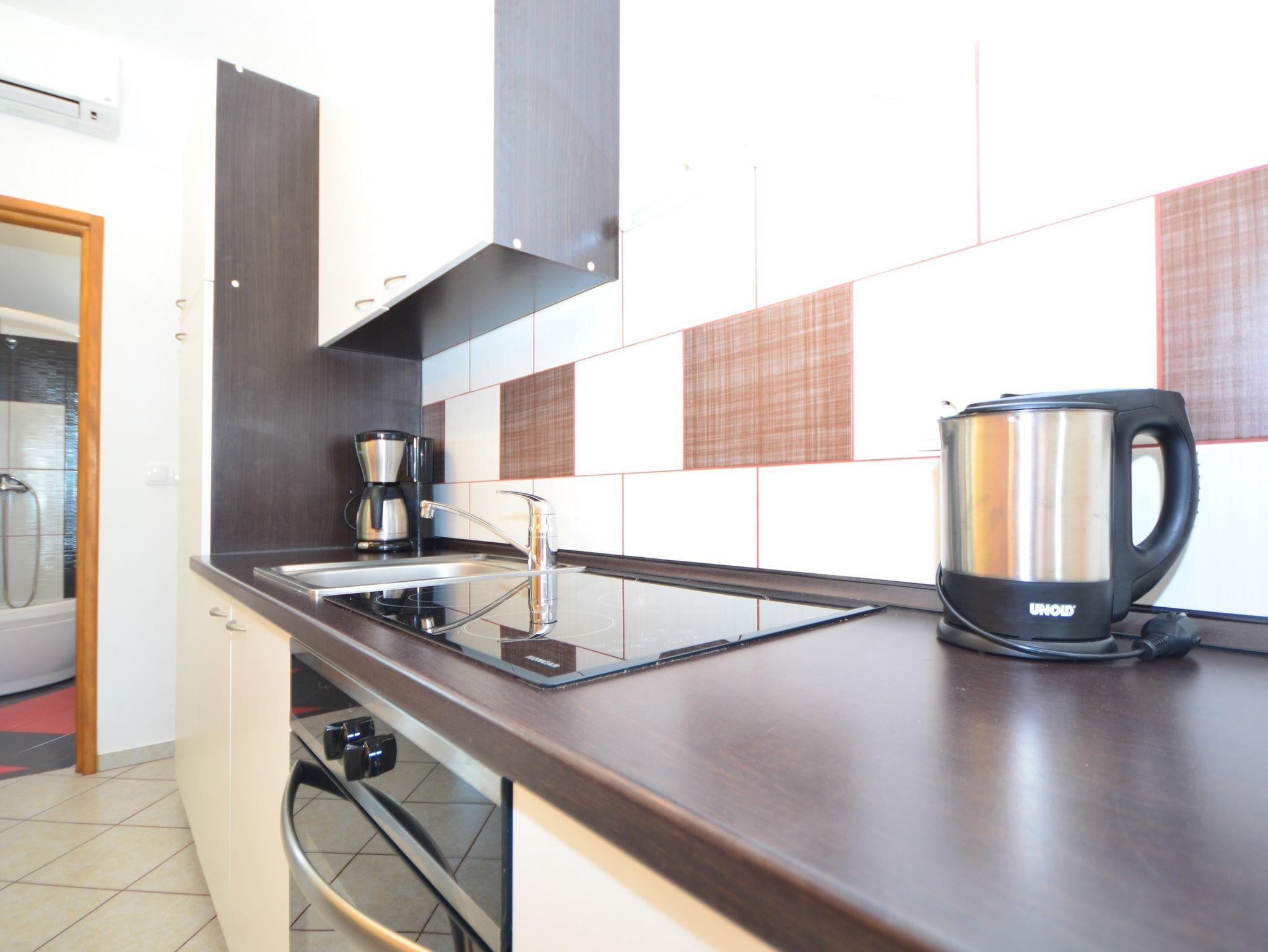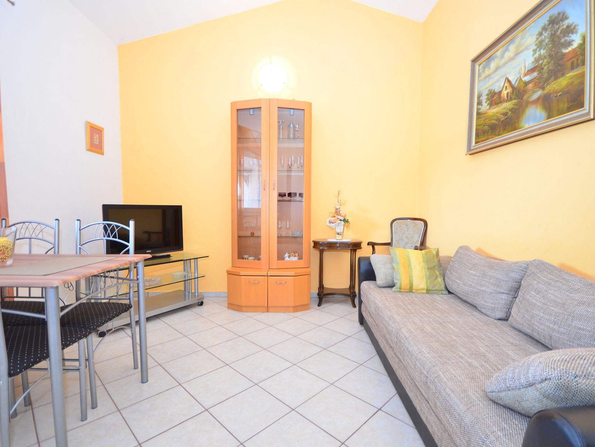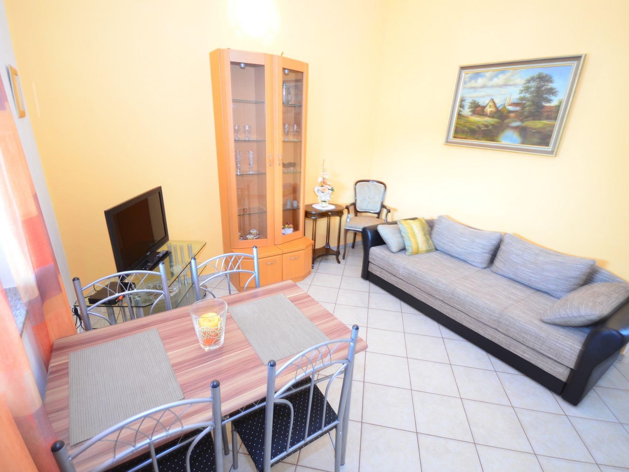 Ferienwohnung bietet Platz für 3 Gäste. Die Betten sind in Schlafzimmern, die es 1 gibt, und in Wohnzimmer, innerhalb einer Gesamtfläche von 47m2, angeordnet. Die Gäste haben einen eigenen Balkon zur Verfügung, auf der sie in warmen Sommernächten genießen können. Es ist erlaubt, Speisen auf dem Gemeinschafts-Grill vorzubereiten. IM PREIS INBEGRIFFEN: Kurtaxe, Endreinigung, Klimatisierung, Parkplatz, Internet, Fahrrad, Kinderbett, Föhn. VERBINDLICHE ZUSÄTZLICHE KOSTEN: Aufzahlung für Kurzaufenthalte (prozentualer Zuschlag pro Nächtigungsanzahl: 30% - 1, 20% - 2, 10% - 3). Die Verfügbarkeit zusätzlicher Dienstleistungen in Ihrem reservierten Termin und die Preise derselben (falls nicht aufgeführt) müssen im Voraus überprüft werden. Zusätzliche Dienstleistungen die in der Zahlungsaufforderung nicht aufgeführt sind werden direkt beim Vermieter bezahlt, angenommen der Gast nutzt auch diese.