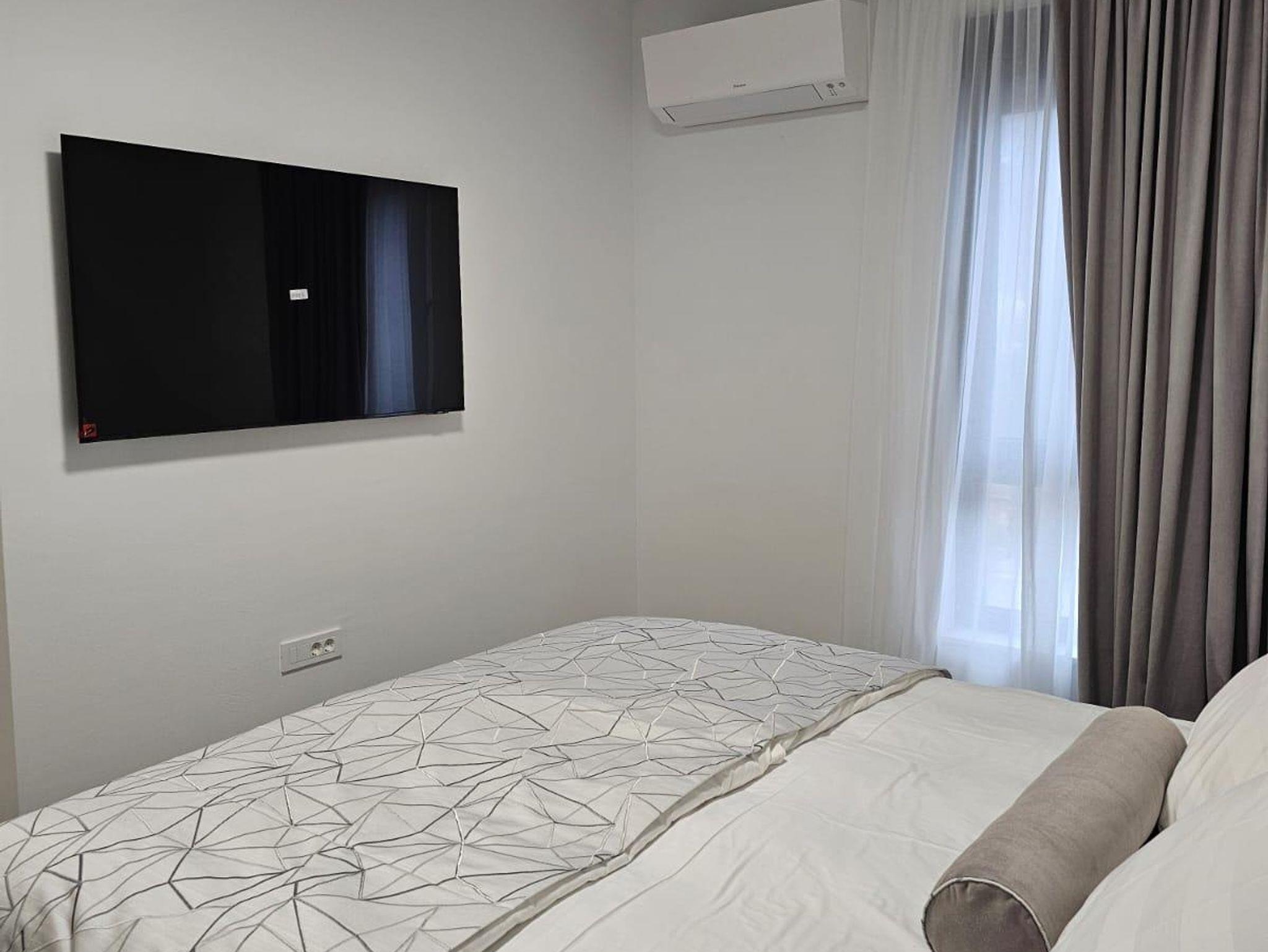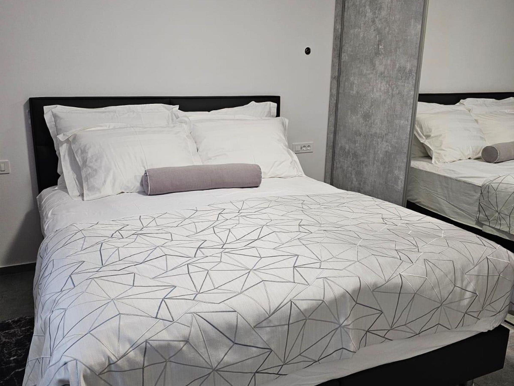 Ferienwohnung bietet Platz für 6 Gäste. Die Betten sind in Schlafzimmern, die es 2 gibt, und in Wohnzimmer, innerhalb einer Gesamtfläche von 74m2, angeordnet. Die Gäste haben eine eigene Terrasse zur Verfügung, auf der sie in warmen Sommernächten genießen können. Es ist erlaubt, Speisen auf dem Gemeinschafts-Grill vorzubereiten. Während ihres Aufenthalts können Gäste das gemeinsam zur Nutzung stehende Schwimmbad benutzen. IM PREIS INBEGRIFFEN: Kurtaxe, Endreinigung, Klimatisierung, Pool, Parkplatz, Internet, Fahrrad, Kinderbett, Föhn. VERBINDLICHE ZUSÄTZLICHE KOSTEN: Aufzahlung für Kurzaufenthalte (prozentualer Zuschlag pro Nächtigungsanzahl: 30% - 1, 20% - 2, 10% - 3). Die Verfügbarkeit zusätzlicher Dienstleistungen in Ihrem reservierten Termin und die Preise derselben (falls nicht aufgeführt) müssen im Voraus überprüft werden. Zusätzliche Dienstleistungen die in der Zahlungsaufforderung nicht aufgeführt sind werden direkt beim Vermieter bezahlt, angenommen der Gast nutzt auch diese.