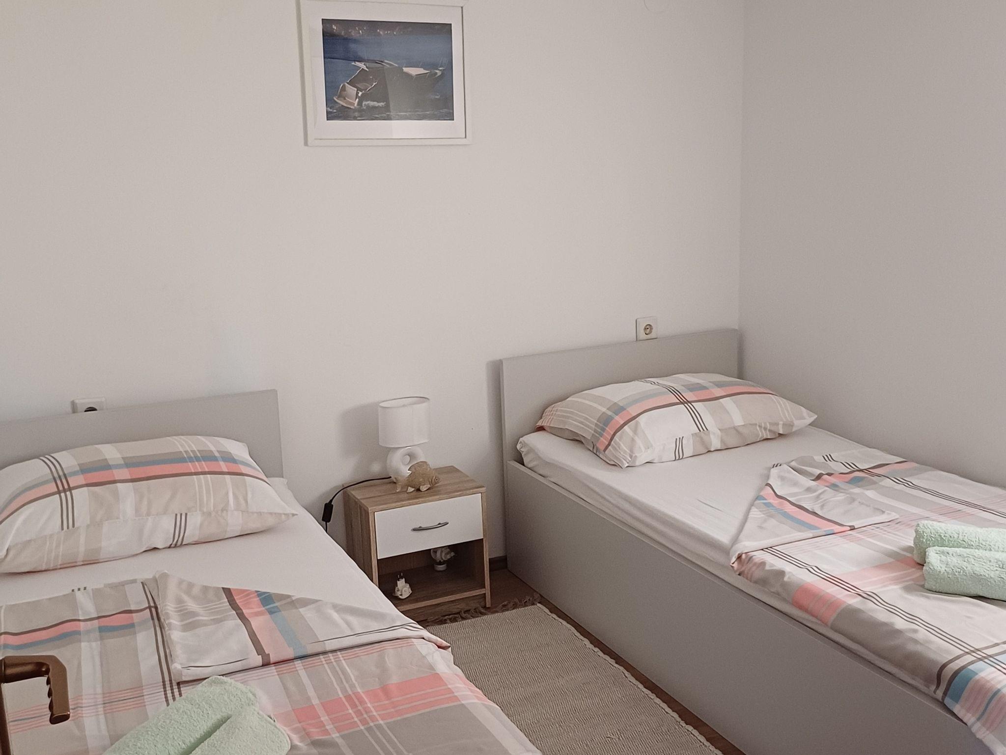 Ferienwohnung bietet Platz für 4 Gäste. Die Betten sind in Schlafzimmern, die es 2 gibt, innerhalb einer Gesamtfläche von 40m2, angeordnet. Die Gäste haben eine eigene Terrasse zur Verfügung, auf der sie in warmen Sommernächten genießen können. Das Apartment bietet Meerblick. Es ist erlaubt, Speisen auf dem Gemeinschafts-Grill vorzubereiten. IM PREIS INBEGRIFFEN: Kurtaxe, Endreinigung, Klimatisierung, Parkplatz, Internet, Wäschewaschen, Kinderbett, Bügeleisen, Bügelbrett, Föhn. Die Verfügbarkeit zusätzlicher Dienstleistungen in Ihrem reservierten Termin und die Preise derselben (falls nicht aufgeführt) müssen im Voraus überprüft werden. Zusätzliche Dienstleistungen die in der Zahlungsaufforderung nicht aufgeführt sind werden direkt beim Vermieter bezahlt, angenommen der Gast nutzt auch diese. Ermäßigung auf den Grundpreis: Gratistag 14=13 (bei einem Aufenthalt von 14 Tagen oder mehr erhalten Sie einen Gratistag für den Aufenthalt bis 31.12.26).