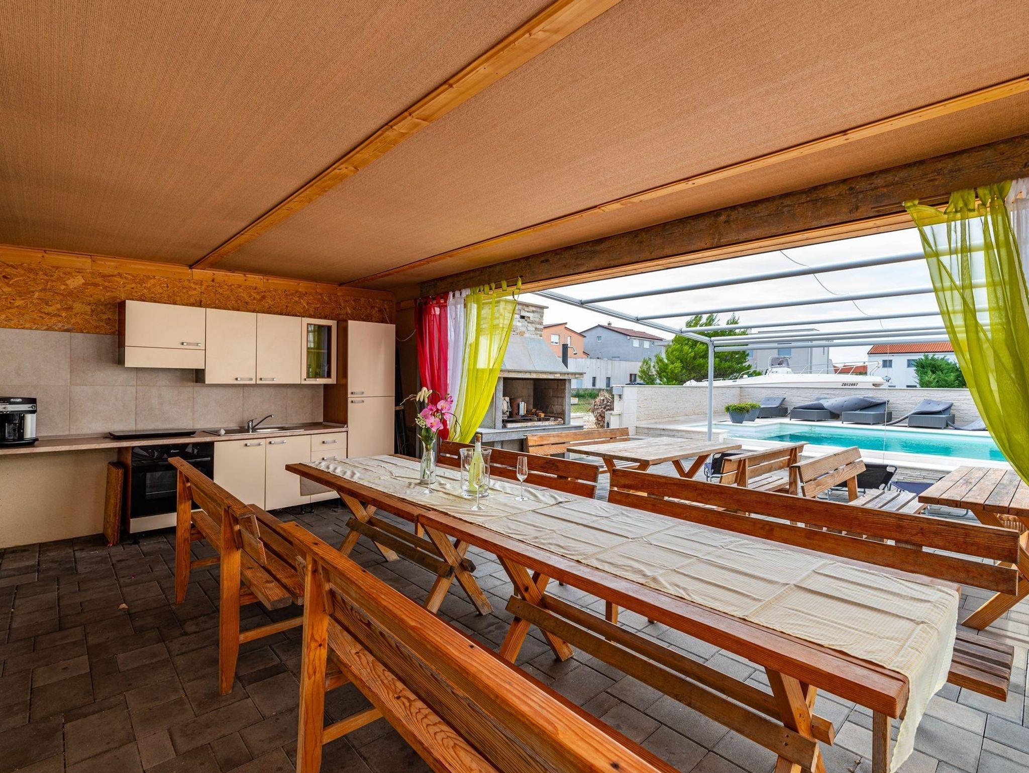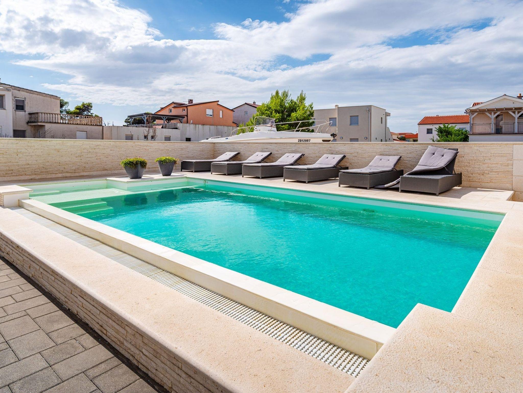 Umgebung des Objekts (Eingerichtet), Hof (100m2, Kinderbereich, Sitzbereich), Parkplatz (Anzahl der Parkplätze: 12, Entfernung vom Objekt: im Hof), Pool: gemeinsam, Dimensionen: 9m x 5m x 1.6m, Wassertyp: Salzwasser, Grill: gemeinsam, WiFi Internet, Kinderbett
