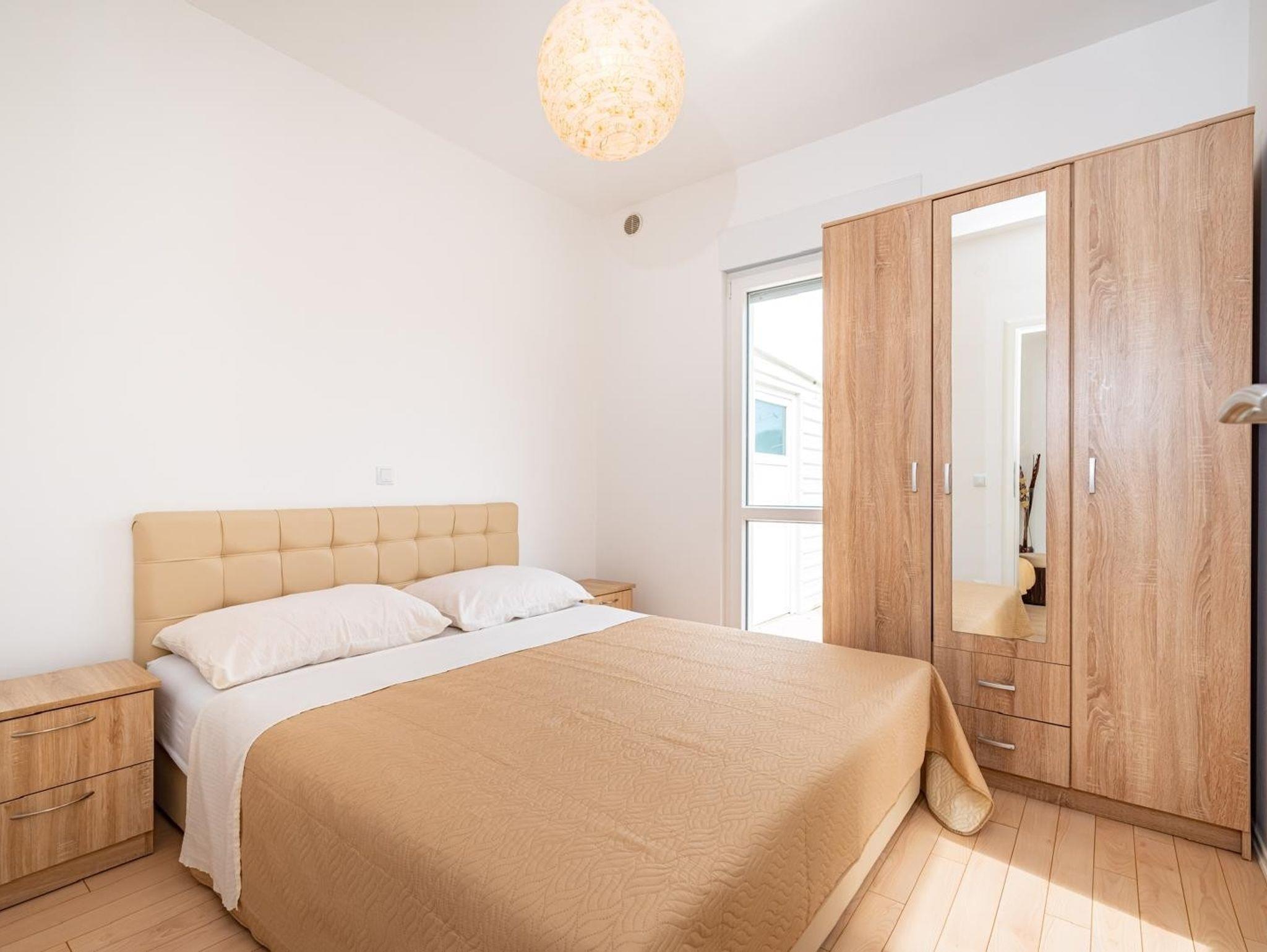 Ferienwohnung bietet Platz für 4 Gäste. Die Betten sind in Schlafzimmern, die es 1 gibt, und in Wohnzimmer, innerhalb einer Gesamtfläche von 34m2, angeordnet. Es ist erlaubt, Speisen auf dem Gemeinschafts-Grill vorzubereiten. Während ihres Aufenthalts können Gäste das gemeinsam zur Nutzung stehende Schwimmbad benutzen. Die reservierte Unterkunftseinheit verfügt über einen gemeinsame Terrasse. IM PREIS INBEGRIFFEN: Kurtaxe, Endreinigung, Klimatisierung, Pool, Parkplatz, Internet, Kinderbett. VERBINDLICHE ZUSÄTZLICHE KOSTEN: Aufzahlung für Kurzaufenthalte (prozentualer Zuschlag pro Nächtigungsanzahl: 30% - 1, 20% - 2, 10% - 3). Die Verfügbarkeit zusätzlicher Dienstleistungen in Ihrem reservierten Termin und die Preise derselben (falls nicht aufgeführt) müssen im Voraus überprüft werden. Zusätzliche Dienstleistungen die in der Zahlungsaufforderung nicht aufgeführt sind werden direkt beim Vermieter bezahlt, angenommen der Gast nutzt auch diese.