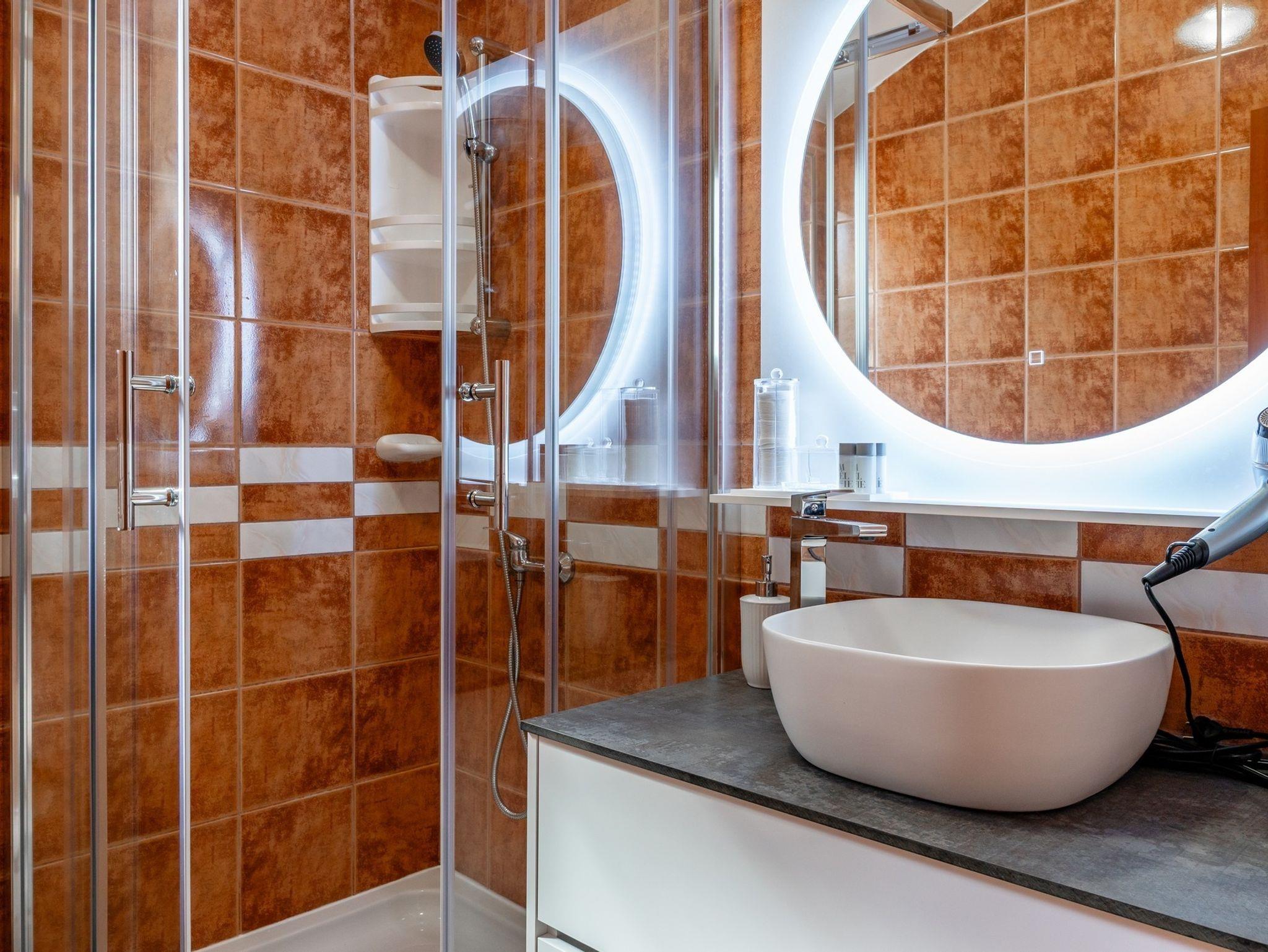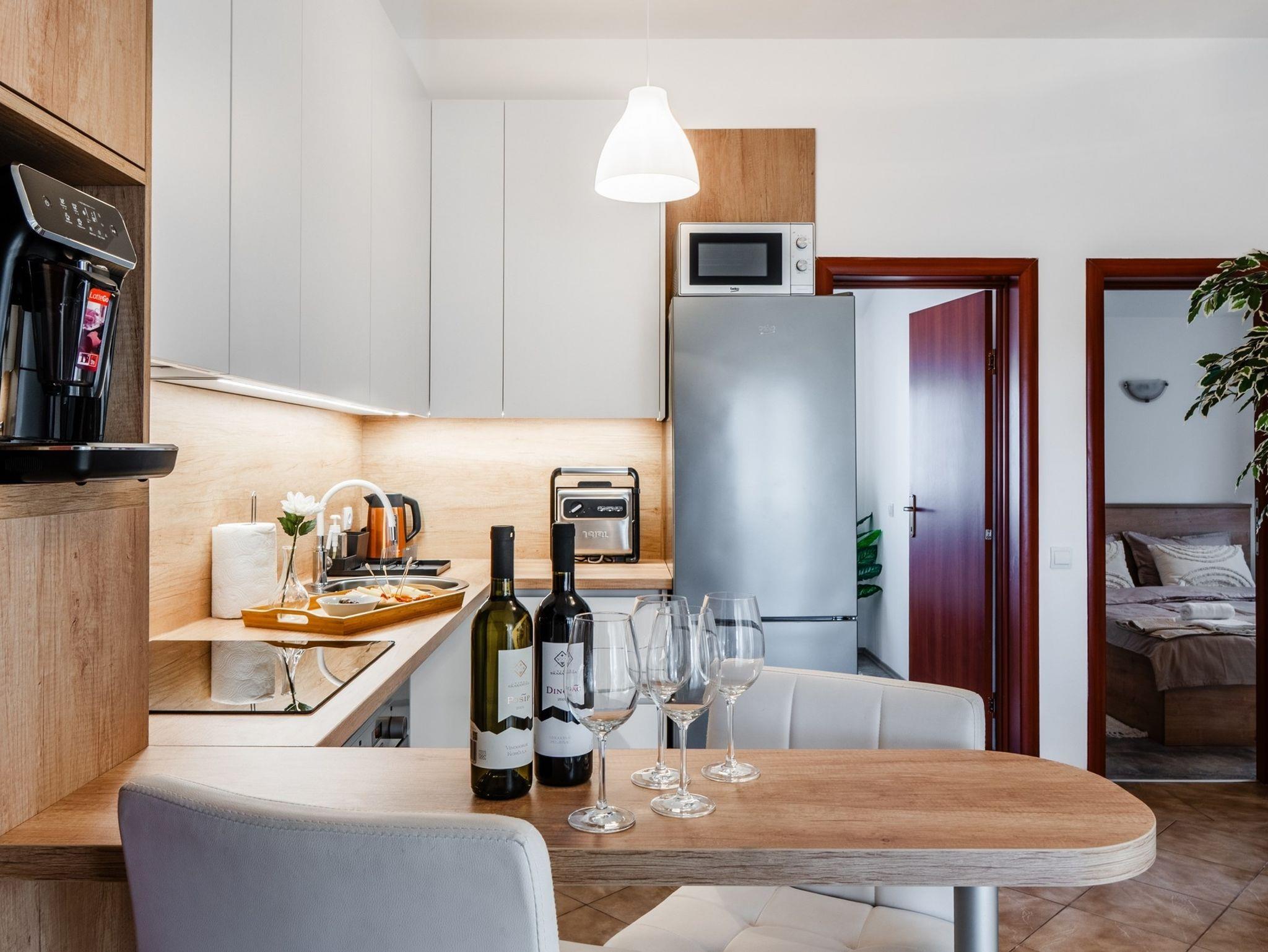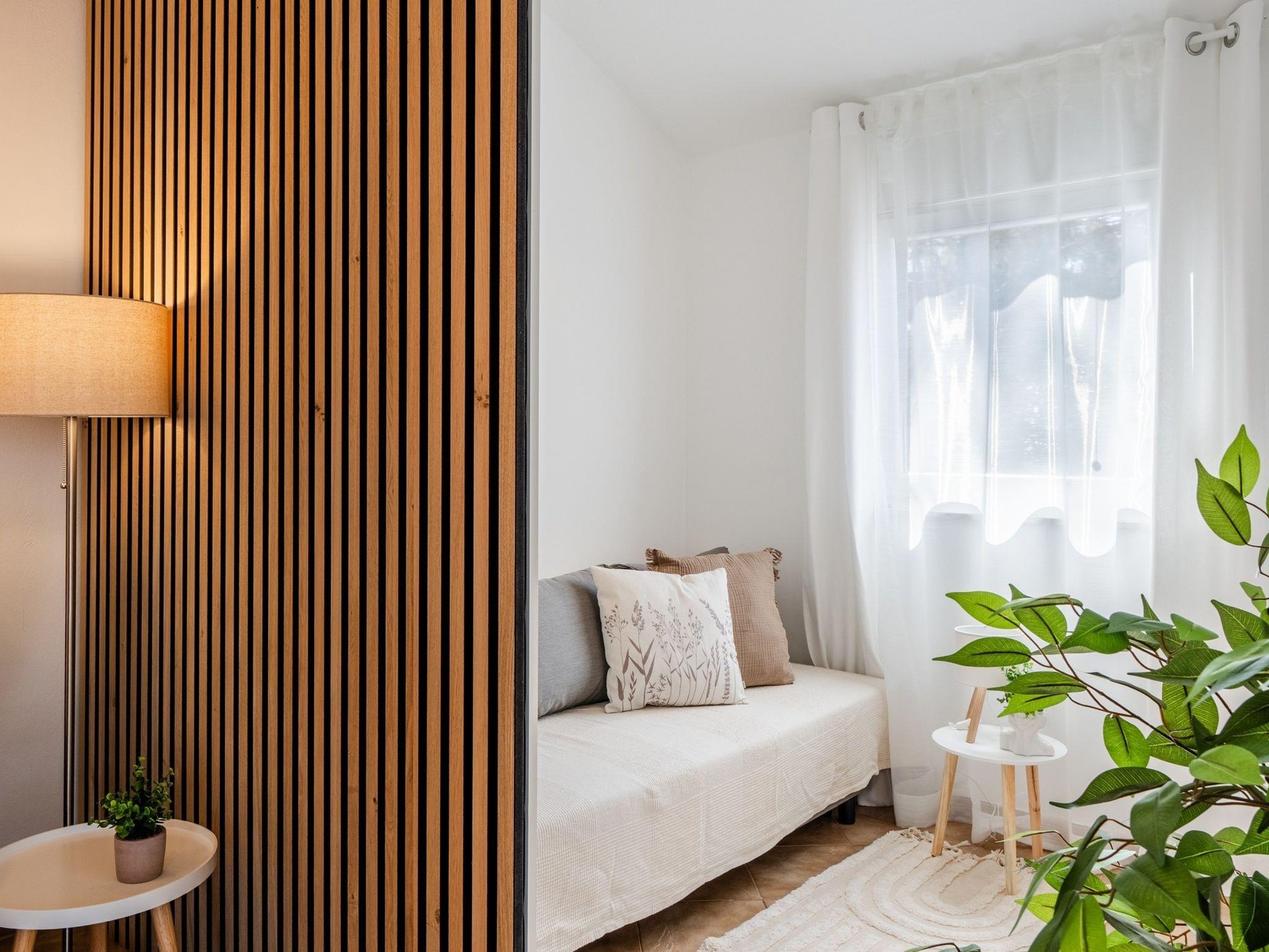 Ferienwohnung bietet Platz für 5 Gäste. Die Betten sind in Schlafzimmern, die es 2 gibt, und in Wohnzimmer, innerhalb einer Gesamtfläche von 55m2, angeordnet. Die Gäste haben eine eigene Terrasse zur Verfügung, auf der sie in warmen Sommernächten genießen können. Es ist erlaubt, Speisen auf dem Gemeinschafts-Grill vorzubereiten. IM PREIS INBEGRIFFEN: Kurtaxe, Endreinigung, Klimatisierung, Parkplatz, Internet, Bügeleisen, Bügelbrett, Föhn. VERBINDLICHE ZUSÄTZLICHE KOSTEN: Aufzahlung für Kurzaufenthalte (prozentualer Zuschlag pro Nächtigungsanzahl: 30% - 1, 20% - 2, 10% - 3). Die Verfügbarkeit zusätzlicher Dienstleistungen in Ihrem reservierten Termin und die Preise derselben (falls nicht aufgeführt) müssen im Voraus überprüft werden. Zusätzliche Dienstleistungen die in der Zahlungsaufforderung nicht aufgeführt sind werden direkt beim Vermieter bezahlt, angenommen der Gast nutzt auch diese.