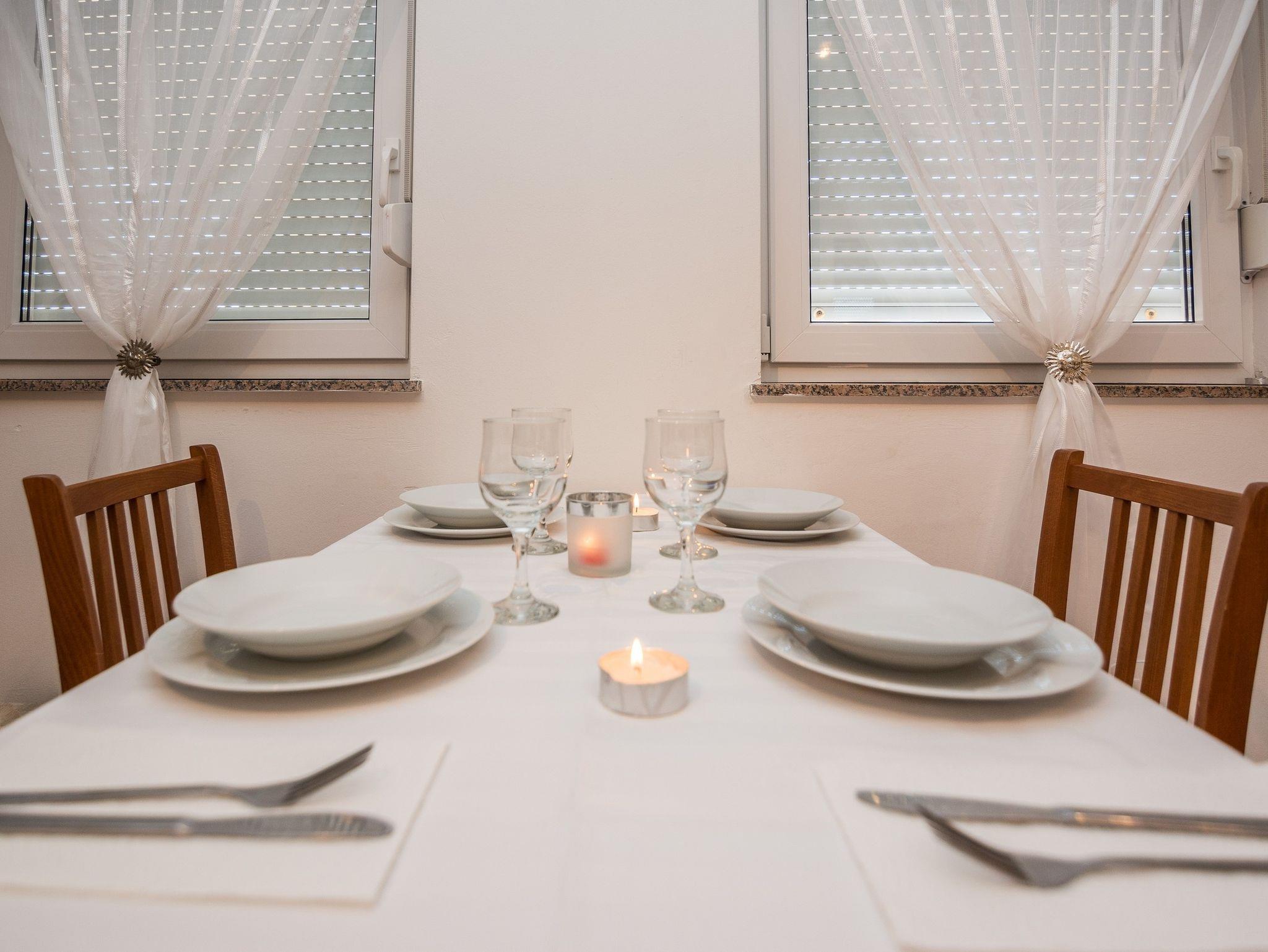Ferienwohnung bietet Platz für 4 Gäste. Die Betten sind in Schlafzimmern, die es 2 gibt, innerhalb einer Gesamtfläche von 50m2, angeordnet. Die Gäste haben eine eigene Terrasse zur Verfügung, auf der sie in warmen Sommernächten genießen können. Das Apartment bietet Meerblick. Es ist erlaubt, Speisen auf dem Gemeinschafts-Grill vorzubereiten. IM PREIS INBEGRIFFEN: Kurtaxe, Endreinigung, Klimatisierung, Parkplatz, Internet, Föhn. VERBINDLICHE ZUSÄTZLICHE KOSTEN: Aufzahlung für Kurzaufenthalte (prozentualer Zuschlag pro Nächtigungsanzahl: 30% - 1, 20% - 2, 10% - 3). Die Verfügbarkeit zusätzlicher Dienstleistungen in Ihrem reservierten Termin und die Preise derselben (falls nicht aufgeführt) müssen im Voraus überprüft werden. Zusätzliche Dienstleistungen die in der Zahlungsaufforderung nicht aufgeführt sind werden direkt beim Vermieter bezahlt, angenommen der Gast nutzt auch diese.