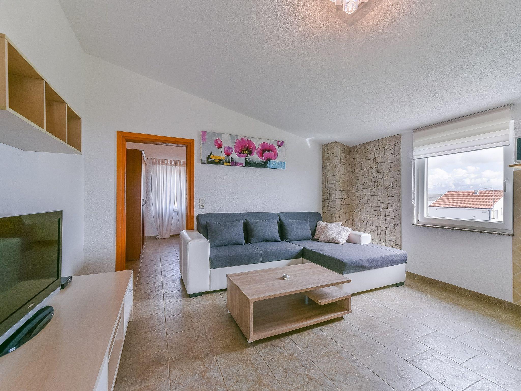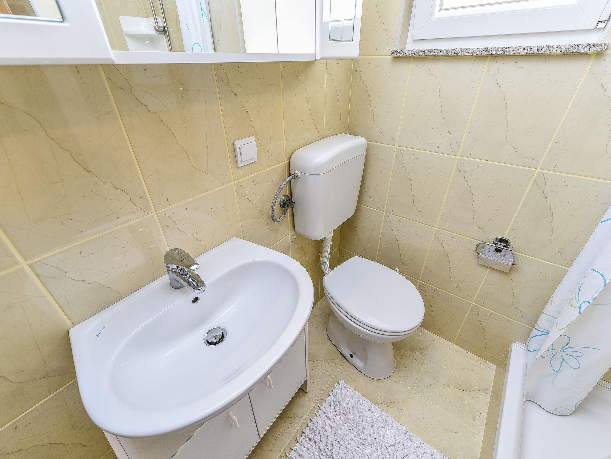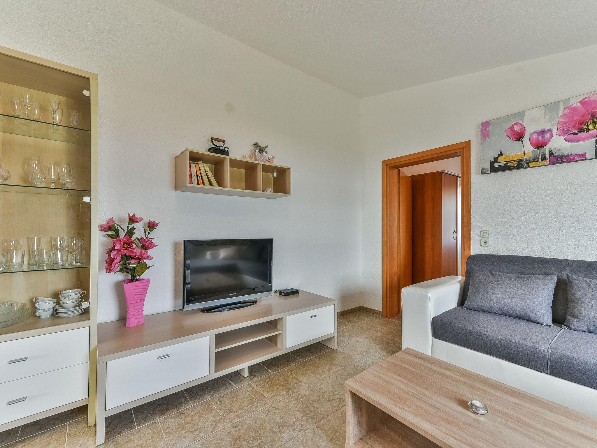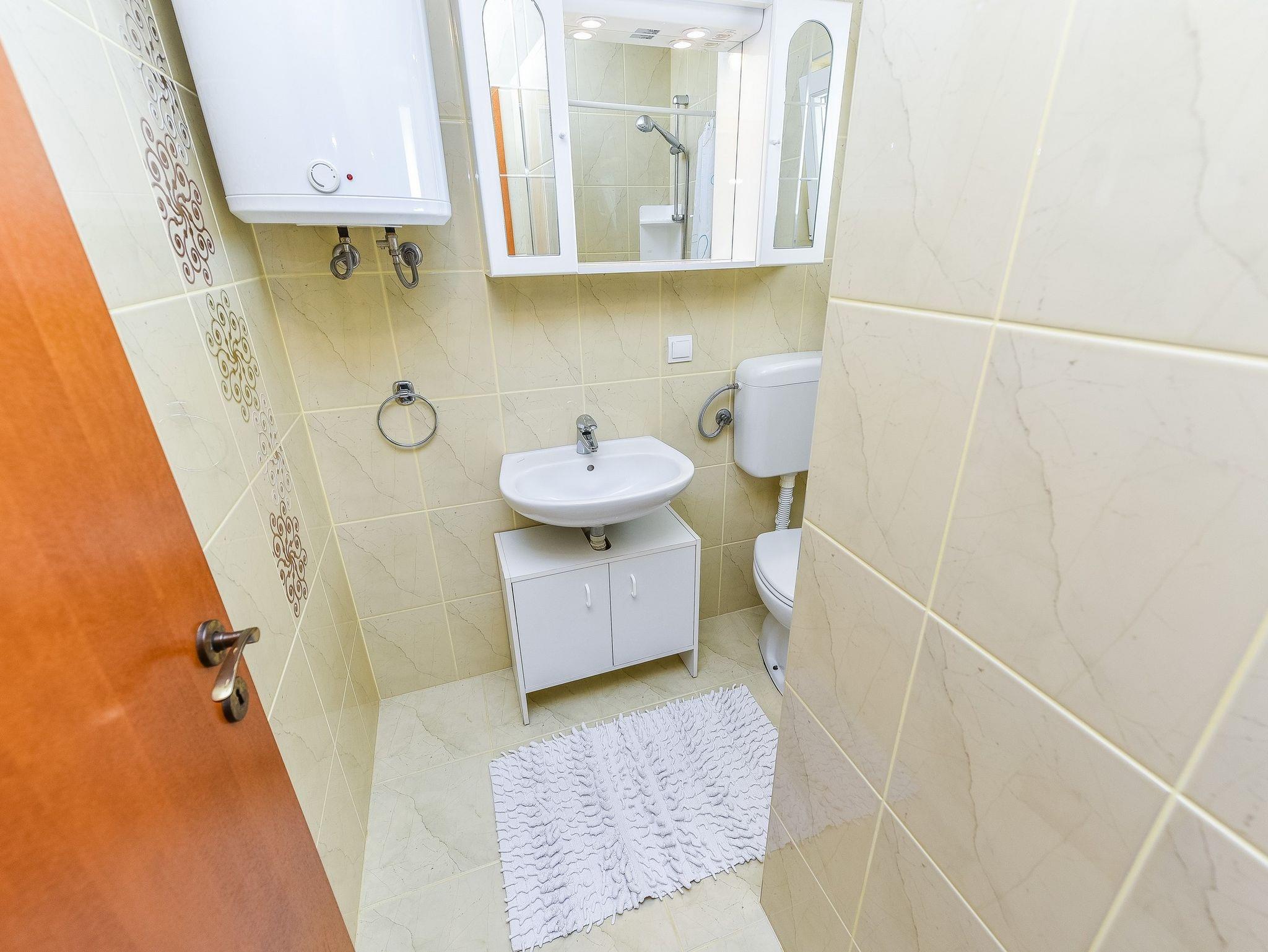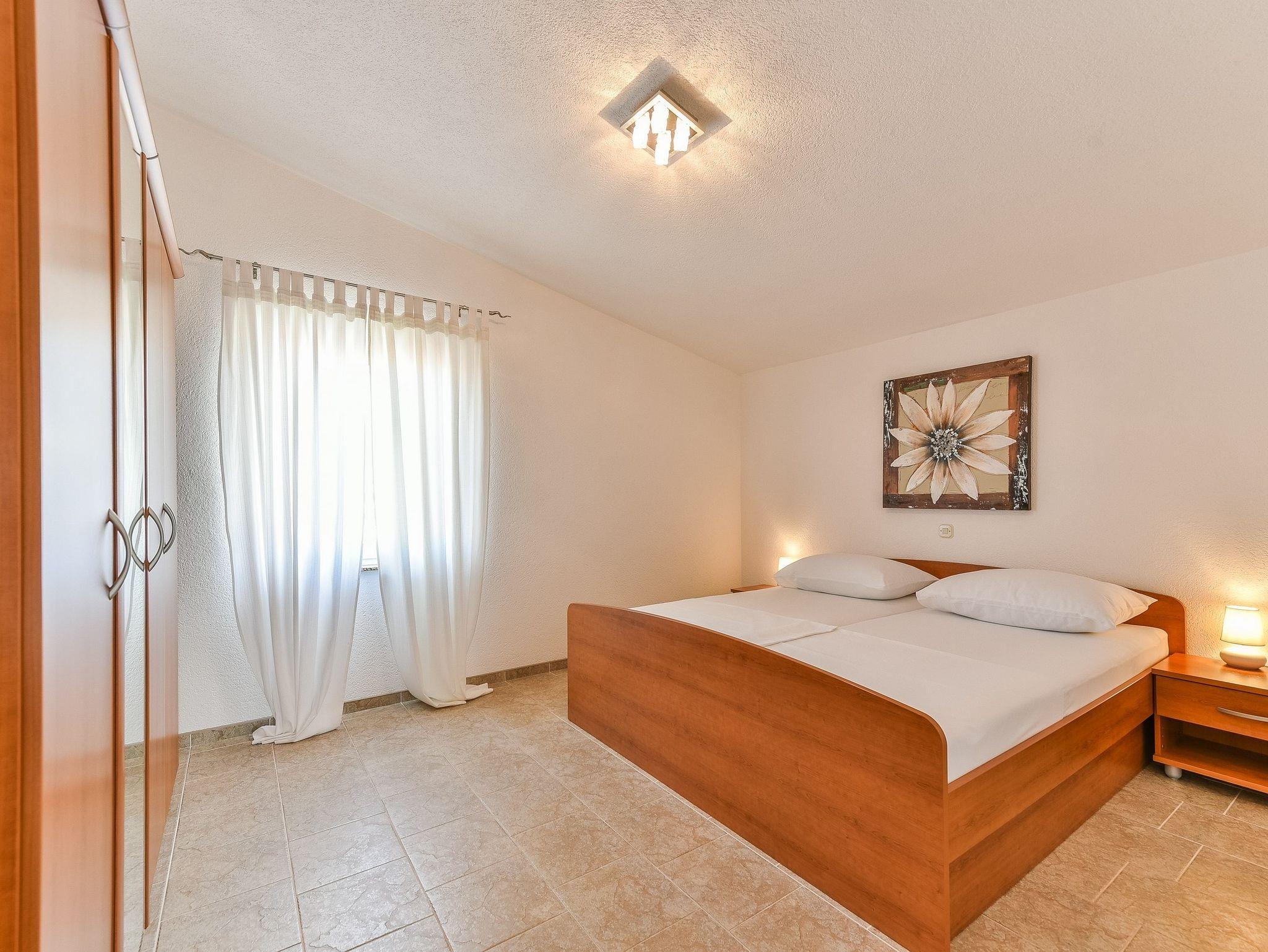 Ferienwohnung bietet Platz für 4 Gäste. Die Betten sind in Schlafzimmern, die es 1 gibt, und in Wohnzimmer, innerhalb einer Gesamtfläche von 40m2, angeordnet. Die Gäste haben eine eigene Terrasse zur Verfügung, auf der sie in warmen Sommernächten genießen können. Das Apartment bietet Meerblick. Es ist erlaubt, Speisen auf dem Gemeinschafts-Grill vorzubereiten. IM PREIS INBEGRIFFEN: Kurtaxe, Endreinigung, Klimatisierung, Parkplatz, Internet, Kinderbett, Föhn. VERBINDLICHE ZUSÄTZLICHE KOSTEN: Aufzahlung für Kurzaufenthalte (prozentualer Zuschlag pro Nächtigungsanzahl: 30% - 1, 20% - 2, 10% - 3). Die Verfügbarkeit zusätzlicher Dienstleistungen in Ihrem reservierten Termin und die Preise derselben (falls nicht aufgeführt) müssen im Voraus überprüft werden. Zusätzliche Dienstleistungen die in der Zahlungsaufforderung nicht aufgeführt sind werden direkt beim Vermieter bezahlt, angenommen der Gast nutzt auch diese.