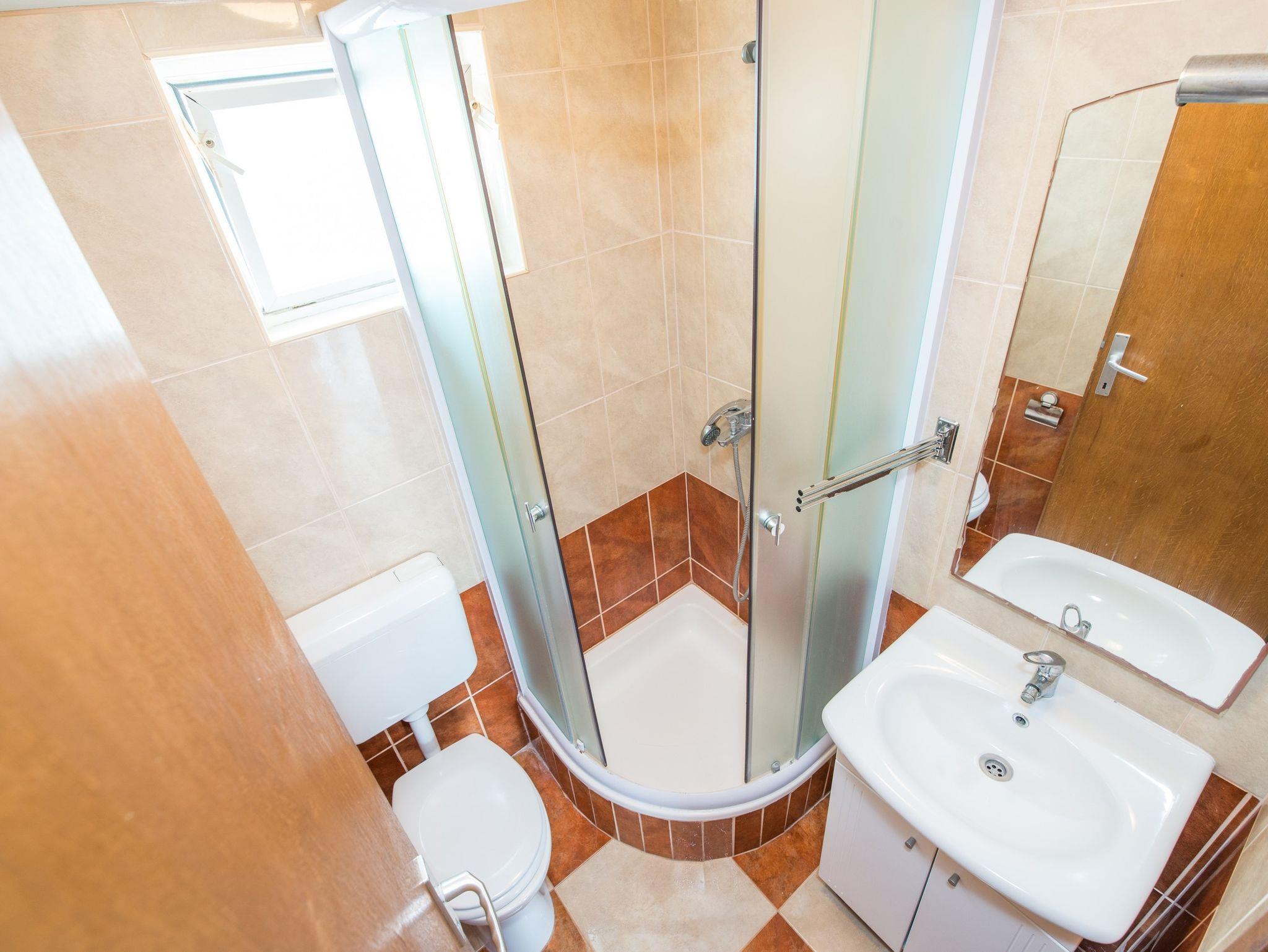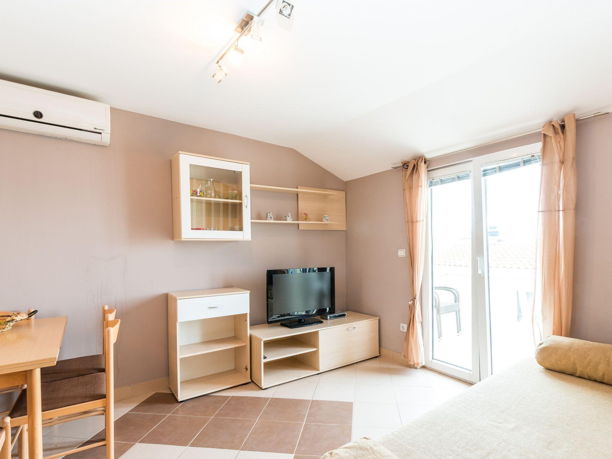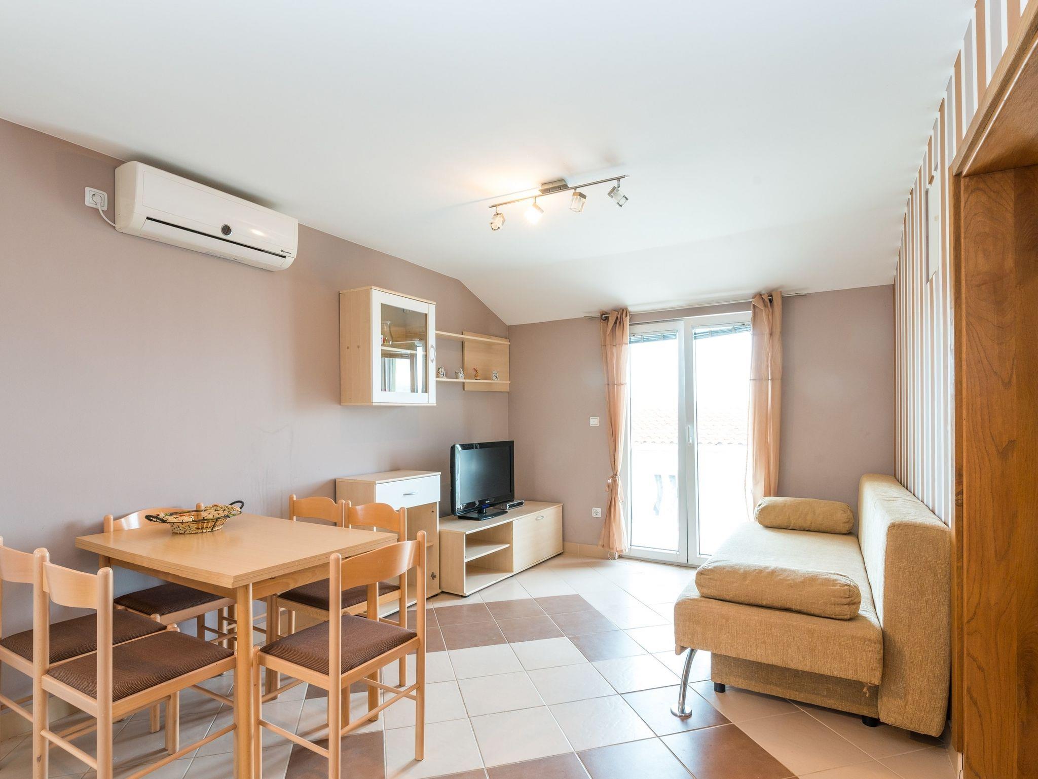 Ferienwohnung bietet Platz für 6 Gäste. Die Betten sind in Schlafzimmern, die es 2 gibt, und in Wohnzimmer, innerhalb einer Gesamtfläche von 43m2, angeordnet. Die Gäste haben einen eigenen Balkon zur Verfügung, auf der sie in warmen Sommernächten genießen können. Das Apartment bietet Meerblick. Es ist erlaubt, Speisen auf dem Gemeinschafts-Grill vorzubereiten. IM PREIS INBEGRIFFEN: Kurtaxe, Endreinigung, Klimatisierung, Parkplatz, Internet, Kinderbett, Föhn. VERBINDLICHE ZUSÄTZLICHE KOSTEN: Aufzahlung für Kurzaufenthalte (prozentualer Zuschlag pro Nächtigungsanzahl: 30% - 1, 20% - 2, 10% - 3). Die Verfügbarkeit zusätzlicher Dienstleistungen in Ihrem reservierten Termin und die Preise derselben (falls nicht aufgeführt) müssen im Voraus überprüft werden. Zusätzliche Dienstleistungen die in der Zahlungsaufforderung nicht aufgeführt sind werden direkt beim Vermieter bezahlt, angenommen der Gast nutzt auch diese.
