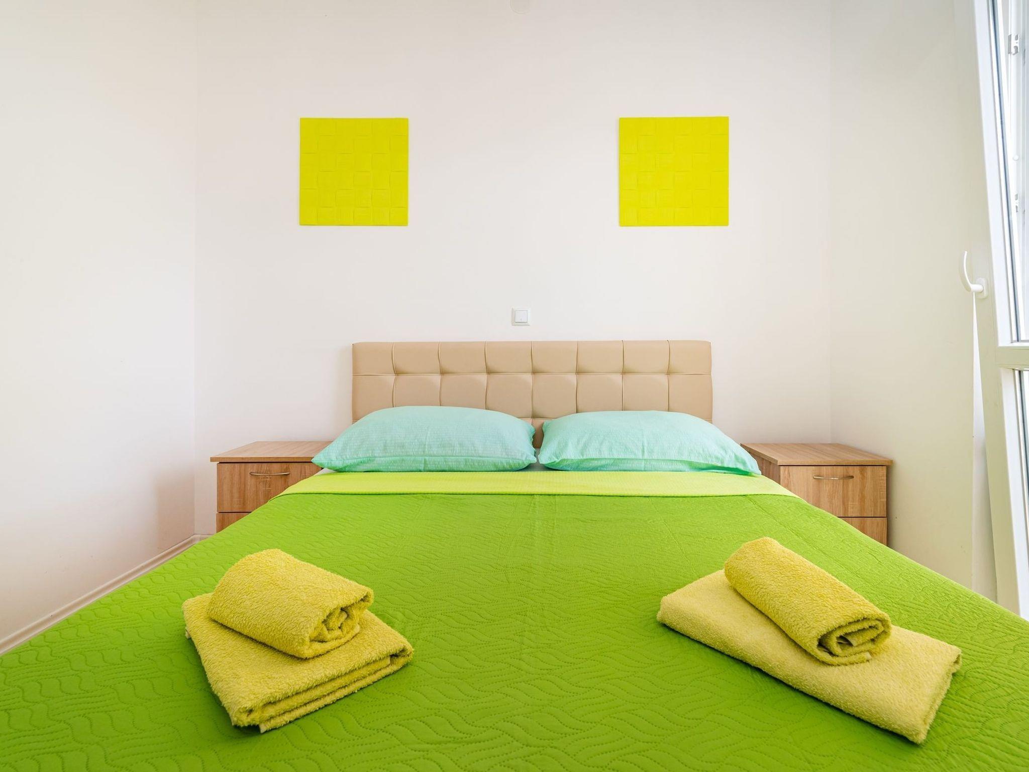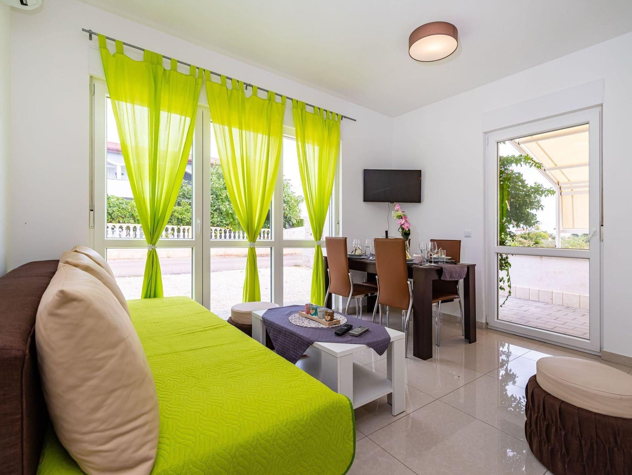 Ferienwohnung bietet Platz für 4 Gäste. Die Betten sind in Schlafzimmern, die es 1 gibt, und in Wohnzimmer, innerhalb einer Gesamtfläche von 32m2, angeordnet. Die Gäste haben eine eigene Terrasse zur Verfügung, auf der sie in warmen Sommernächten genießen können. Es ist erlaubt, Speisen auf dem Gemeinschafts-Grill vorzubereiten. Während ihres Aufenthalts können Gäste das gemeinsam zur Nutzung stehende Schwimmbad benutzen. IM PREIS INBEGRIFFEN: Kurtaxe, Endreinigung, Klimatisierung, Pool, Parkplatz, Internet, Kinderbett. VERBINDLICHE ZUSÄTZLICHE KOSTEN: Aufzahlung für Kurzaufenthalte (prozentualer Zuschlag pro Nächtigungsanzahl: 30% - 1, 20% - 2, 10% - 3). Die Verfügbarkeit zusätzlicher Dienstleistungen in Ihrem reservierten Termin und die Preise derselben (falls nicht aufgeführt) müssen im Voraus überprüft werden. Zusätzliche Dienstleistungen die in der Zahlungsaufforderung nicht aufgeführt sind werden direkt beim Vermieter bezahlt, angenommen der Gast nutzt auch diese.