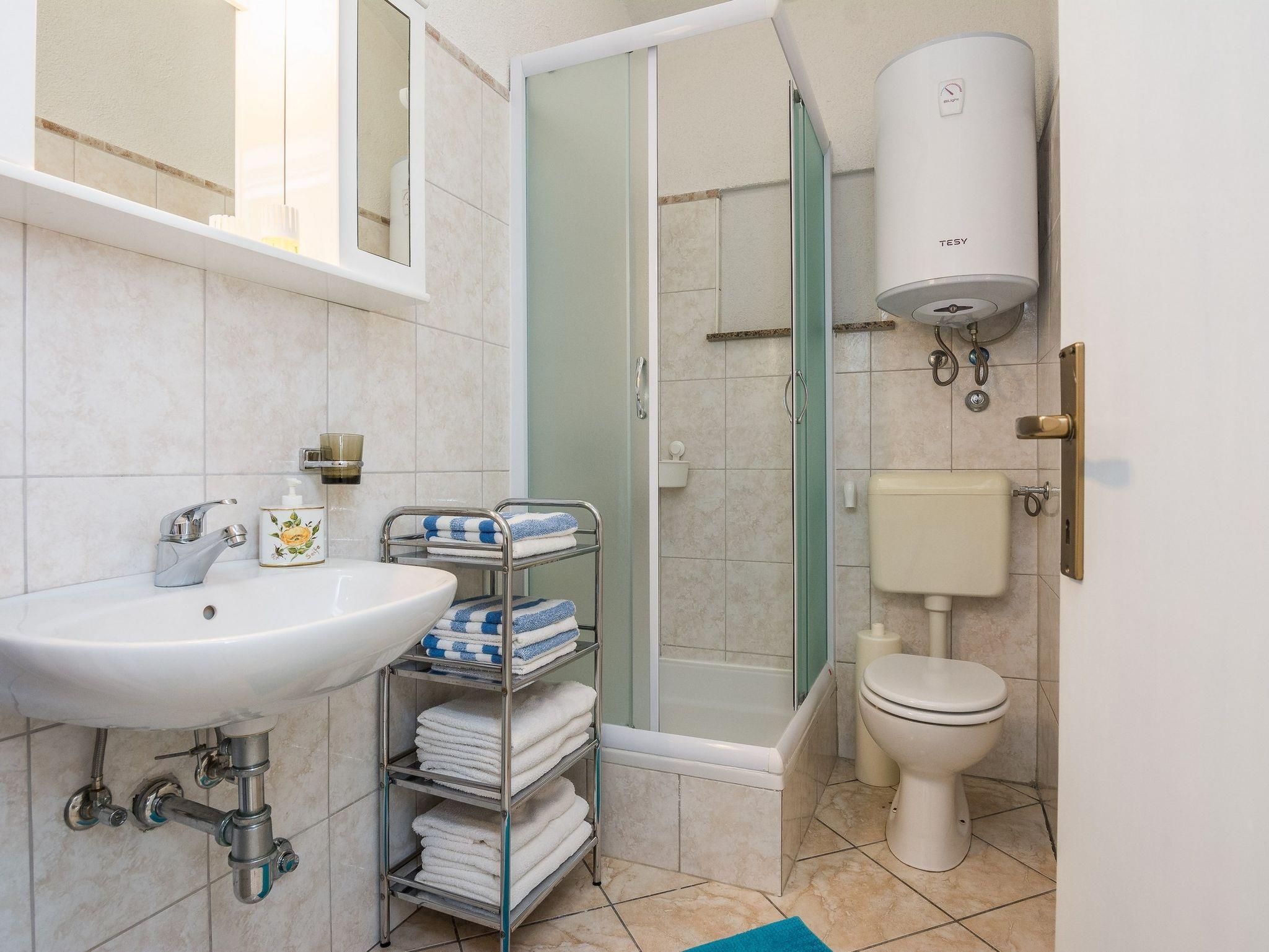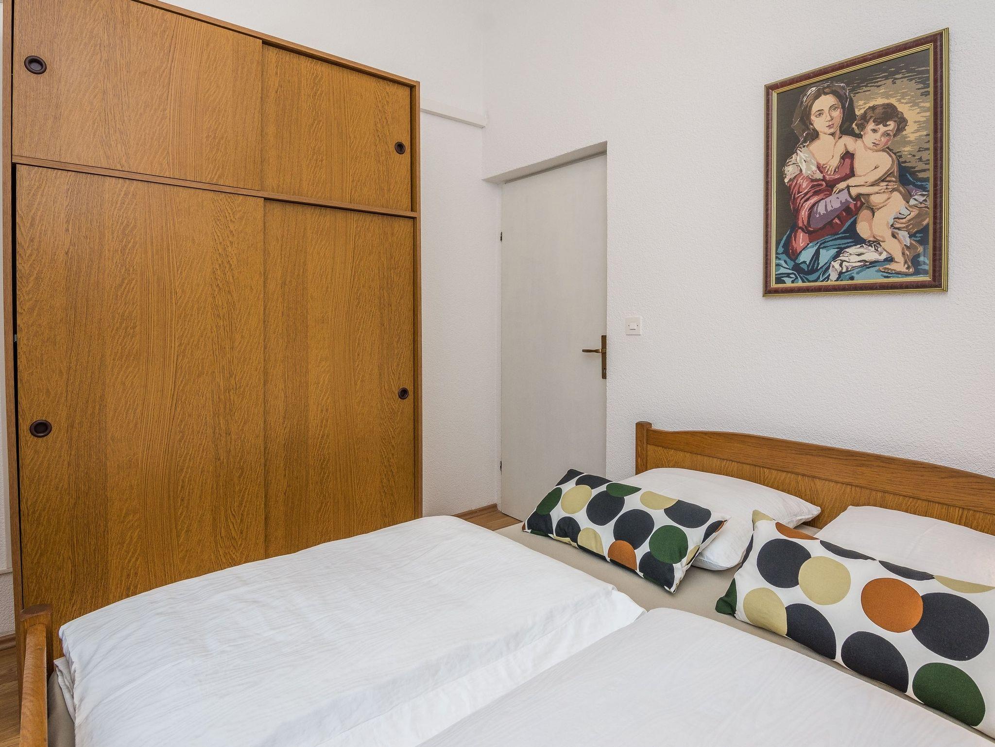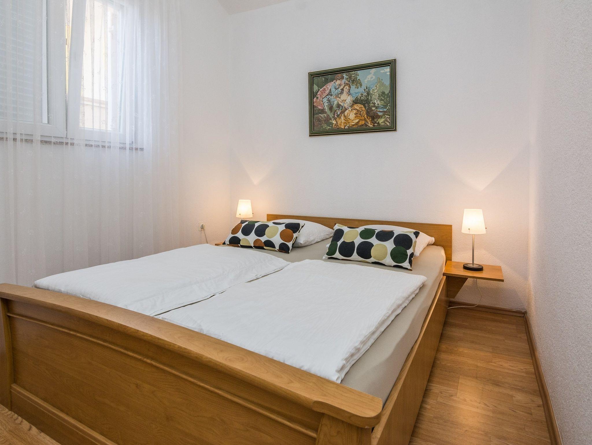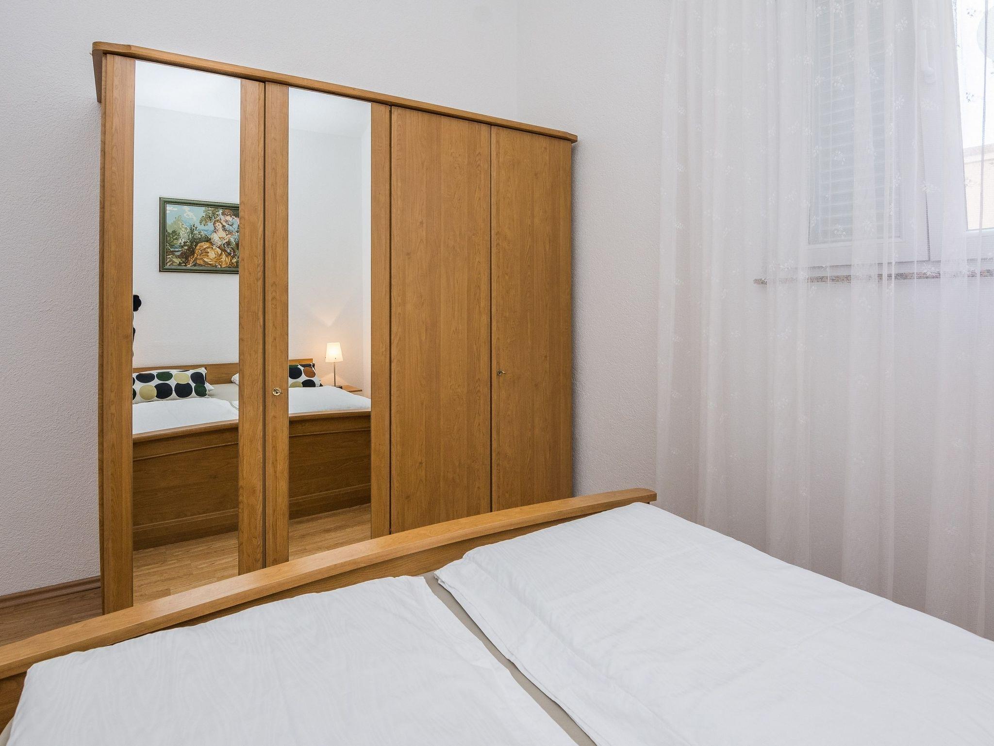 Ferienwohnung bietet Platz für 4 Gäste. Die Betten sind in Schlafzimmern, die es 2 gibt, innerhalb einer Gesamtfläche von 49m2, angeordnet. Die Gäste haben eine eigene Terrasse zur Verfügung, auf der sie in warmen Sommernächten genießen können. Das Apartment bietet Meerblick. Es ist erlaubt, Speisen auf dem Gemeinschafts-Grill vorzubereiten. IM PREIS INBEGRIFFEN: Kurtaxe, Endreinigung, Klimatisierung, Parkplatz, Internet, Wäschewaschen, Kinderbett, Föhn. VERBINDLICHE ZUSÄTZLICHE KOSTEN: Aufzahlung für Kurzaufenthalte (prozentualer Zuschlag pro Nächtigungsanzahl: 30% - 1, 20% - 2, 10% - 3). Die Verfügbarkeit zusätzlicher Dienstleistungen in Ihrem reservierten Termin und die Preise derselben (falls nicht aufgeführt) müssen im Voraus überprüft werden. Zusätzliche Dienstleistungen die in der Zahlungsaufforderung nicht aufgeführt sind werden direkt beim Vermieter bezahlt, angenommen der Gast nutzt auch diese.