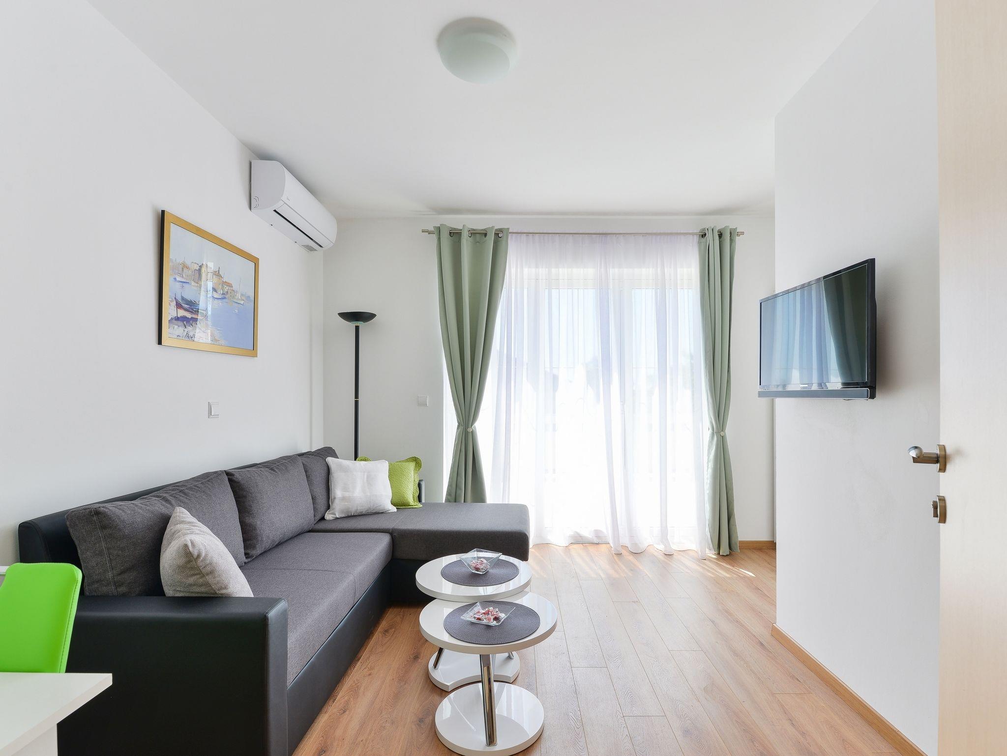 Ferienwohnung bietet Platz für 6 Gäste. Die Betten sind in Schlafzimmern, die es 2 gibt, und in Wohnzimmer, innerhalb einer Gesamtfläche von 75m2, angeordnet. Die Gäste haben einen eigenen Balkon zur Verfügung, auf der sie in warmen Sommernächten genießen können. Es ist erlaubt, Speisen auf dem Gemeinschafts-Grill vorzubereiten. IM PREIS INBEGRIFFEN: Kurtaxe, Endreinigung, Klimatisierung, Parkplatz, Internet, Kinderbett, Föhn. VERBINDLICHE ZUSÄTZLICHE KOSTEN: Aufzahlung für Kurzaufenthalte (prozentualer Zuschlag pro Nächtigungsanzahl: 30% - 1, 20% - 2, 10% - 3). Die Verfügbarkeit zusätzlicher Dienstleistungen in Ihrem reservierten Termin und die Preise derselben (falls nicht aufgeführt) müssen im Voraus überprüft werden. Zusätzliche Dienstleistungen die in der Zahlungsaufforderung nicht aufgeführt sind werden direkt beim Vermieter bezahlt, angenommen der Gast nutzt auch diese.