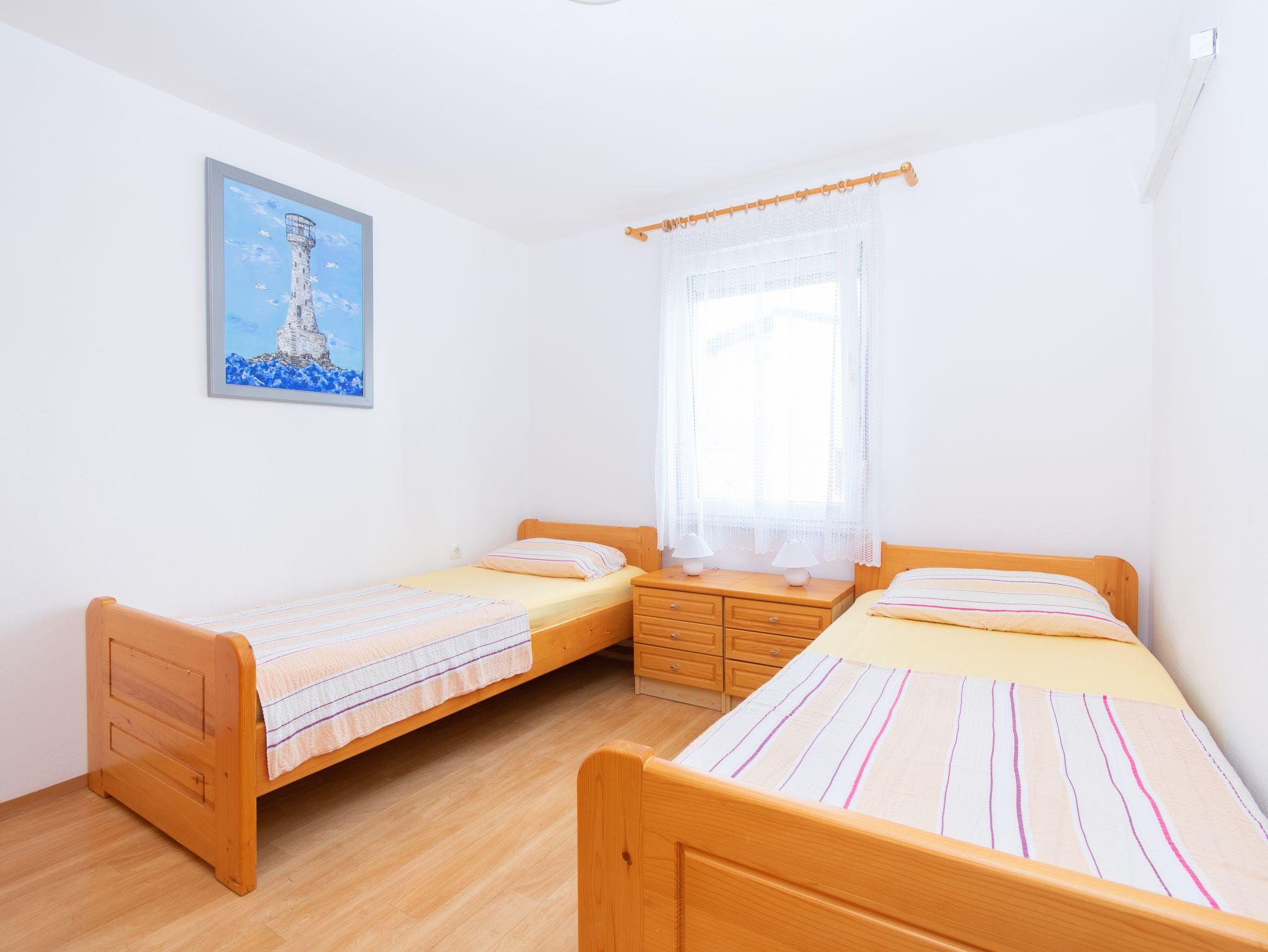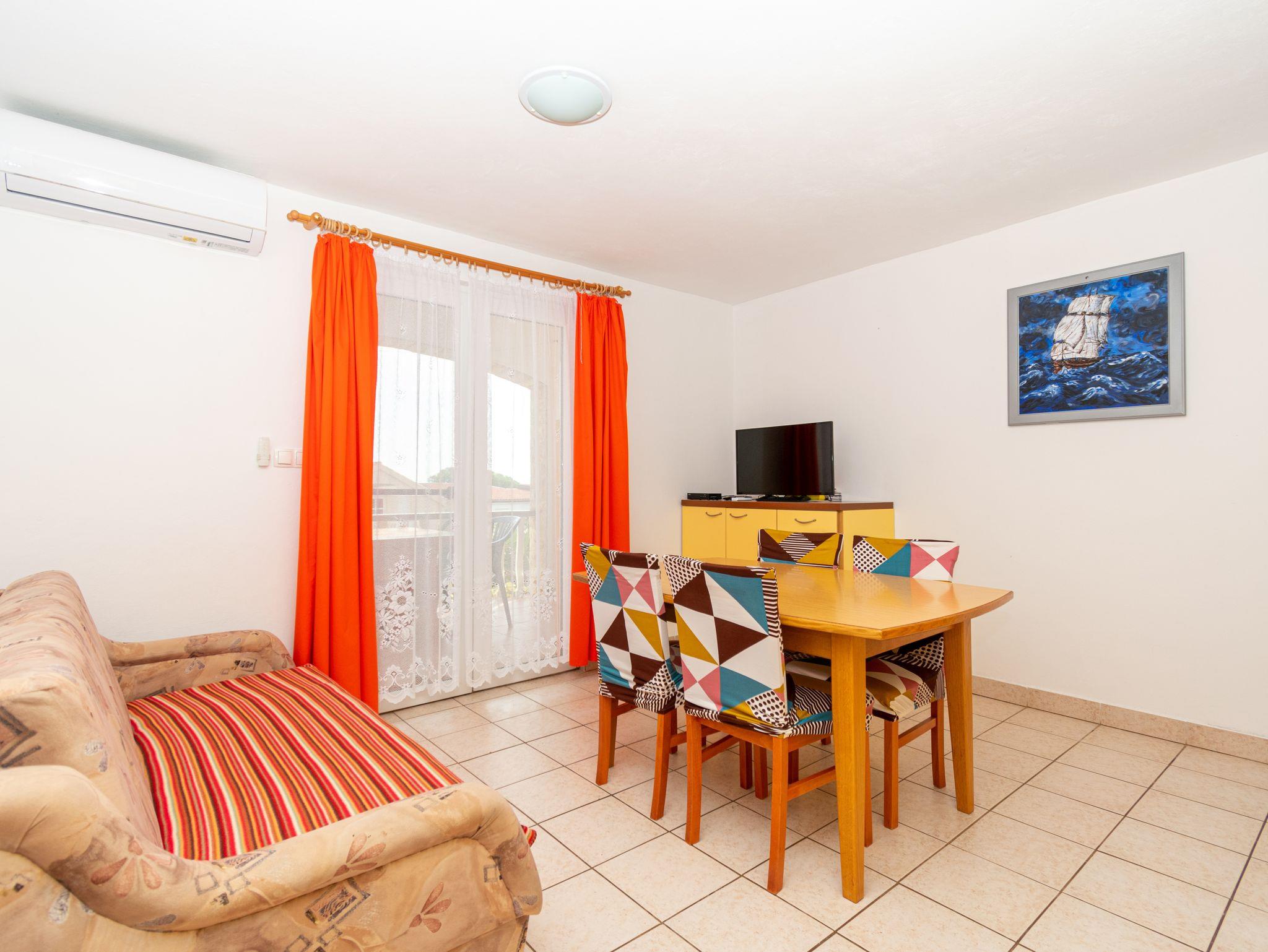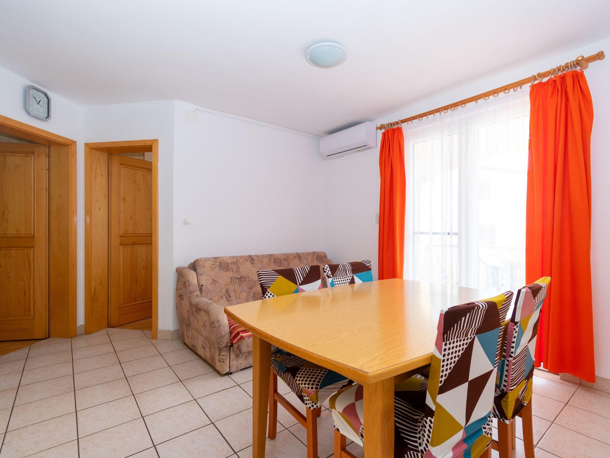 Ferienwohnung bietet Platz für 5 Gäste. Die Betten sind in Schlafzimmern, die es 2 gibt, und in Esszimmer, innerhalb einer Gesamtfläche von 54m2, angeordnet. Die Gäste haben einen eigenen Balkon zur Verfügung, auf der sie in warmen Sommernächten genießen können. Das Apartment bietet Meerblick. Es ist erlaubt, Speisen auf dem Gemeinschafts-Grill vorzubereiten. IM PREIS INBEGRIFFEN: Kurtaxe, Endreinigung, Klimatisierung, Parkplatz, Internet, Kinderbett, Bügeleisen, Föhn. VERBINDLICHE ZUSÄTZLICHE KOSTEN: Aufzahlung für Kurzaufenthalte (prozentualer Zuschlag pro Nächtigungsanzahl: 30% - 1, 20% - 2, 10% - 3). Die Verfügbarkeit zusätzlicher Dienstleistungen in Ihrem reservierten Termin und die Preise derselben (falls nicht aufgeführt) müssen im Voraus überprüft werden. Zusätzliche Dienstleistungen die in der Zahlungsaufforderung nicht aufgeführt sind werden direkt beim Vermieter bezahlt, angenommen der Gast nutzt auch diese.