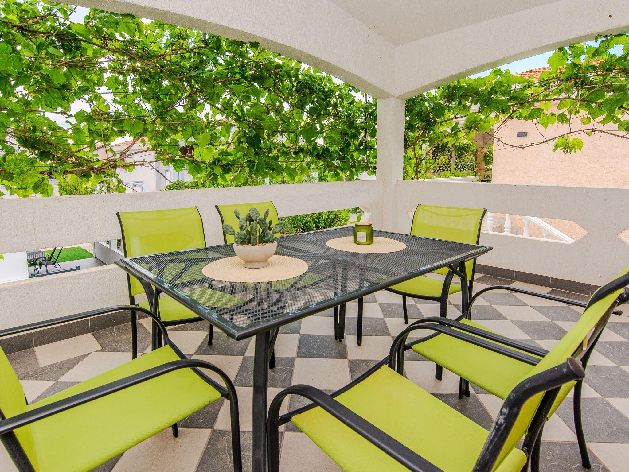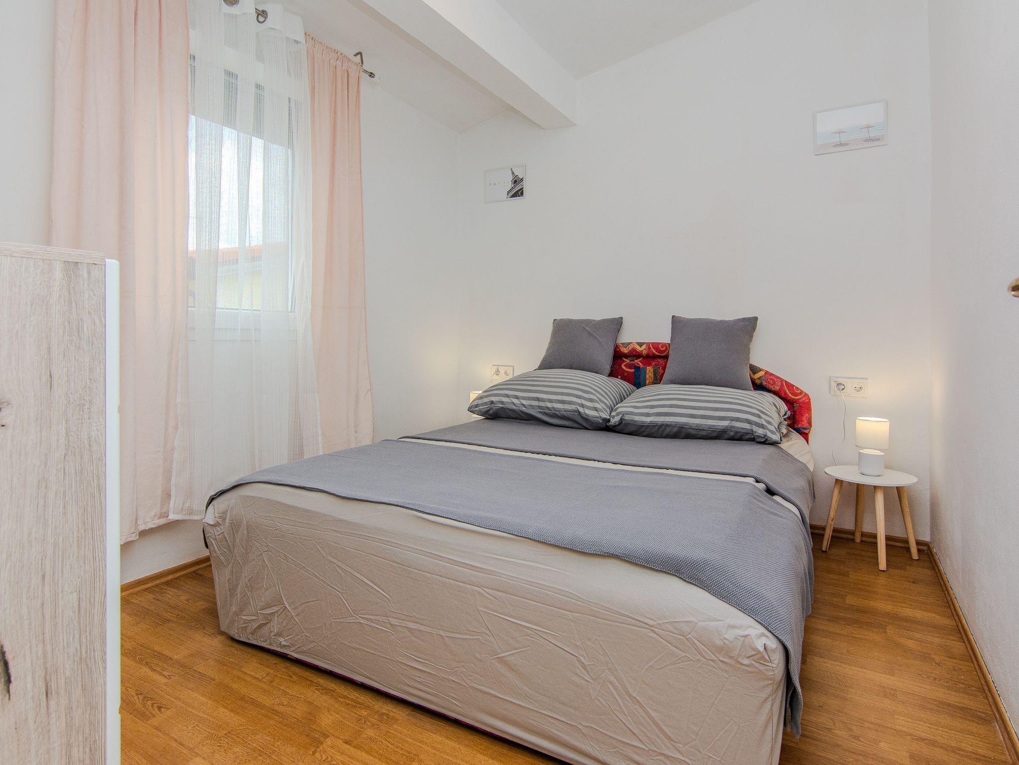 Ferienwohnung bietet Platz für 4 Gäste. Die Betten sind in Schlafzimmern, die es 1 gibt, und in Wohnzimmer, innerhalb einer Gesamtfläche von 40m2, angeordnet. Die Gäste haben eine eigene Terrasse zur Verfügung, auf der sie in warmen Sommernächten genießen können. Für vollen Genuss und Entspannung gibt es einen privaten Grill für Gäste dieser Unterkunft. IM PREIS INBEGRIFFEN: Kurtaxe, Endreinigung, Klimatisierung, Parkplatz, Internet, Wäschewaschen, Föhn. VERBINDLICHE ZUSÄTZLICHE KOSTEN: Aufzahlung für Kurzaufenthalte (prozentualer Zuschlag pro Nächtigungsanzahl: 30% - 1, 20% - 2, 10% - 3). Die Verfügbarkeit zusätzlicher Dienstleistungen in Ihrem reservierten Termin und die Preise derselben (falls nicht aufgeführt) müssen im Voraus überprüft werden. Zusätzliche Dienstleistungen die in der Zahlungsaufforderung nicht aufgeführt sind werden direkt beim Vermieter bezahlt, angenommen der Gast nutzt auch diese.