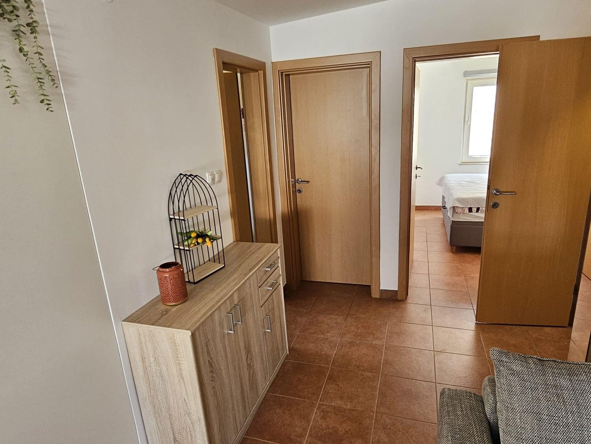 Ferienwohnung bietet Platz für 4 Gäste. Die Betten sind in Schlafzimmern, die es 2 gibt, innerhalb einer Gesamtfläche von 48m2, angeordnet. Die Gäste haben eine eigene Terrasse zur Verfügung, auf der sie in warmen Sommernächten genießen können. Für vollen Genuss und Entspannung gibt es einen privaten Grill für Gäste dieser Unterkunft. IM PREIS INBEGRIFFEN: Kurtaxe, Endreinigung, Klimatisierung, Parkplatz, Internet, Kinderbett, Bügeleisen, Bügelbrett, Föhn. VERBINDLICHE ZUSÄTZLICHE KOSTEN: Aufzahlung für Kurzaufenthalte (prozentualer Zuschlag pro Nächtigungsanzahl: 30% - 1, 20% - 2, 10% - 3). Die Verfügbarkeit zusätzlicher Dienstleistungen in Ihrem reservierten Termin und die Preise derselben (falls nicht aufgeführt) müssen im Voraus überprüft werden. Zusätzliche Dienstleistungen die in der Zahlungsaufforderung nicht aufgeführt sind werden direkt beim Vermieter bezahlt, angenommen der Gast nutzt auch diese.