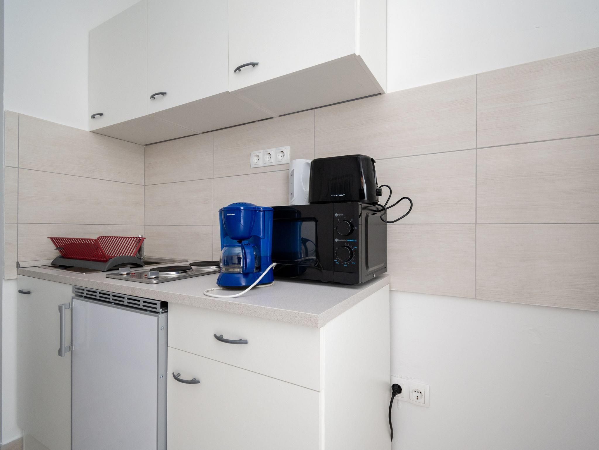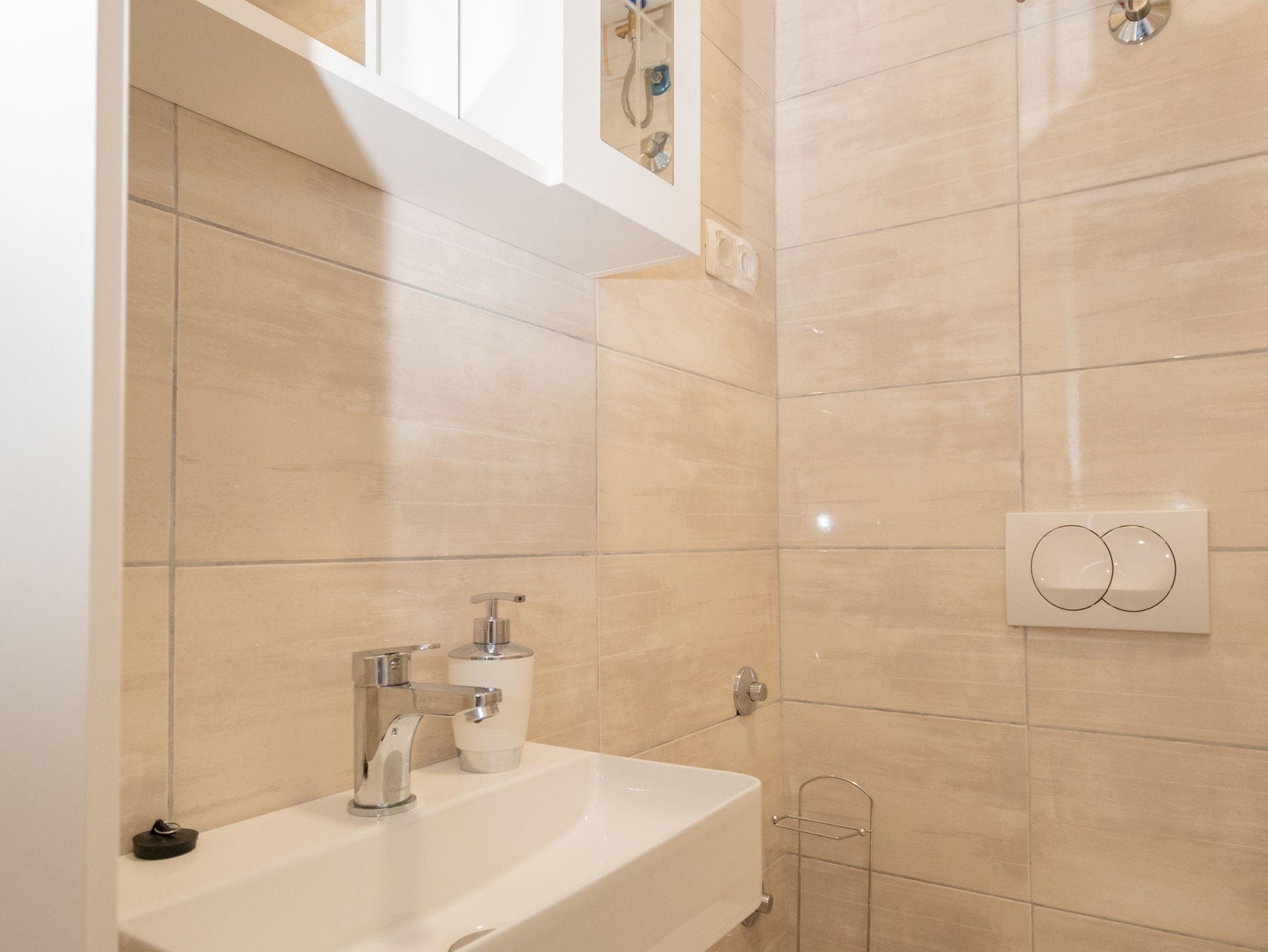 Studio bietet Platz für 2 Gäste. Die Betten sind in Schlafzimmern, die es 1 gibt, innerhalb einer Gesamtfläche von 23m2, angeordnet. Die Gäste haben eine eigene Terrasse zur Verfügung, auf der sie in warmen Sommernächten genießen können. Es ist erlaubt, Speisen auf dem Gemeinschafts-Grill vorzubereiten. IM PREIS INBEGRIFFEN: Kurtaxe, Endreinigung, Klimatisierung, Parkplatz, Internet, Bügeleisen, Bügelbrett, Föhn. VERBINDLICHE ZUSÄTZLICHE KOSTEN: Aufzahlung für Kurzaufenthalte (prozentualer Zuschlag pro Nächtigungsanzahl: 30% - 1, 20% - 2, 10% - 3). Die Verfügbarkeit zusätzlicher Dienstleistungen in Ihrem reservierten Termin und die Preise derselben (falls nicht aufgeführt) müssen im Voraus überprüft werden. Zusätzliche Dienstleistungen die in der Zahlungsaufforderung nicht aufgeführt sind werden direkt beim Vermieter bezahlt, angenommen der Gast nutzt auch diese.