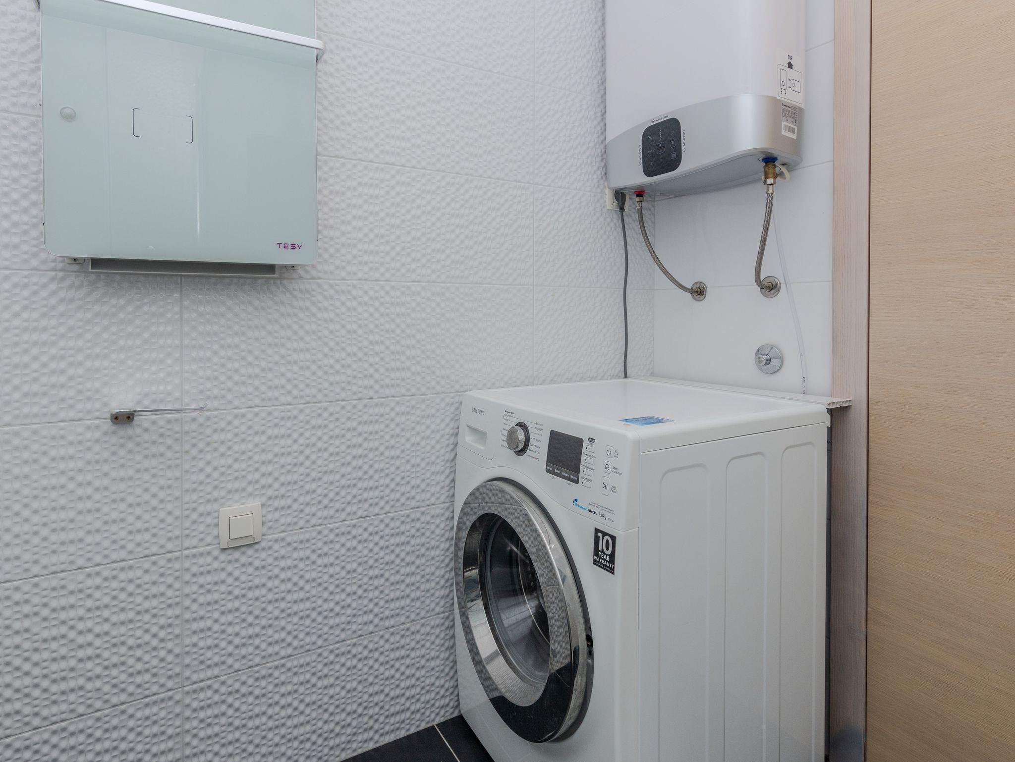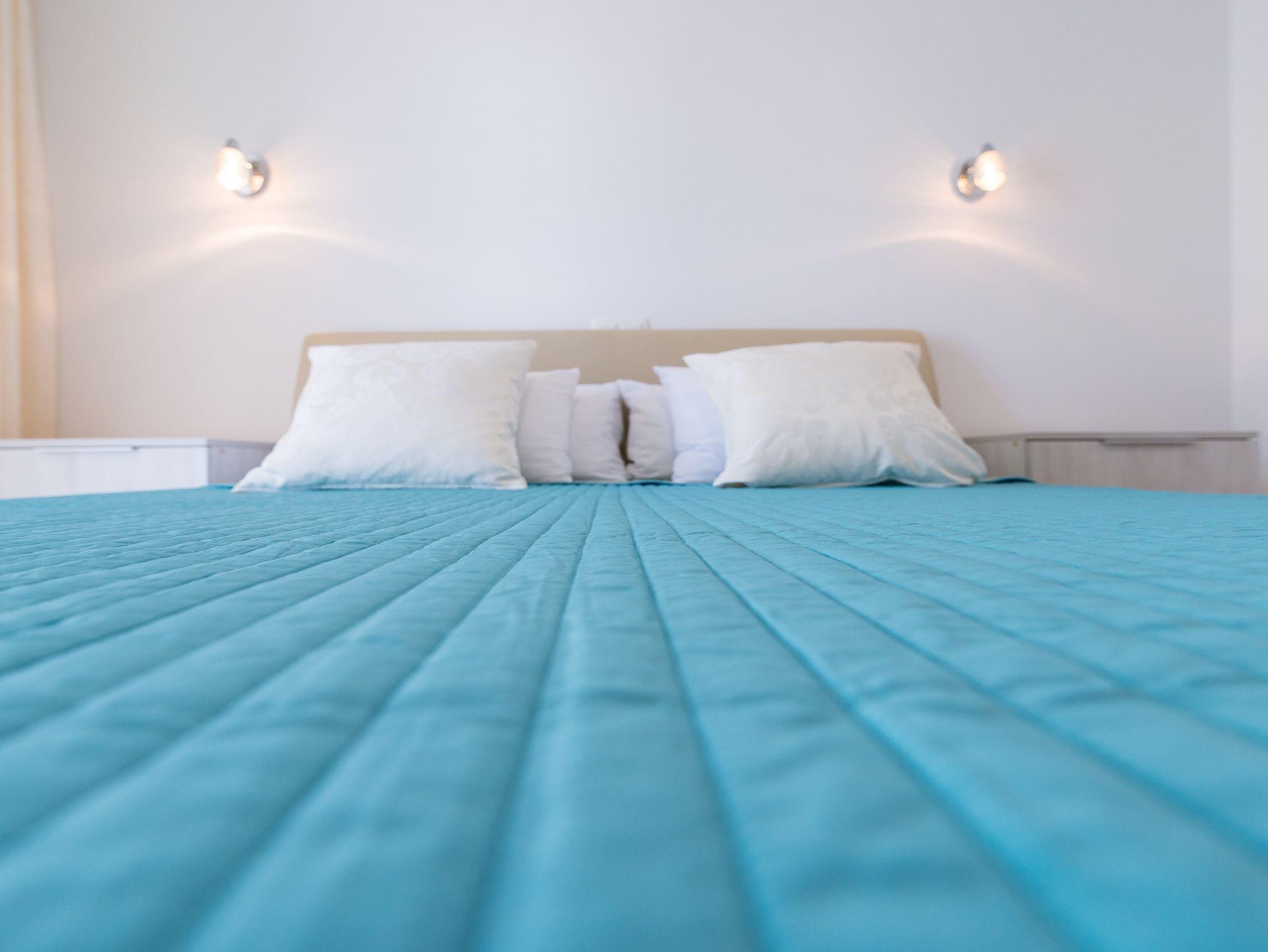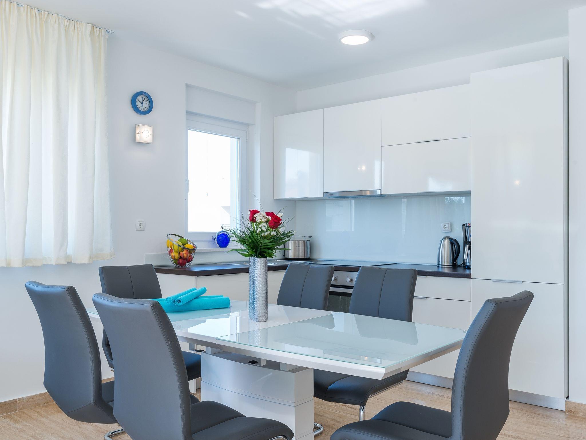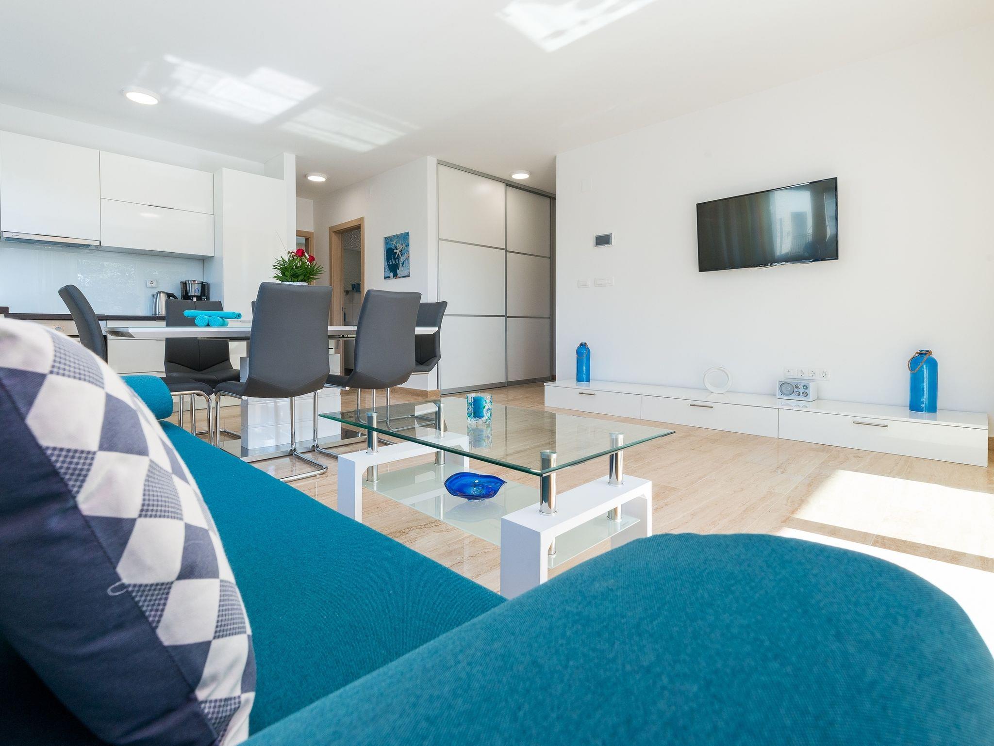 Ferienwohnung bietet Platz für 6 Gäste. Die Betten sind in Schlafzimmern, die es 2 gibt, und in Wohnzimmer, innerhalb einer Gesamtfläche von 65m2, angeordnet. Die Gäste haben eine eigene Terrasse zur Verfügung, auf der sie in warmen Sommernächten genießen können. Es ist erlaubt, Speisen auf dem Gemeinschafts-Grill vorzubereiten. IM PREIS INBEGRIFFEN: Kurtaxe, Endreinigung, Klimatisierung, Parkplatz, Internet, Kinderbett, Bügeleisen, Bügelbrett, Föhn. VERBINDLICHE ZUSÄTZLICHE KOSTEN: Aufzahlung für Kurzaufenthalte (prozentualer Zuschlag pro Nächtigungsanzahl: 30% - 1, 20% - 2, 10% - 3). Die Verfügbarkeit zusätzlicher Dienstleistungen in Ihrem reservierten Termin und die Preise derselben (falls nicht aufgeführt) müssen im Voraus überprüft werden. Zusätzliche Dienstleistungen die in der Zahlungsaufforderung nicht aufgeführt sind werden direkt beim Vermieter bezahlt, angenommen der Gast nutzt auch diese.