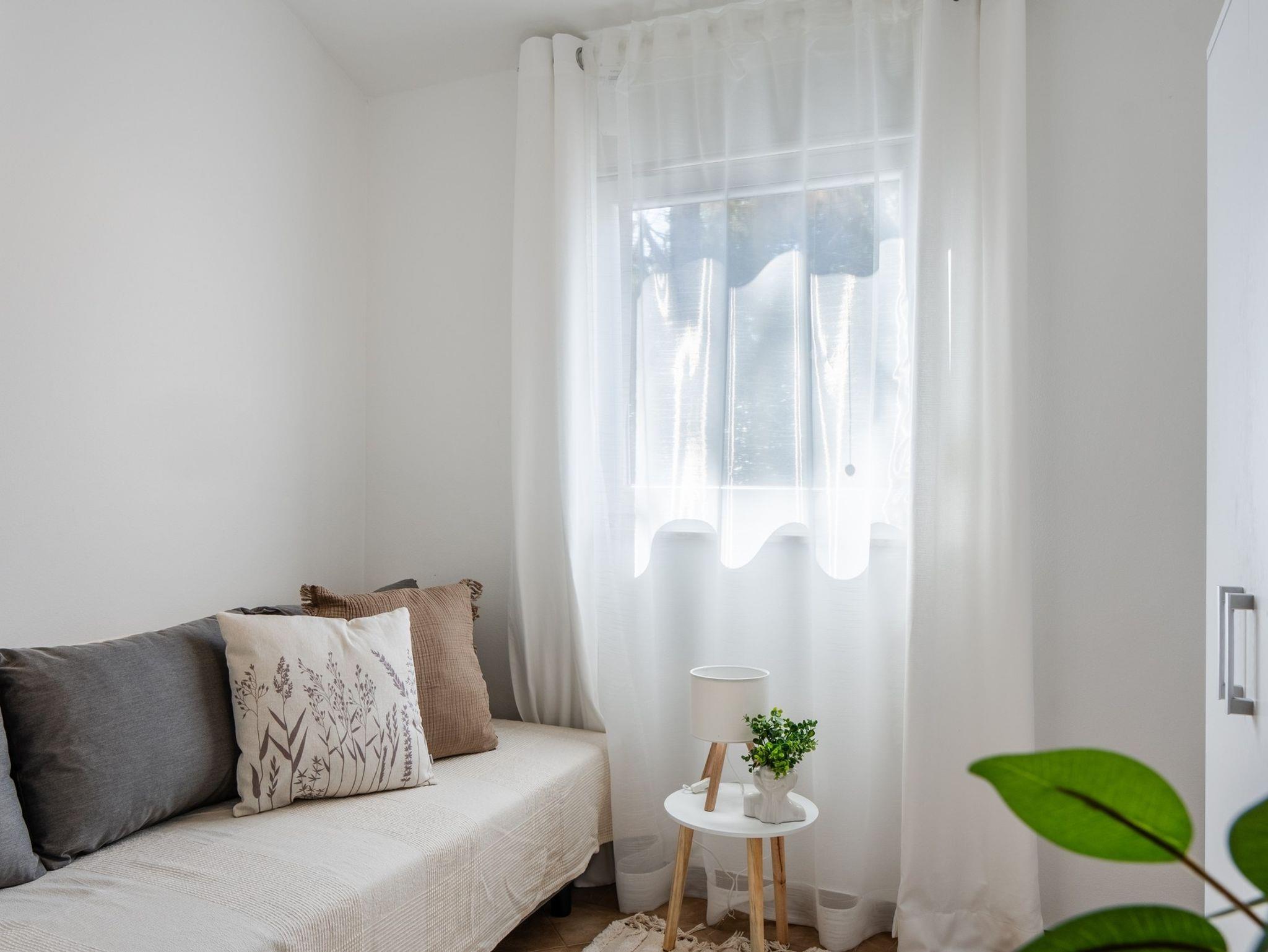 Ferienwohnung bietet Platz für 5 Gäste. Die Betten sind in Schlafzimmern, die es 2 gibt, und in Wohnzimmer, innerhalb einer Gesamtfläche von 55m2, angeordnet. Die Gäste haben eine eigene Terrasse zur Verfügung, auf der sie in warmen Sommernächten genießen können. Es ist erlaubt, Speisen auf dem Gemeinschafts-Grill vorzubereiten. IM PREIS INBEGRIFFEN: Kurtaxe, Endreinigung, Klimatisierung, Parkplatz, Internet, Kinderbett, Föhn. Die Verfügbarkeit zusätzlicher Dienstleistungen in Ihrem reservierten Termin und die Preise derselben (falls nicht aufgeführt) müssen im Voraus überprüft werden. Zusätzliche Dienstleistungen die in der Zahlungsaufforderung nicht aufgeführt sind werden direkt beim Vermieter bezahlt, angenommen der Gast nutzt auch diese.