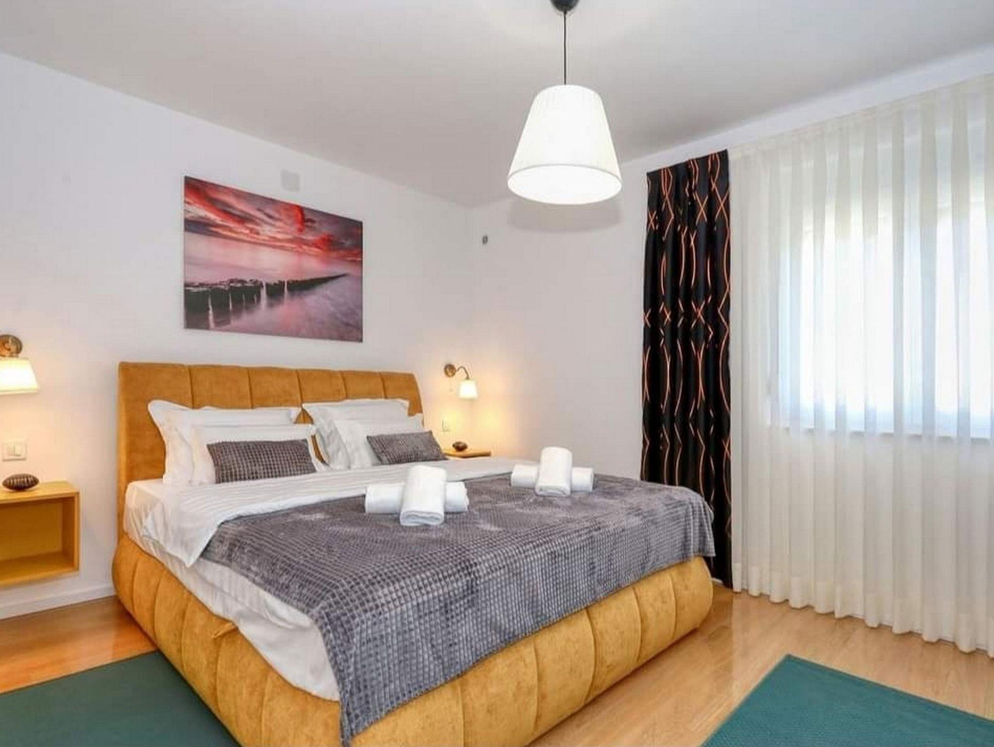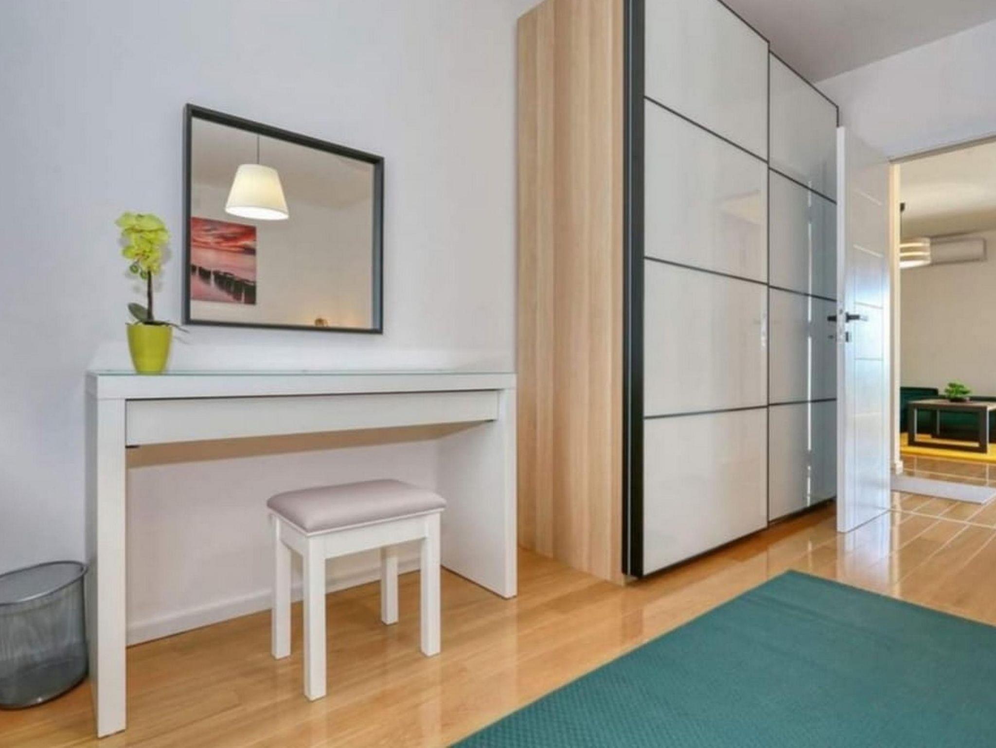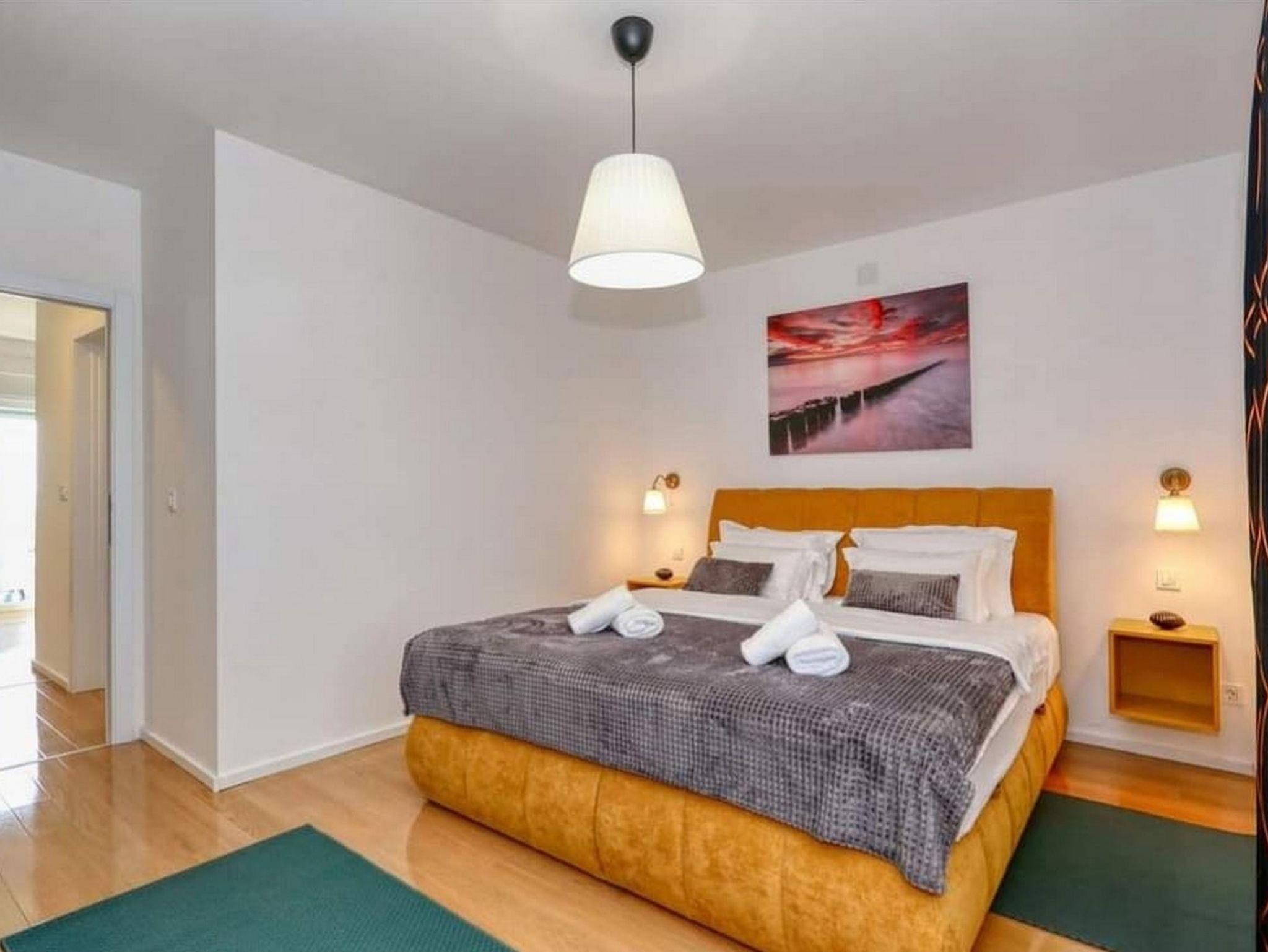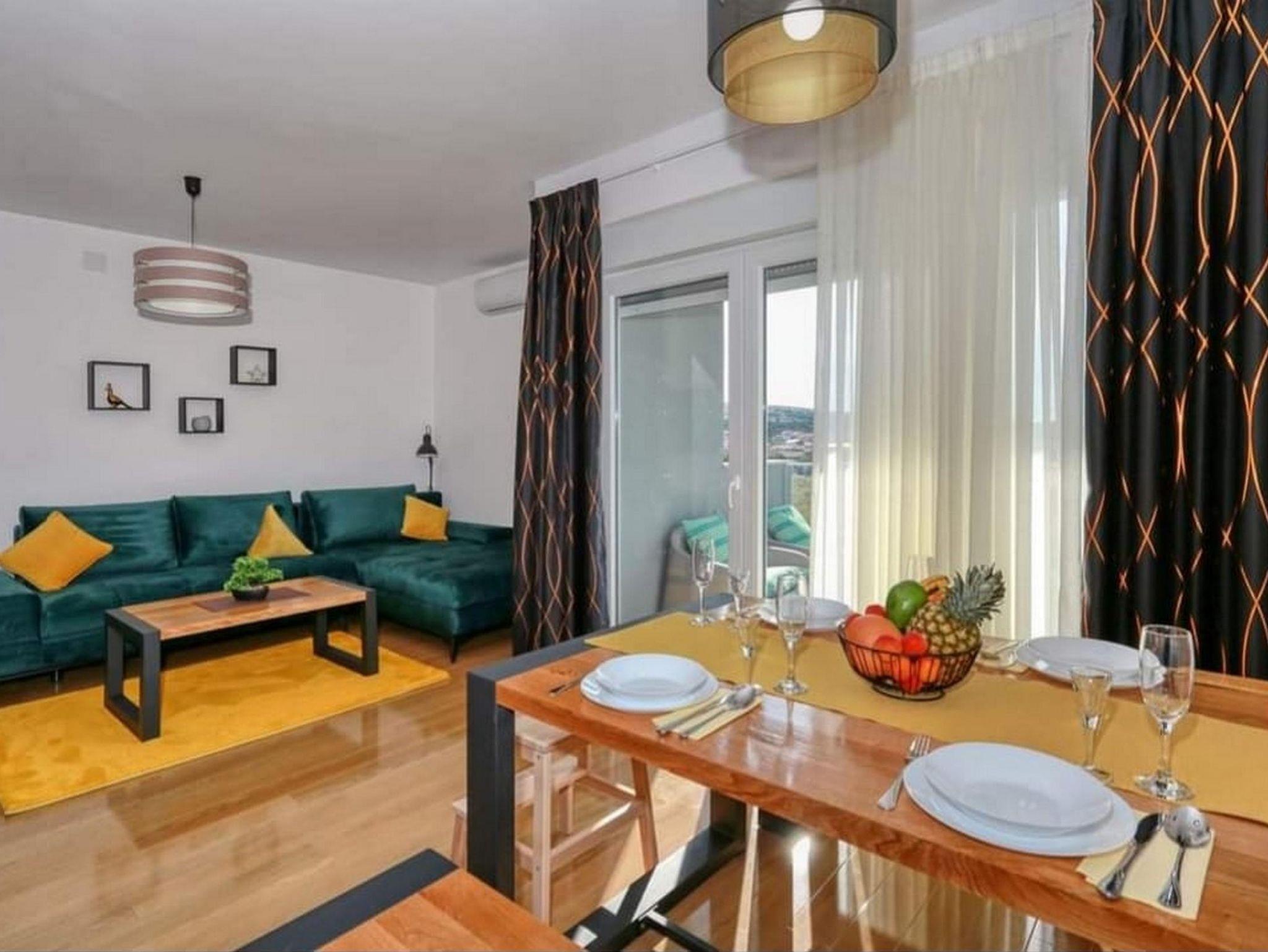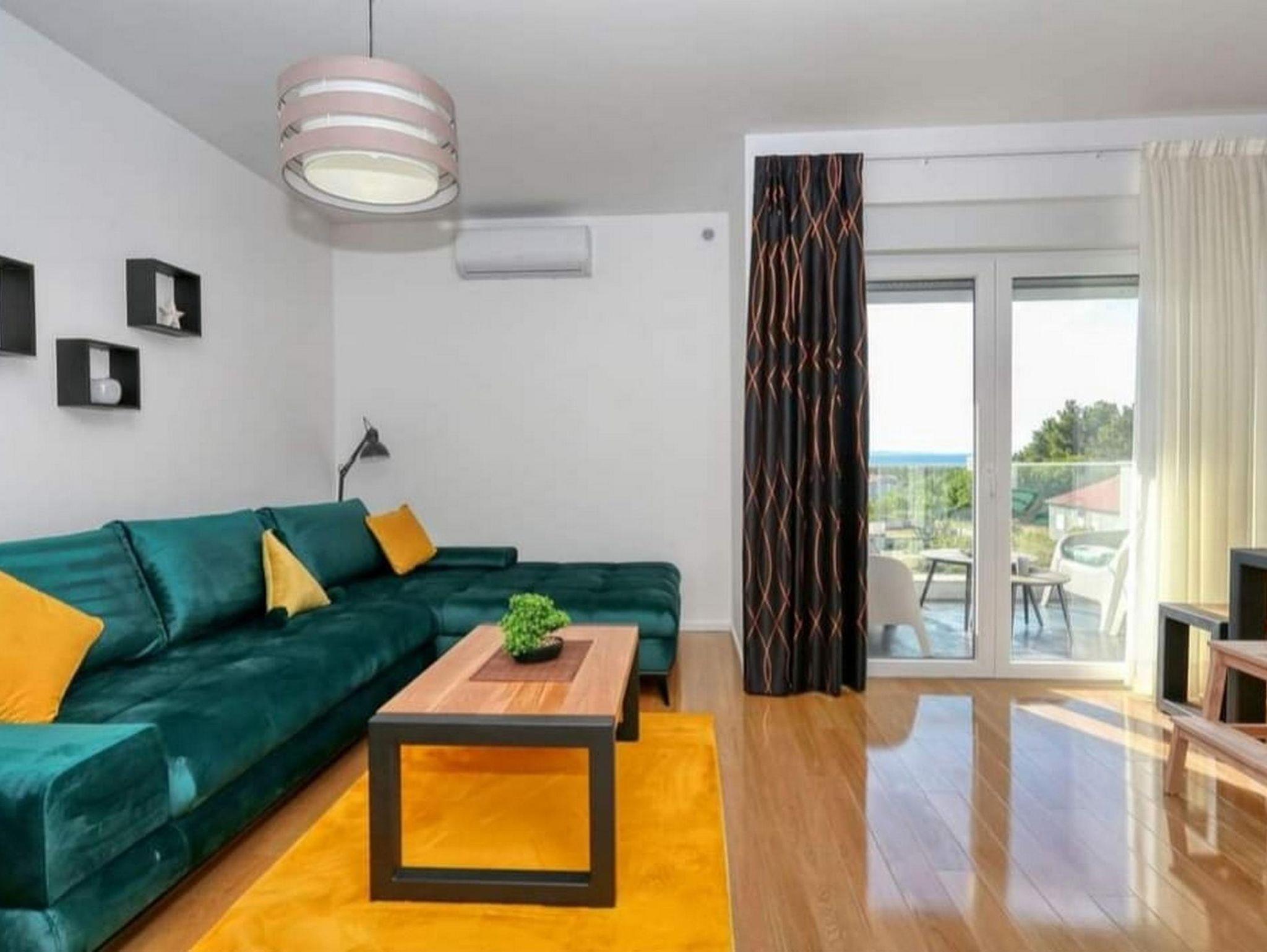 Ferienwohnung bietet Platz für 4 Gäste. Die Betten sind in Schlafzimmern, die es 1 gibt, und in Wohnzimmer, innerhalb einer Gesamtfläche von 43m2, angeordnet. Die Gäste haben eine eigene Terrasse zur Verfügung, auf der sie in warmen Sommernächten genießen können. Das Apartment bietet Meerblick. Es ist erlaubt, Speisen auf dem Gemeinschafts-Grill vorzubereiten. IM PREIS INBEGRIFFEN: Kurtaxe, Endreinigung, Klimatisierung, Parkplatz, Internet, Kinderbett, Bügeleisen, Bügelbrett, Föhn, tragbarer Grill. VERBINDLICHE ZUSÄTZLICHE KOSTEN: Aufzahlung für Kurzaufenthalte (prozentualer Zuschlag pro Nächtigungsanzahl: 30% - 1, 20% - 2, 10% - 3). Die Verfügbarkeit zusätzlicher Dienstleistungen in Ihrem reservierten Termin und die Preise derselben (falls nicht aufgeführt) müssen im Voraus überprüft werden. Zusätzliche Dienstleistungen die in der Zahlungsaufforderung nicht aufgeführt sind werden direkt beim Vermieter bezahlt, angenommen der Gast nutzt auch diese.