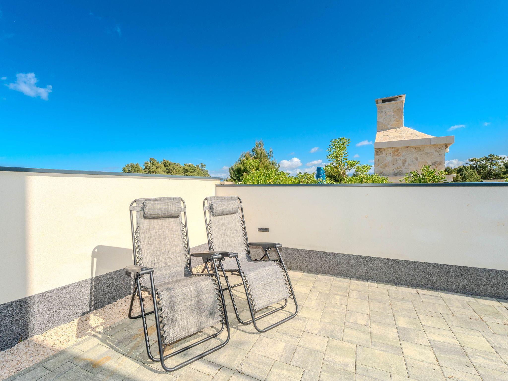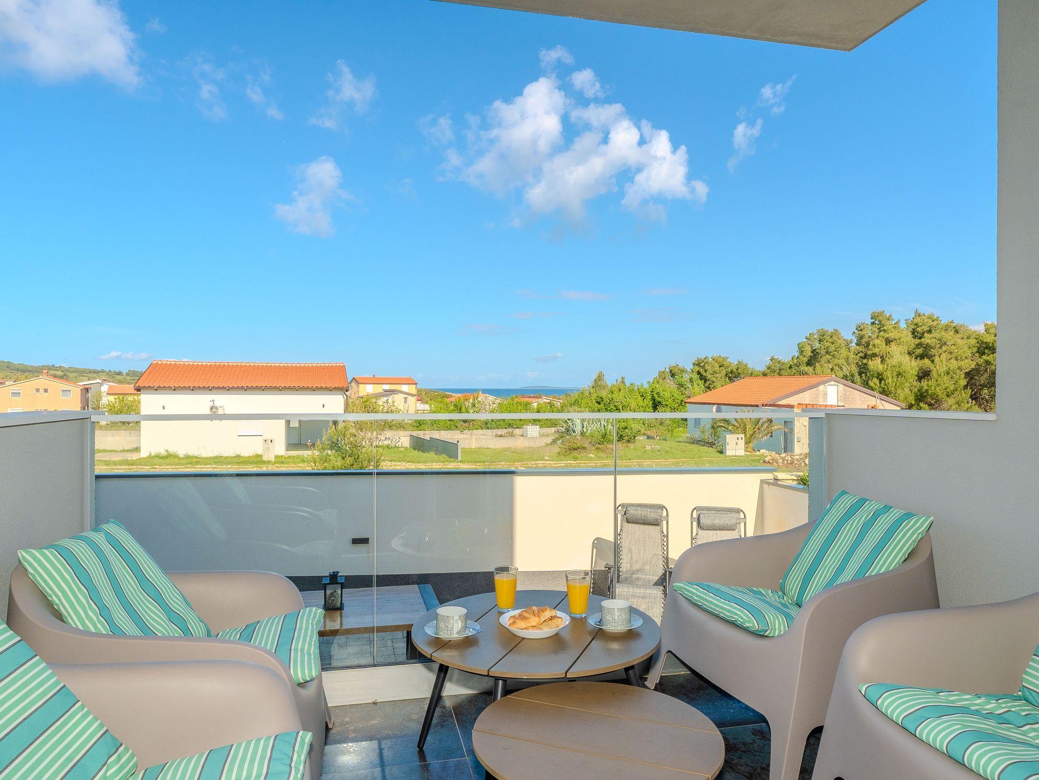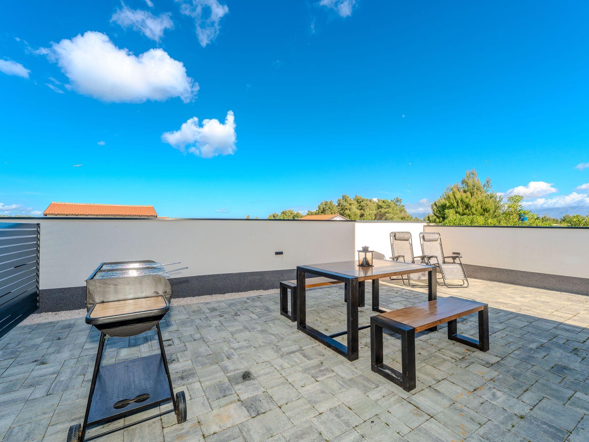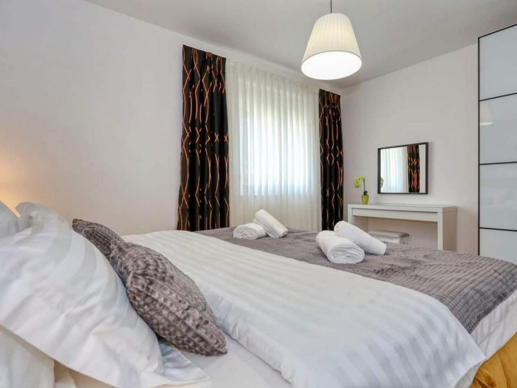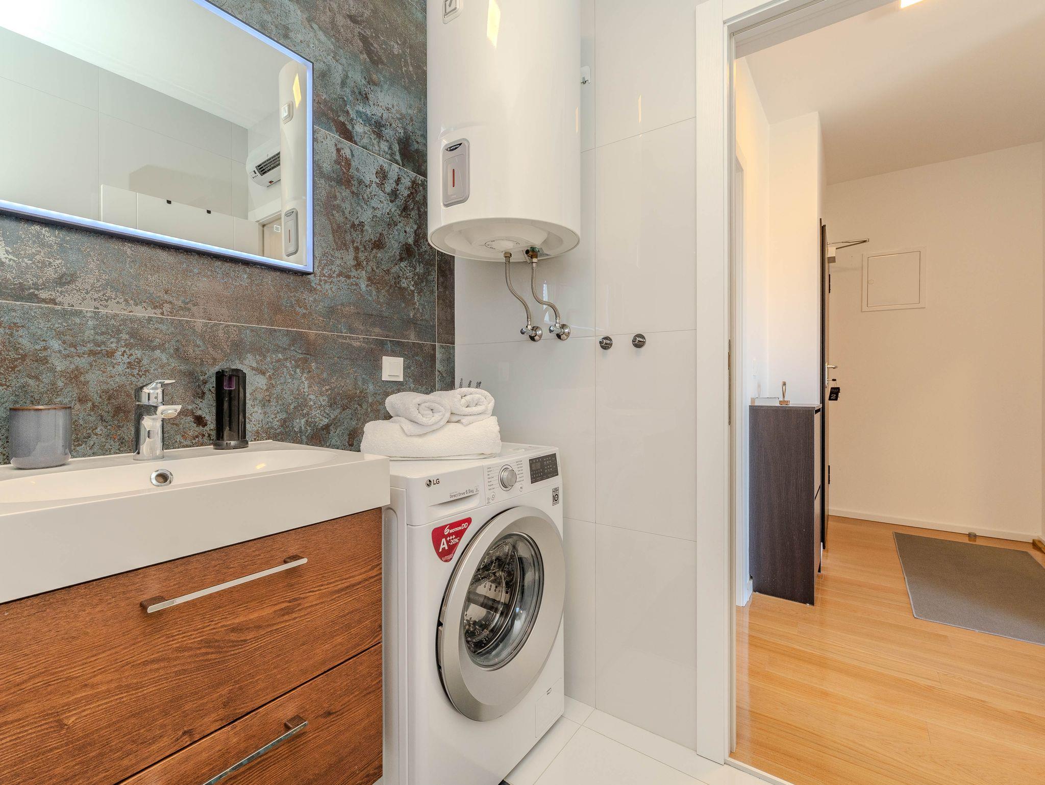 Ferienwohnung bietet Platz für 4 Gäste. Die Betten sind in Schlafzimmern, die es 1 gibt, und in Wohnzimmer, innerhalb einer Gesamtfläche von 43m2, angeordnet. Die Gäste haben eine eigene Terrasse zur Verfügung, auf der sie in warmen Sommernächten genießen können. Das Apartment bietet Meerblick. Es ist erlaubt, Speisen auf dem Gemeinschafts-Grill vorzubereiten. IM PREIS INBEGRIFFEN: Kurtaxe, Endreinigung, Klimatisierung, Parkplatz, Internet, Kinderbett, Bügeleisen, Bügelbrett, Föhn, tragbarer Grill. VERBINDLICHE ZUSÄTZLICHE KOSTEN: Aufzahlung für Kurzaufenthalte (prozentualer Zuschlag pro Nächtigungsanzahl: 30% - 1, 20% - 2, 10% - 3). Die Verfügbarkeit zusätzlicher Dienstleistungen in Ihrem reservierten Termin und die Preise derselben (falls nicht aufgeführt) müssen im Voraus überprüft werden. Zusätzliche Dienstleistungen die in der Zahlungsaufforderung nicht aufgeführt sind werden direkt beim Vermieter bezahlt, angenommen der Gast nutzt auch diese.
