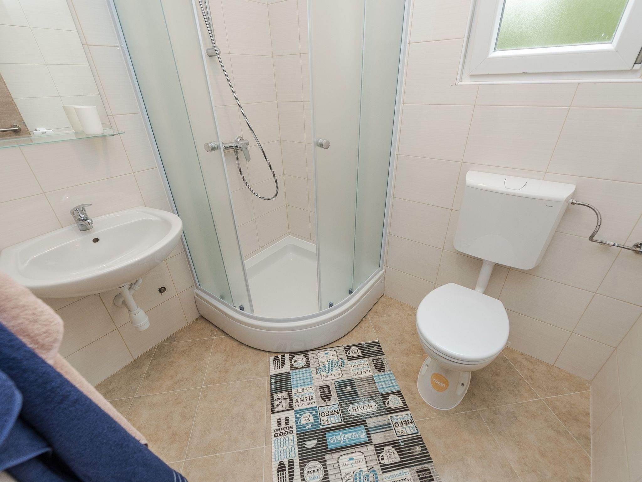 Ferienwohnung bietet Platz für 4 Gäste. Die Betten sind in Schlafzimmern, die es 2 gibt, und in Wohnzimmer, innerhalb einer Gesamtfläche von 35m2, angeordnet. Die Gäste haben einen eigenen Balkon zur Verfügung, auf der sie in warmen Sommernächten genießen können. Es ist erlaubt, Speisen auf dem Gemeinschafts-Grill vorzubereiten. IM PREIS INBEGRIFFEN: Kurtaxe, Endreinigung, Klimatisierung, Parkplatz, Internet, Kinderbett, Föhn. VERBINDLICHE ZUSÄTZLICHE KOSTEN: Aufzahlung für Kurzaufenthalte (prozentualer Zuschlag pro Nächtigungsanzahl: 30% - 1, 20% - 2, 10% - 3). Die Verfügbarkeit zusätzlicher Dienstleistungen in Ihrem reservierten Termin und die Preise derselben (falls nicht aufgeführt) müssen im Voraus überprüft werden. Zusätzliche Dienstleistungen die in der Zahlungsaufforderung nicht aufgeführt sind werden direkt beim Vermieter bezahlt, angenommen der Gast nutzt auch diese.