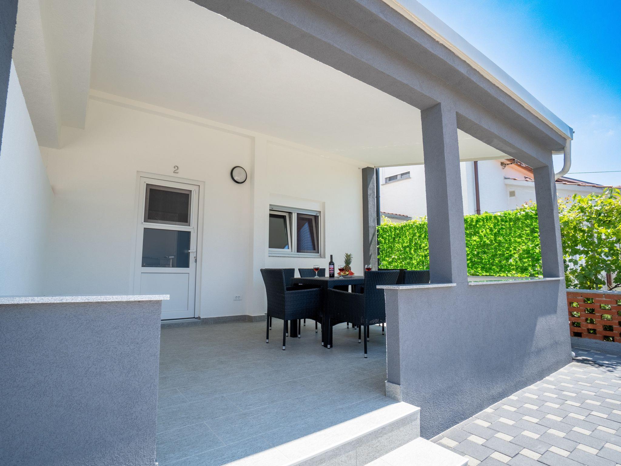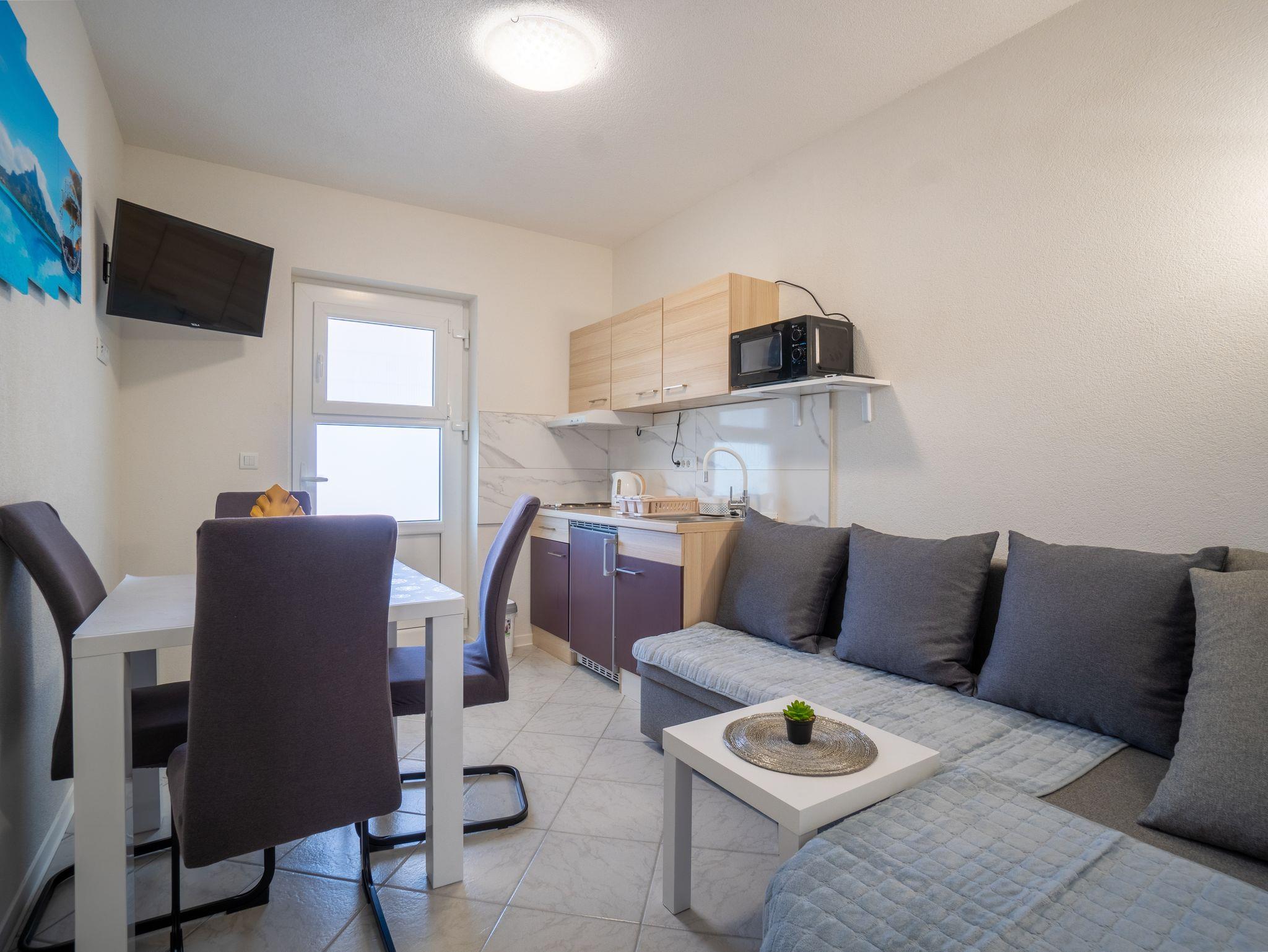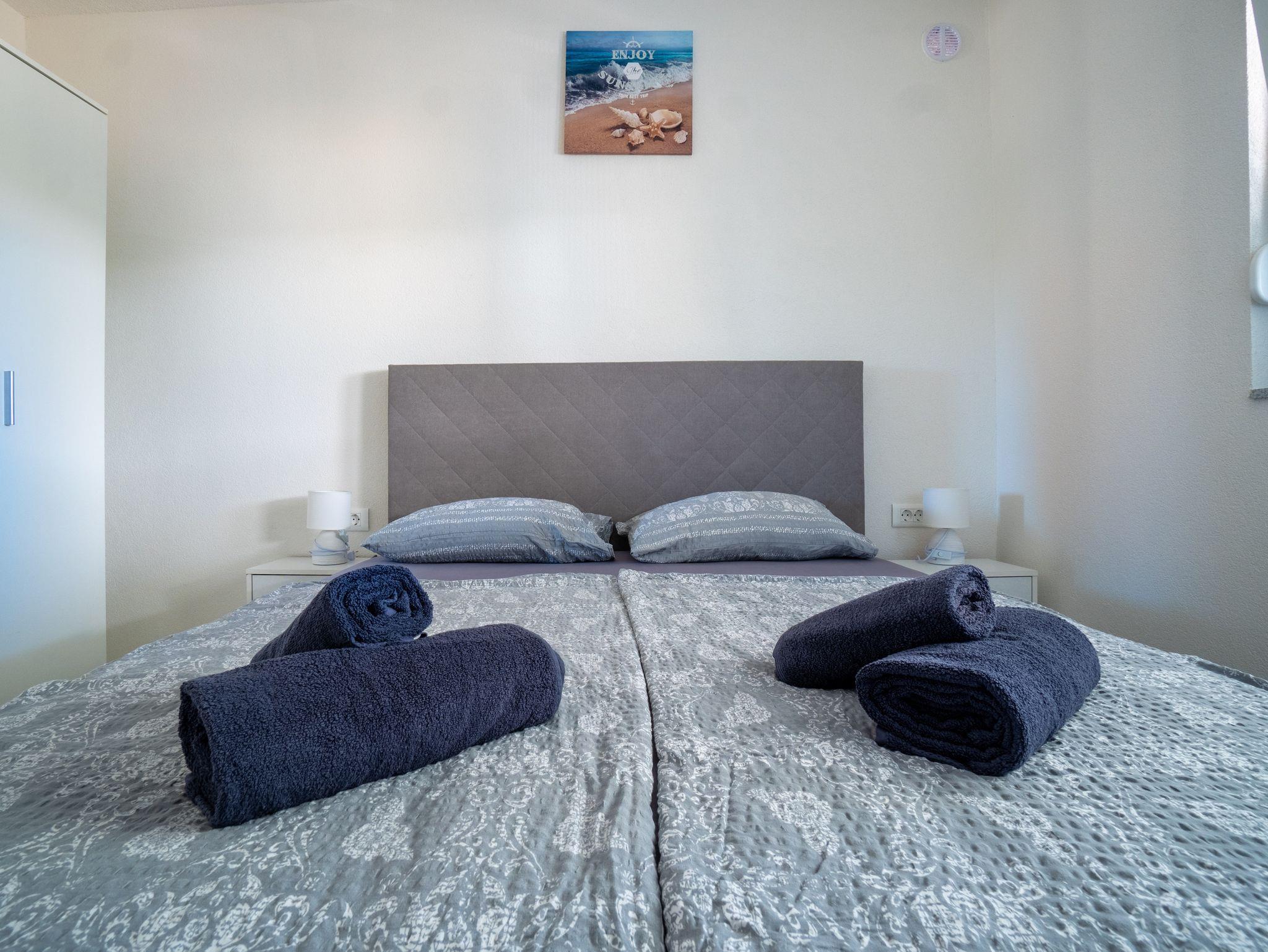 Ferienwohnung bietet Platz für 5 Gäste. Die Betten sind in Schlafzimmern, die es 2 gibt, und in Wohnzimmer, innerhalb einer Gesamtfläche von 37m2, angeordnet. Die Gäste haben eine eigene Terrasse zur Verfügung, auf der sie in warmen Sommernächten genießen können. Es ist erlaubt, Speisen auf dem Gemeinschafts-Grill vorzubereiten. IM PREIS INBEGRIFFEN: Kurtaxe, Endreinigung, Klimatisierung, Parkplatz, Internet, Kinderbett, Föhn. VERBINDLICHE ZUSÄTZLICHE KOSTEN: Aufzahlung für Kurzaufenthalte (prozentualer Zuschlag pro Nächtigungsanzahl: 30% - 1, 20% - 2, 10% - 3). Die Verfügbarkeit zusätzlicher Dienstleistungen in Ihrem reservierten Termin und die Preise derselben (falls nicht aufgeführt) müssen im Voraus überprüft werden. Zusätzliche Dienstleistungen die in der Zahlungsaufforderung nicht aufgeführt sind werden direkt beim Vermieter bezahlt, angenommen der Gast nutzt auch diese.