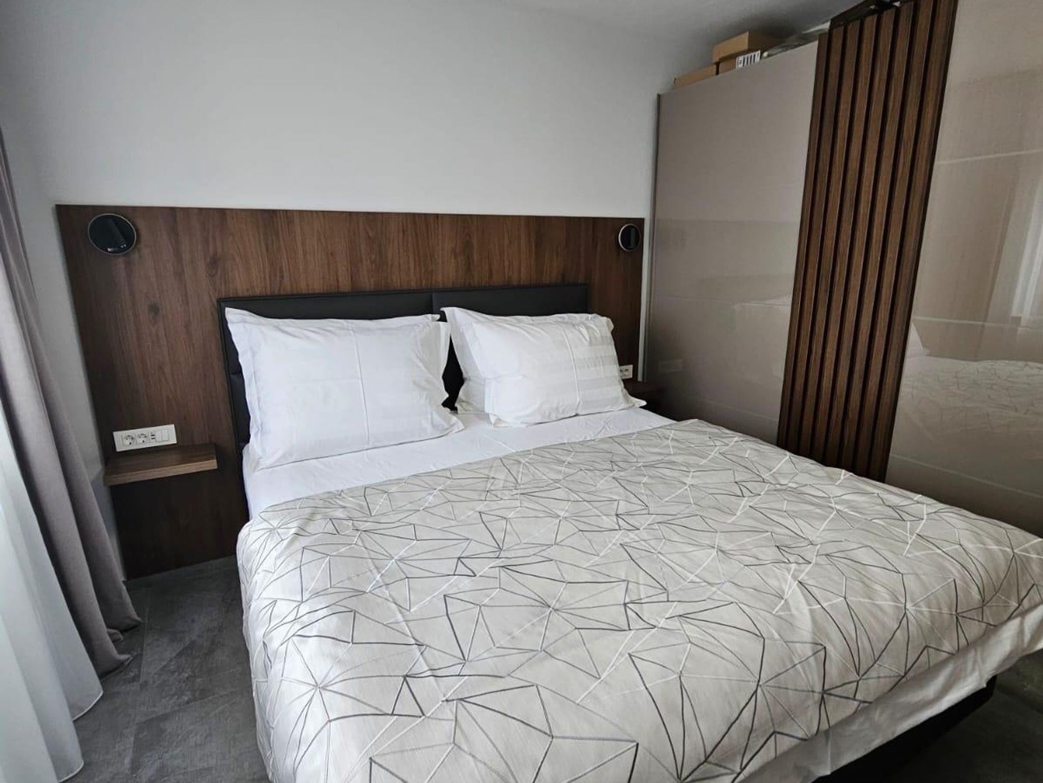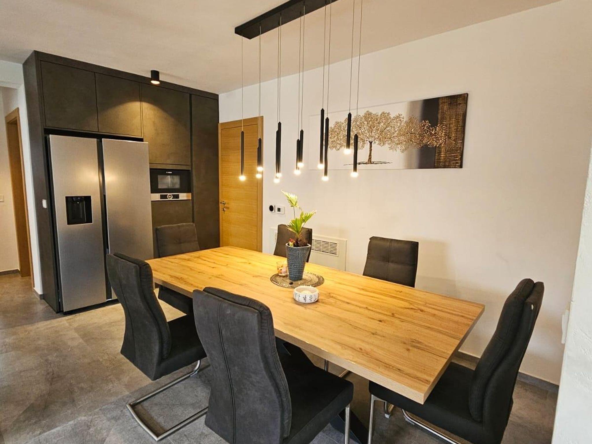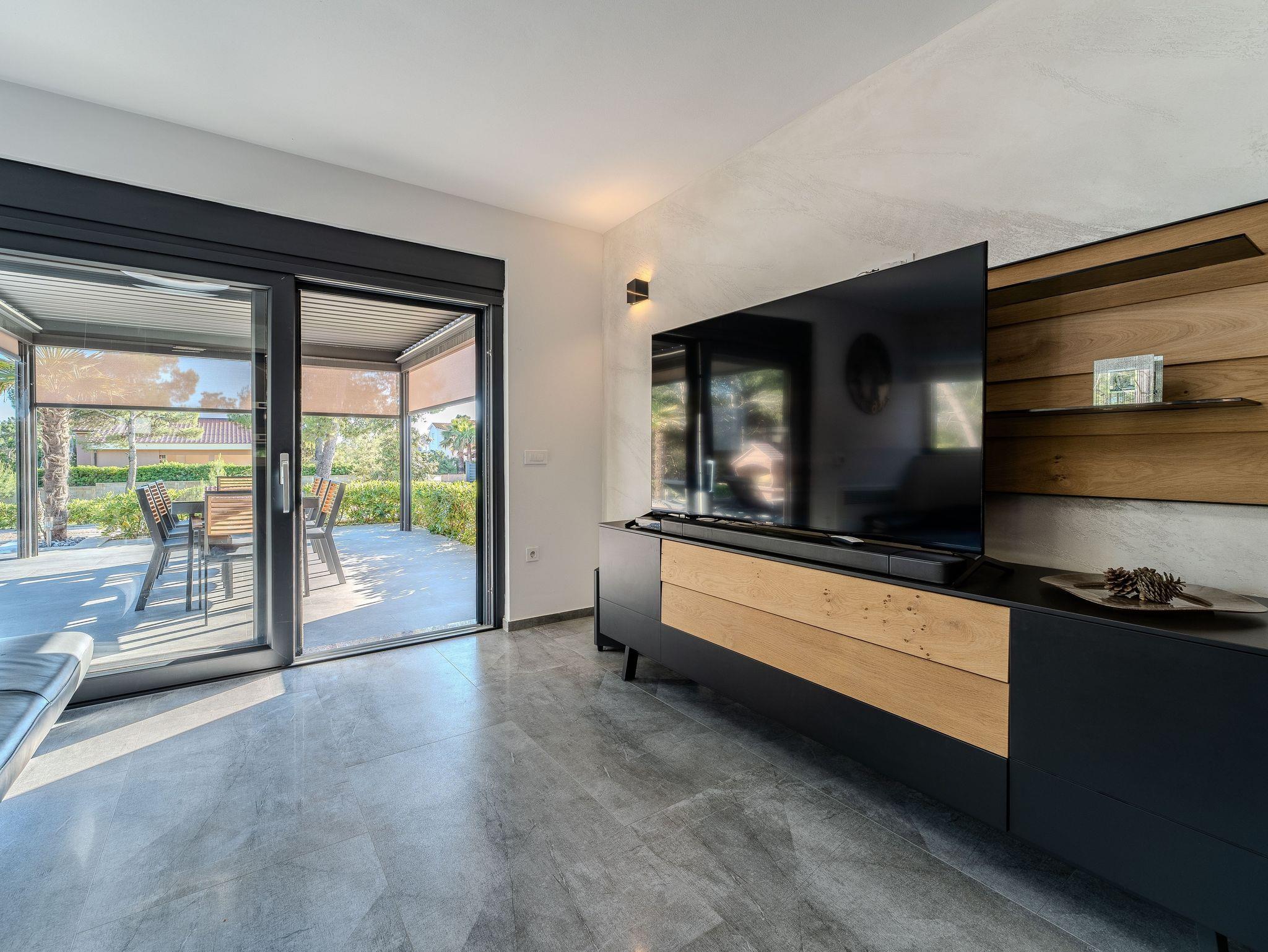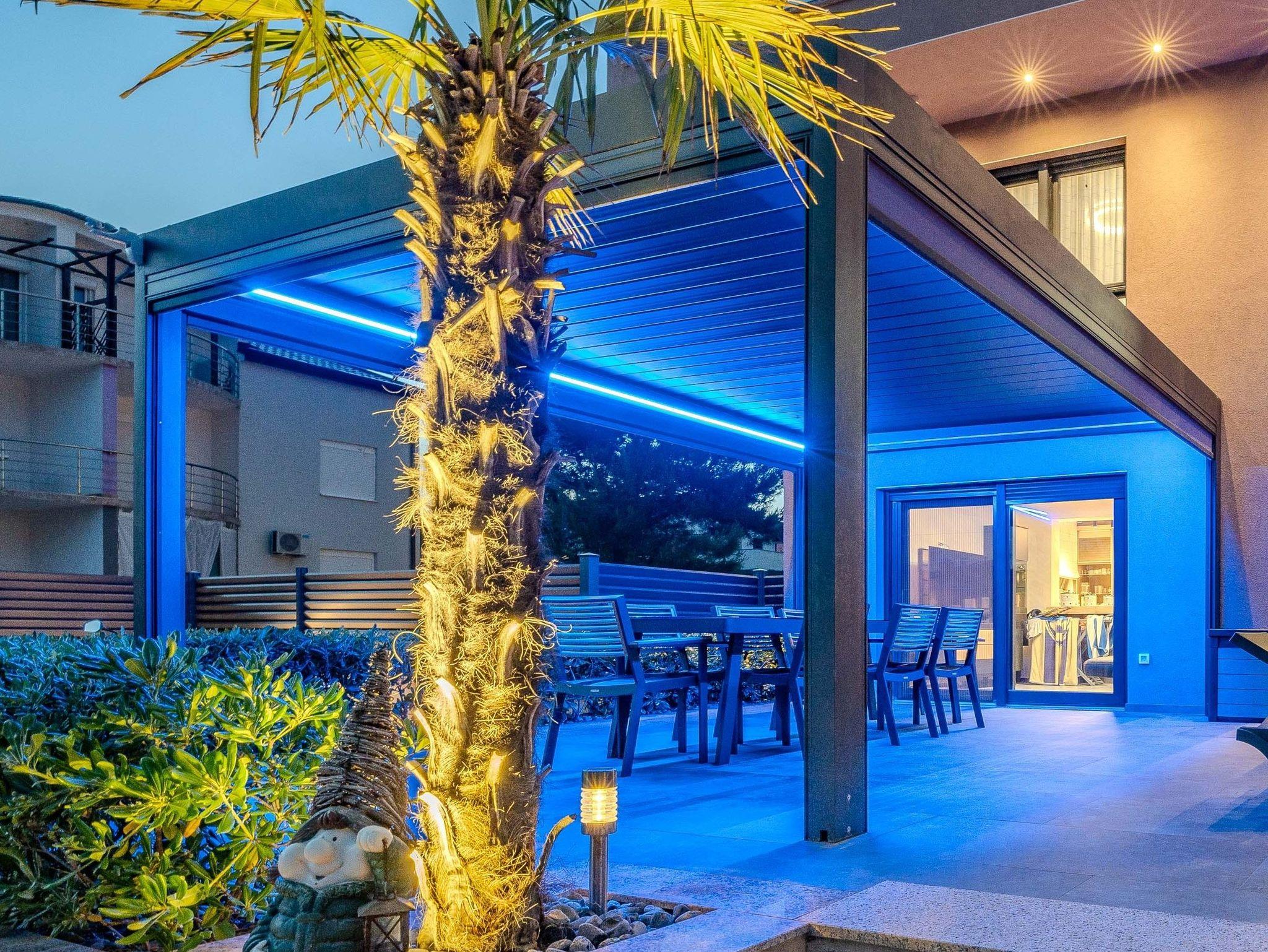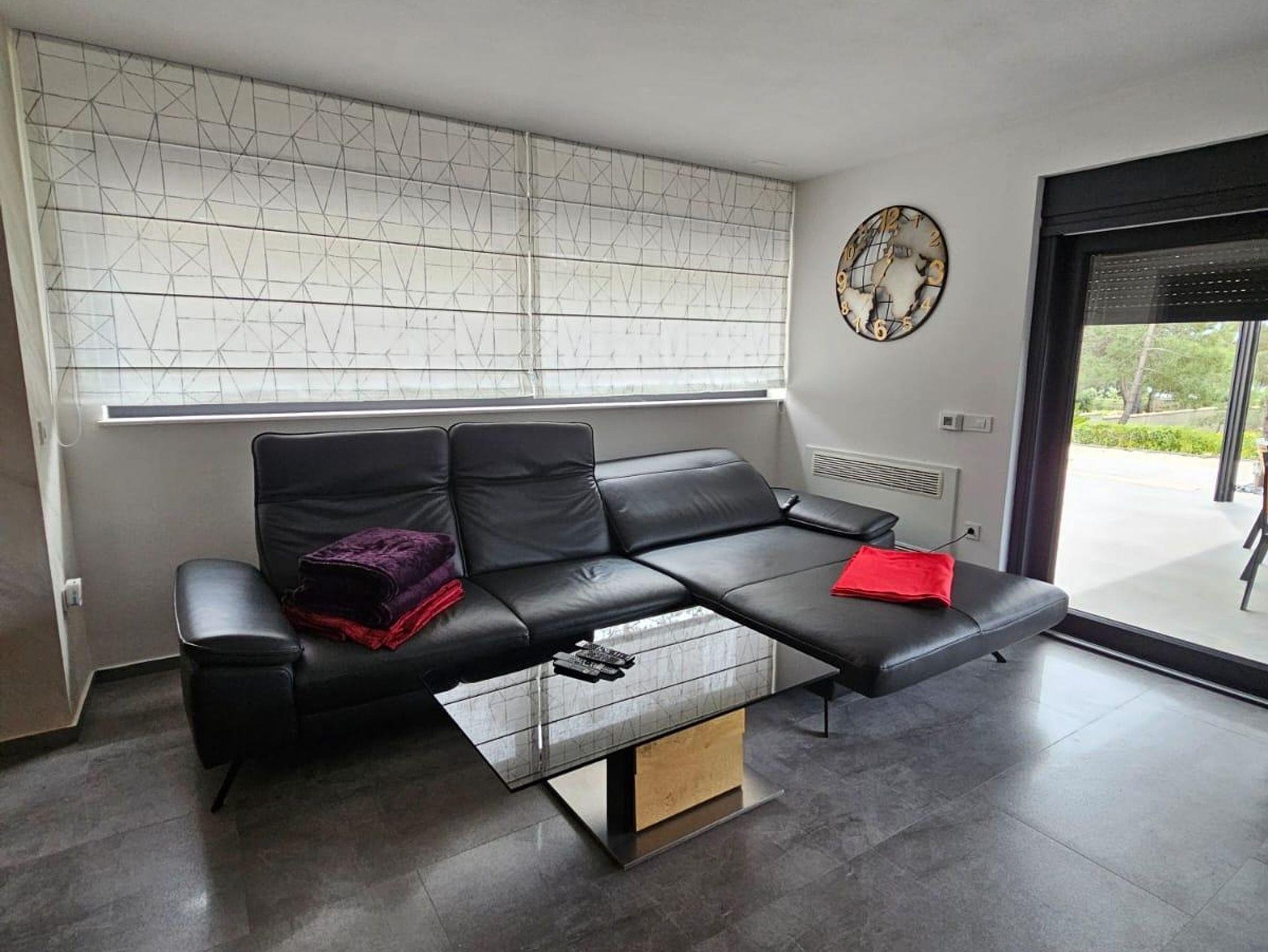 Ferienwohnung bietet Platz für 8 Gäste. Die Betten sind in Schlafzimmern, die es 3 gibt, und in Wohnzimmer, innerhalb einer Gesamtfläche von 79m2, angeordnet. Die Gäste haben eine eigene Terrasse zur Verfügung, auf der sie in warmen Sommernächten genießen können. Es ist erlaubt, Speisen auf dem Gemeinschafts-Grill vorzubereiten. Während ihres Aufenthalts können Gäste das gemeinsam zur Nutzung stehende Schwimmbad benutzen. IM PREIS INBEGRIFFEN: Kurtaxe, Endreinigung, Klimatisierung, Pool, Parkplatz, Internet, Fahrrad, Kinderbett, Föhn. VERBINDLICHE ZUSÄTZLICHE KOSTEN: Aufzahlung für Kurzaufenthalte (prozentualer Zuschlag pro Nächtigungsanzahl: 30% - 1, 20% - 2, 10% - 3). Die Verfügbarkeit zusätzlicher Dienstleistungen in Ihrem reservierten Termin und die Preise derselben (falls nicht aufgeführt) müssen im Voraus überprüft werden. Zusätzliche Dienstleistungen die in der Zahlungsaufforderung nicht aufgeführt sind werden direkt beim Vermieter bezahlt, angenommen der Gast nutzt auch diese.