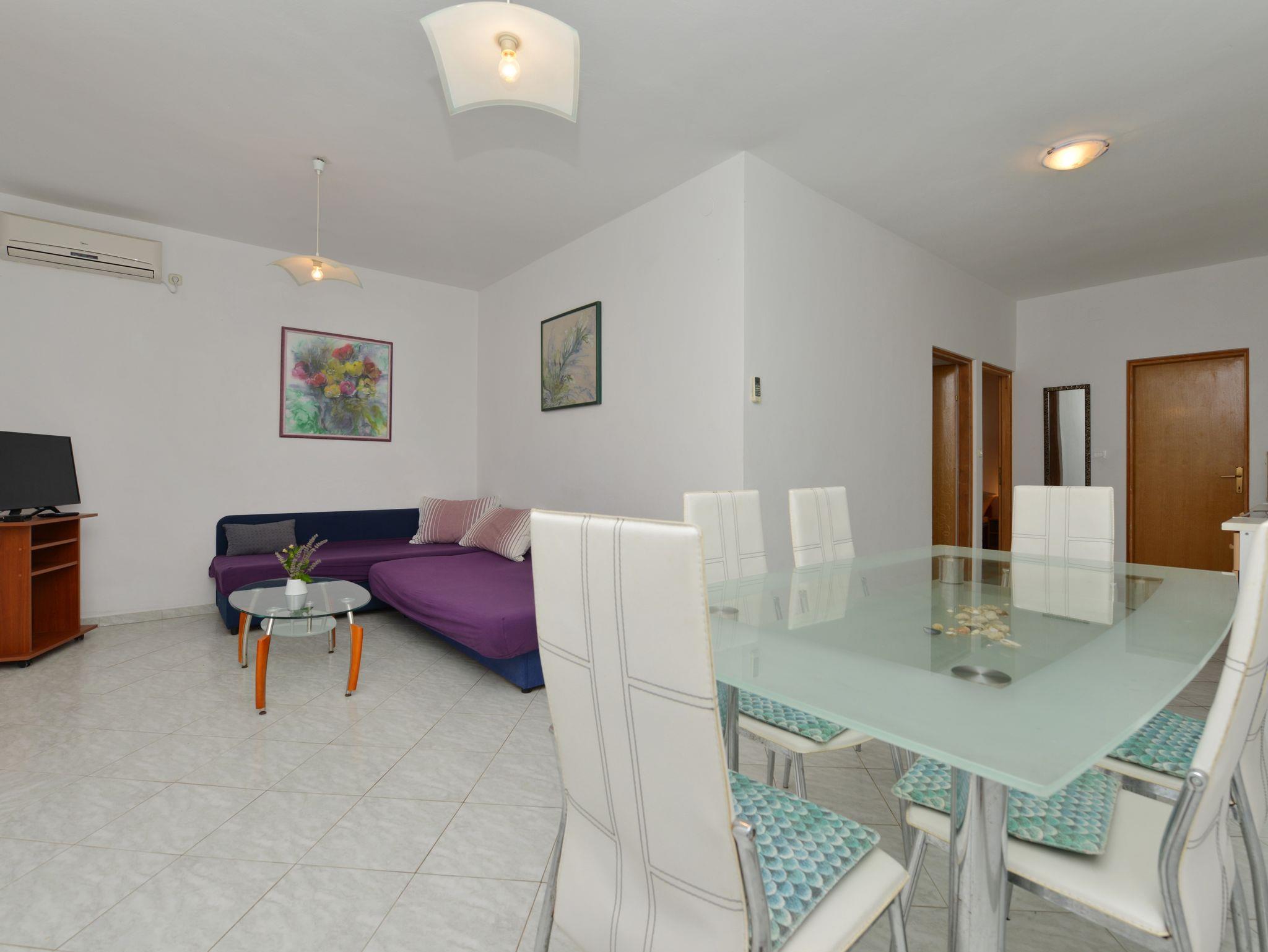 Ferienwohnung bietet Platz für 5 Gäste. Die Betten sind in Schlafzimmern, die es 2 gibt, und in Wohnzimmer, innerhalb einer Gesamtfläche von 55m2, angeordnet. Die Gäste haben eine eigene Terrasse zur Verfügung, auf der sie in warmen Sommernächten genießen können. Das Apartment bietet Meerblick. Es ist erlaubt, Speisen auf dem Gemeinschafts-Grill vorzubereiten. IM PREIS INBEGRIFFEN: Kurtaxe, Endreinigung, Klimatisierung, Parkplatz, Internet, Bügeleisen, Bügelbrett, Föhn. Die Verfügbarkeit zusätzlicher Dienstleistungen in Ihrem reservierten Termin und die Preise derselben (falls nicht aufgeführt) müssen im Voraus überprüft werden. Zusätzliche Dienstleistungen die in der Zahlungsaufforderung nicht aufgeführt sind werden direkt beim Vermieter bezahlt, angenommen der Gast nutzt auch diese. Ermäßigung auf den Grundpreis: Gratistag 14=13 (bei einem Aufenthalt von 14 Tagen oder mehr erhalten Sie einen Gratistag für den Aufenthalt bis 31.12.26).