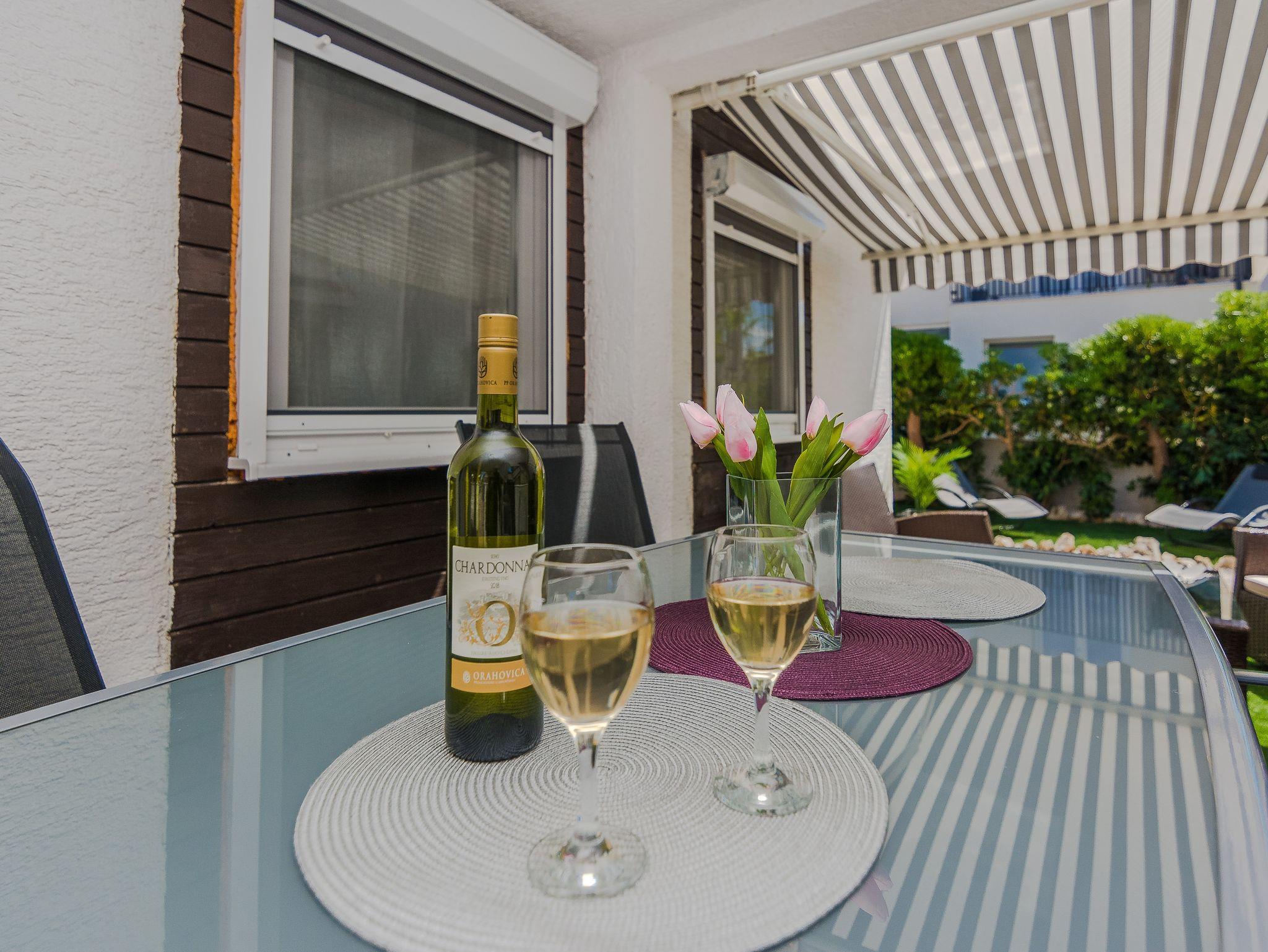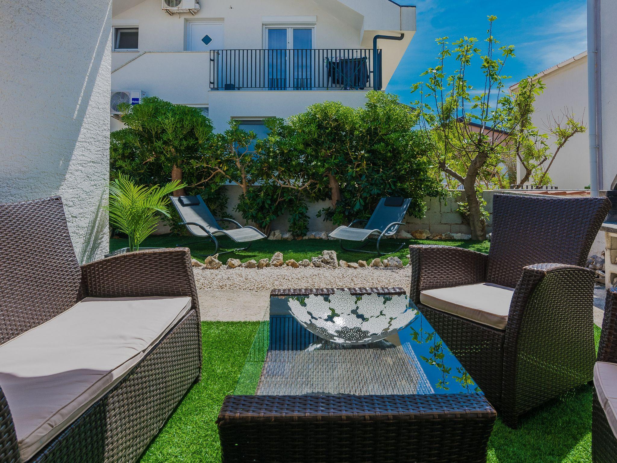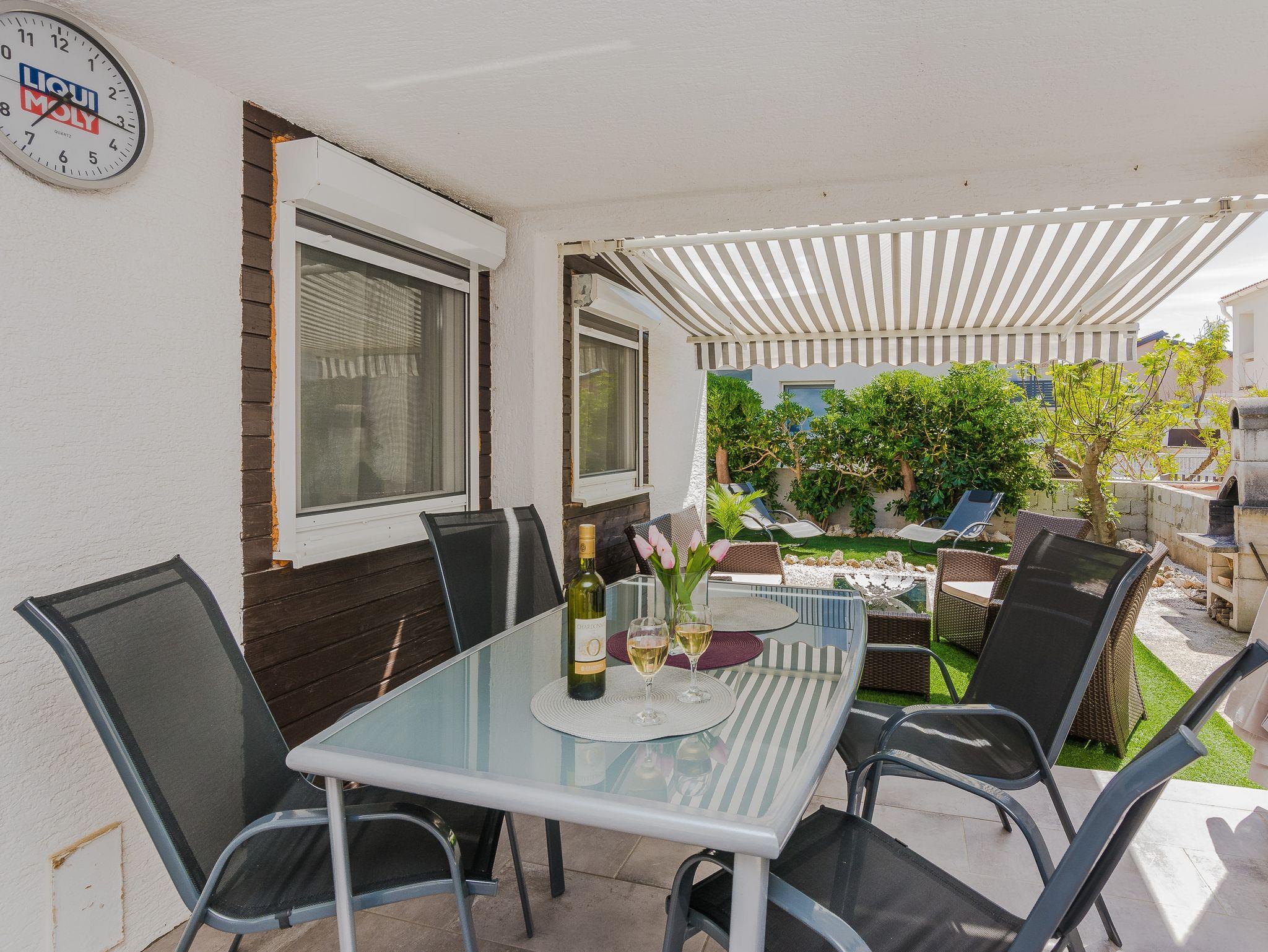 Ferienwohnung bietet Platz für 5 Gäste. Die Betten sind in Schlafzimmern, die es 2 gibt, innerhalb einer Gesamtfläche von 46m2, angeordnet. Die Gäste haben eine eigene Terrasse zur Verfügung, auf der sie in warmen Sommernächten genießen können. Für vollen Genuss und Entspannung gibt es einen privaten Grill für Gäste dieser Unterkunft. IM PREIS INBEGRIFFEN: Kurtaxe, Endreinigung, Klimatisierung, Parkplatz, Internet, Föhn. VERBINDLICHE ZUSÄTZLICHE KOSTEN: Aufzahlung für Kurzaufenthalte (prozentualer Zuschlag pro Nächtigungsanzahl: 30% - 1, 20% - 2, 10% - 3). Die Verfügbarkeit zusätzlicher Dienstleistungen in Ihrem reservierten Termin und die Preise derselben (falls nicht aufgeführt) müssen im Voraus überprüft werden. Zusätzliche Dienstleistungen die in der Zahlungsaufforderung nicht aufgeführt sind werden direkt beim Vermieter bezahlt, angenommen der Gast nutzt auch diese.