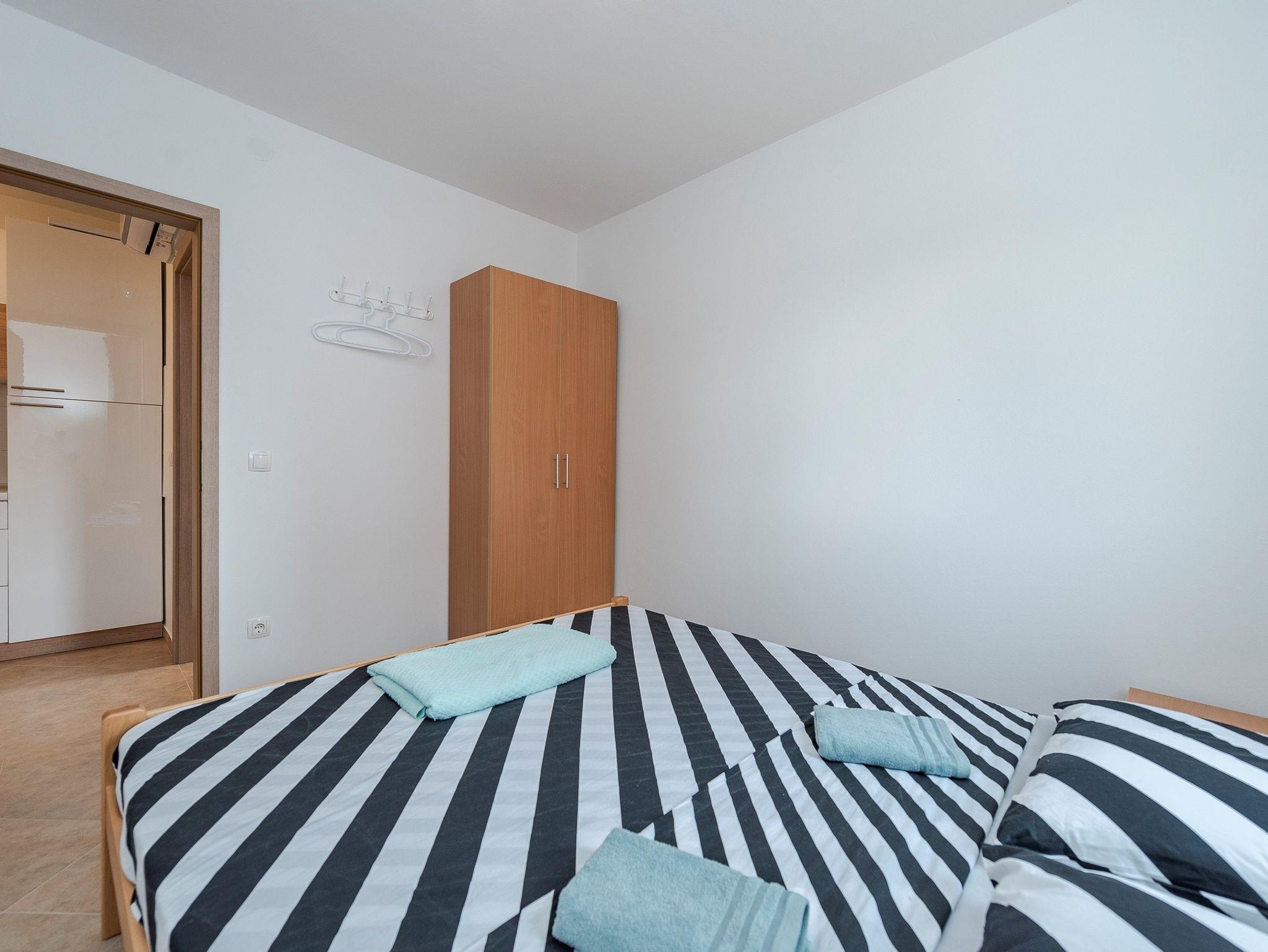 Ferienwohnung bietet Platz für 4 Gäste. Die Betten sind in Schlafzimmern, die es 2 gibt, und in Wohnzimmer, innerhalb einer Gesamtfläche von 35m2, angeordnet. Die Gäste haben einen eigenen Balkon zur Verfügung, auf der sie in warmen Sommernächten genießen können. Es ist erlaubt, Speisen auf dem Gemeinschafts-Grill vorzubereiten. IM PREIS INBEGRIFFEN: Kurtaxe, Endreinigung, Klimatisierung, Parkplatz, Internet, Kinderbett, Föhn. VERBINDLICHE ZUSÄTZLICHE KOSTEN: Aufzahlung für Kurzaufenthalte (prozentualer Zuschlag pro Nächtigungsanzahl: 30% - 1, 20% - 2, 10% - 3). Die Verfügbarkeit zusätzlicher Dienstleistungen in Ihrem reservierten Termin und die Preise derselben (falls nicht aufgeführt) müssen im Voraus überprüft werden. Zusätzliche Dienstleistungen die in der Zahlungsaufforderung nicht aufgeführt sind werden direkt beim Vermieter bezahlt, angenommen der Gast nutzt auch diese.