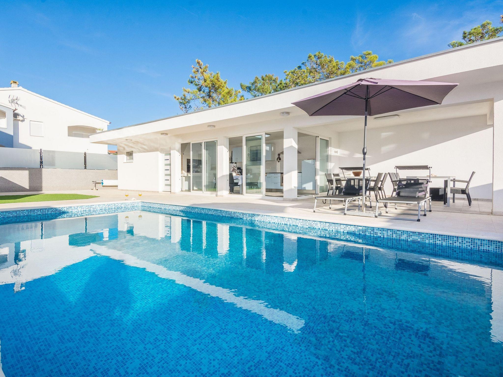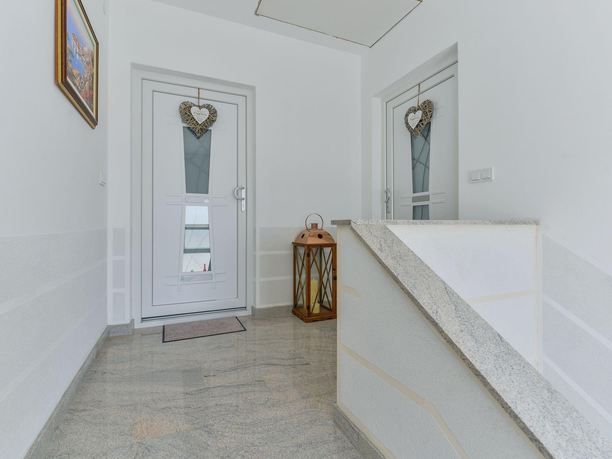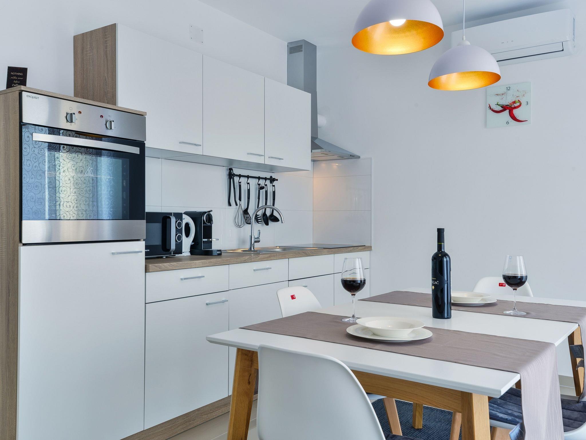 Ferienwohnung bietet Platz für 4 Gäste. Die Betten sind in Schlafzimmern, die es 1 gibt, und in Wohnzimmer, innerhalb einer Gesamtfläche von 60m2, angeordnet. Die Gäste haben einen eigenen Balkon zur Verfügung, auf der sie in warmen Sommernächten genießen können. Das Apartment bietet Meerblick. Es ist erlaubt, Speisen auf dem Gemeinschafts-Grill vorzubereiten. Während ihres Aufenthalts können Gäste das gemeinsam zur Nutzung stehende Schwimmbad benutzen. IM PREIS INBEGRIFFEN: Kurtaxe, Endreinigung, Klimatisierung, Pool, Parkplatz, Internet, Kinderbett, Bügeleisen, Bügelbrett, Föhn. VERBINDLICHE ZUSÄTZLICHE KOSTEN: Aufzahlung für Kurzaufenthalte (prozentualer Zuschlag pro Nächtigungsanzahl: 30% - 1, 20% - 2, 10% - 3). Die Verfügbarkeit zusätzlicher Dienstleistungen in Ihrem reservierten Termin und die Preise derselben (falls nicht aufgeführt) müssen im Voraus überprüft werden. Zusätzliche Dienstleistungen die in der Zahlungsaufforderung nicht aufgeführt sind werden direkt beim Vermieter bezahlt, angenommen der Gast nutzt auch diese.