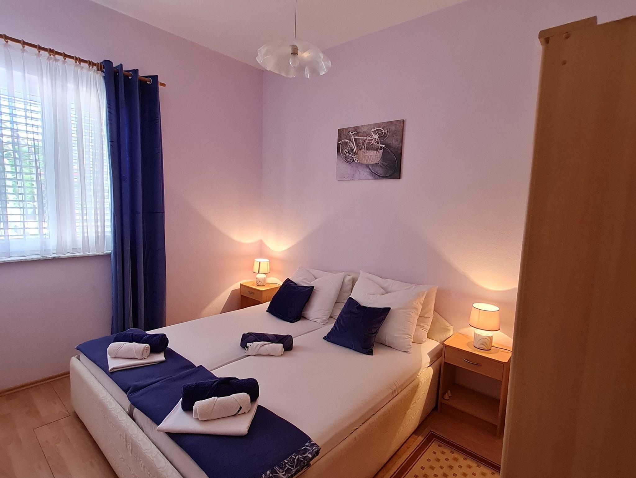 Ferienwohnung bietet Platz für 4 Gäste. Die Betten sind in Schlafzimmern, die es 1 gibt, und in Wohnzimmer, innerhalb einer Gesamtfläche von 27m2, angeordnet. Die Gäste haben eine eigene Terrasse zur Verfügung, auf der sie in warmen Sommernächten genießen können. Es ist erlaubt, Speisen auf dem Gemeinschafts-Grill vorzubereiten. IM PREIS INBEGRIFFEN: Kurtaxe, Endreinigung, Klimatisierung, Parkplatz, Internet, Fahrrad, Kinderbett. VERBINDLICHE ZUSÄTZLICHE KOSTEN: Aufzahlung für Kurzaufenthalte (prozentualer Zuschlag pro Nächtigungsanzahl: 30% - 1, 20% - 2, 10% - 3). UNVERBINDLICHE ZUSÄTZLICHE KOSTEN: Wäschewaschen (5,00 € Waschen), Zusatzbett (5,00 € pro Nacht). Die Verfügbarkeit zusätzlicher Dienstleistungen in Ihrem reservierten Termin und die Preise derselben (falls nicht aufgeführt) müssen im Voraus überprüft werden. Zusätzliche Dienstleistungen die in der Zahlungsaufforderung nicht aufgeführt sind werden direkt beim Vermieter bezahlt, angenommen der Gast nutzt auch diese.