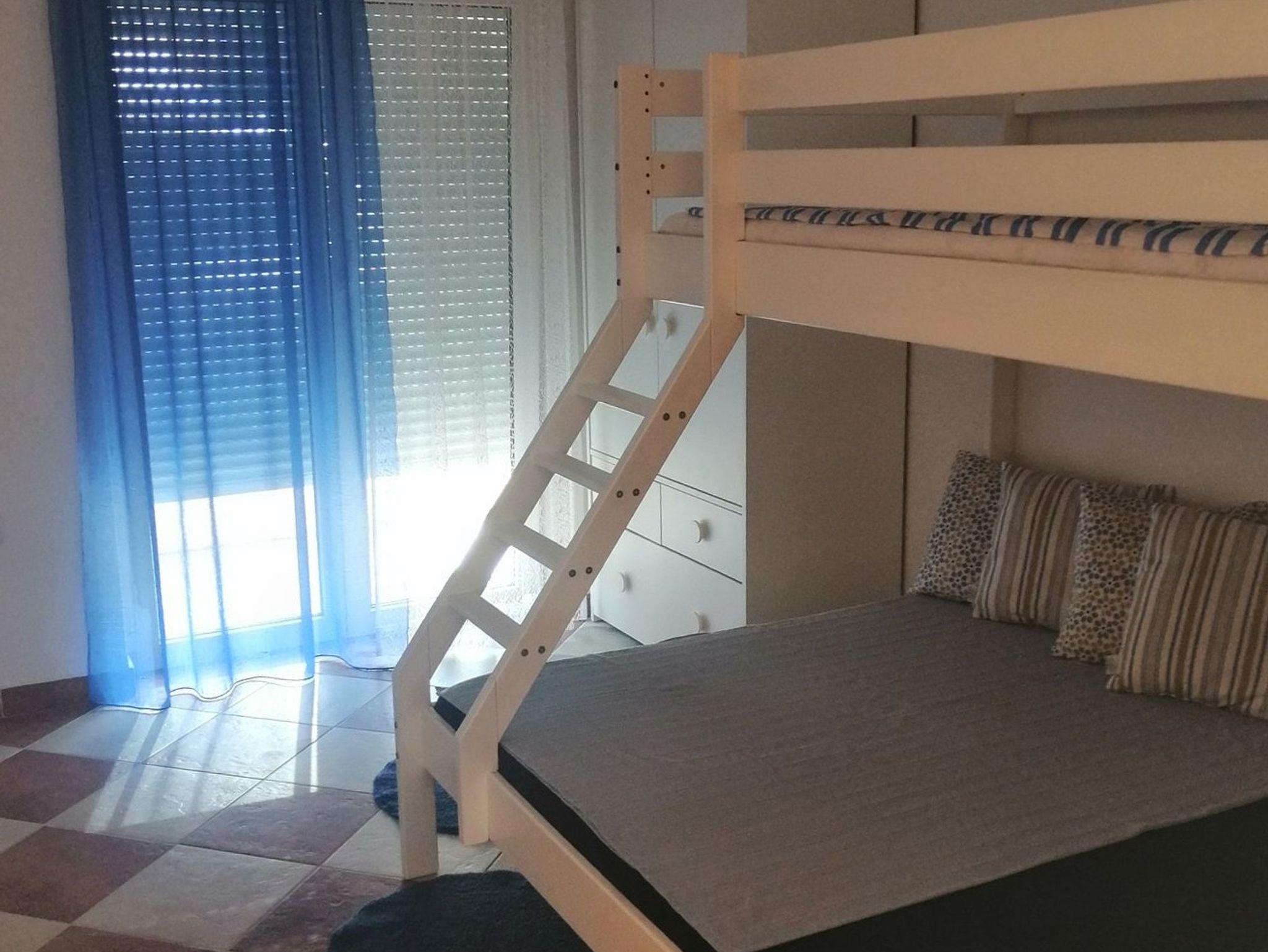 Ferienwohnung bietet Platz für 5 Gäste. Die Betten sind in Schlafzimmern, die es 2 gibt, innerhalb einer Gesamtfläche von 41m2, angeordnet. Die Gäste haben einen eigenen Balkon zur Verfügung, auf der sie in warmen Sommernächten genießen können. Es ist erlaubt, Speisen auf dem Gemeinschafts-Grill vorzubereiten. In der Unterkunftseinheit besteht die Möglichkeit des Mitbringens von Haustieren gegen Aufpreis. IM PREIS INBEGRIFFEN: Kurtaxe, Endreinigung, Klimatisierung, Parkplatz, Internet, Kinderbett, Föhn, tragbarer Grill. VERBINDLICHE ZUSÄTZLICHE KOSTEN: Aufzahlung für Kurzaufenthalte (prozentualer Zuschlag pro Nächtigungsanzahl: 30% - 1, 20% - 2, 10% - 3). UNVERBINDLICHE ZUSÄTZLICHE KOSTEN: Haustiere (5,00 € pro Nacht). Die Verfügbarkeit zusätzlicher Dienstleistungen in Ihrem reservierten Termin und die Preise derselben (falls nicht aufgeführt) müssen im Voraus überprüft werden. Zusätzliche Dienstleistungen die in der Zahlungsaufforderung nicht aufgeführt sind werden direkt beim Vermieter bezahlt, angenommen der Gast nutzt auch diese.