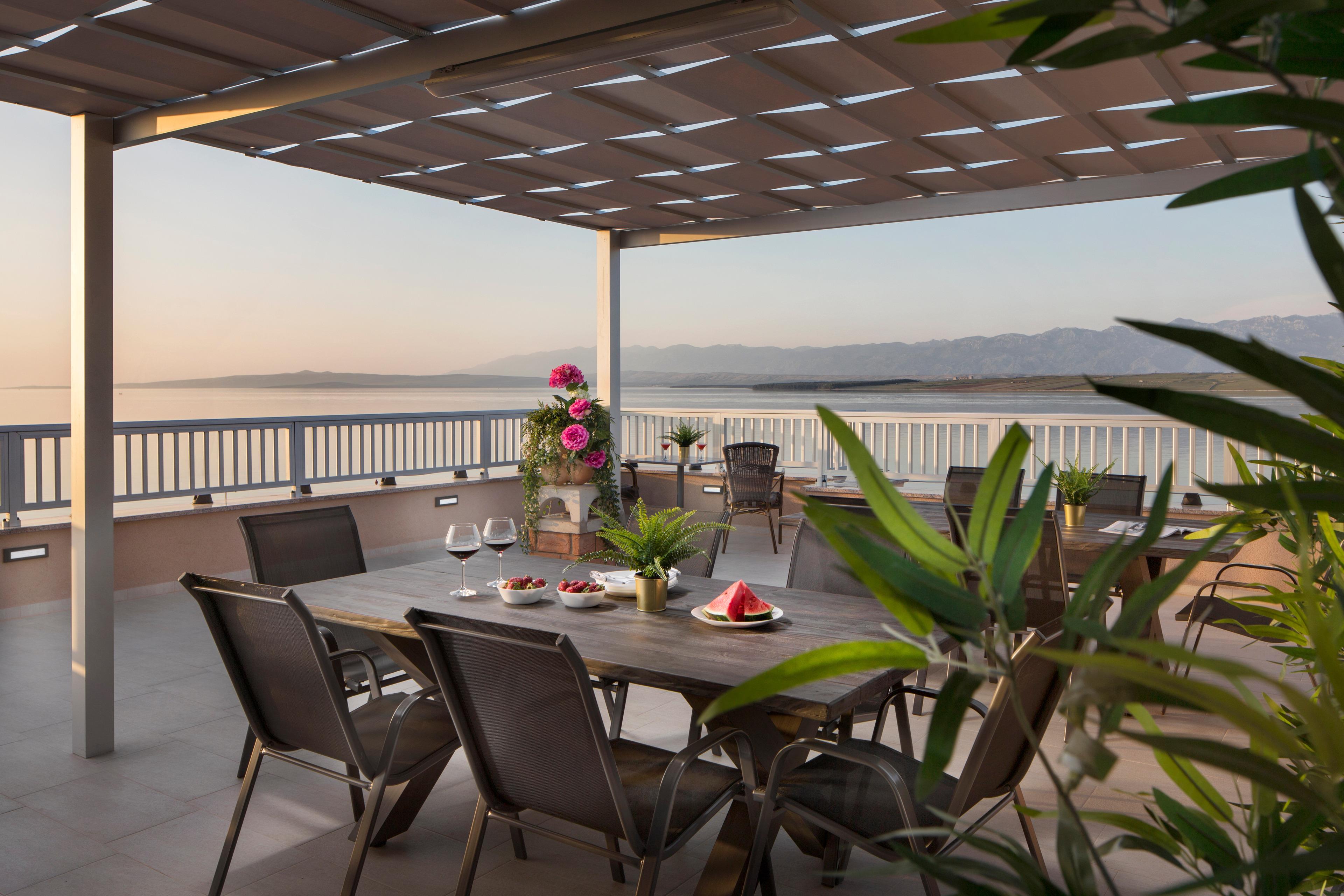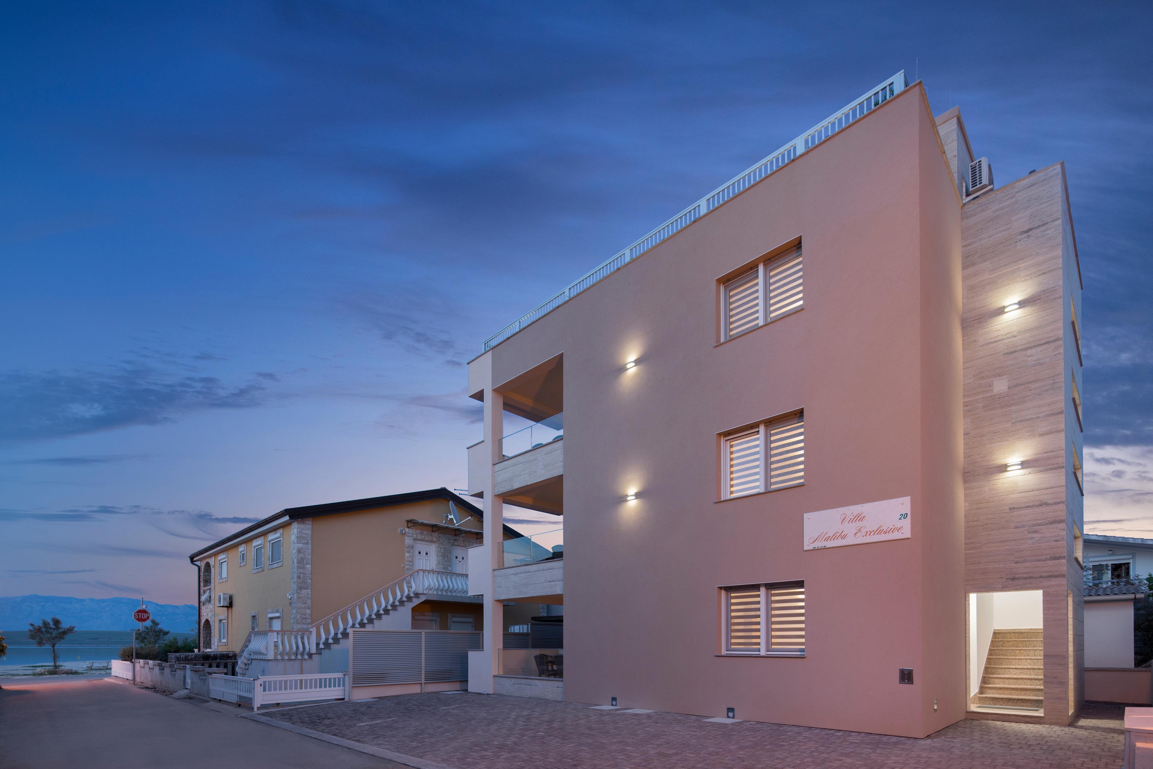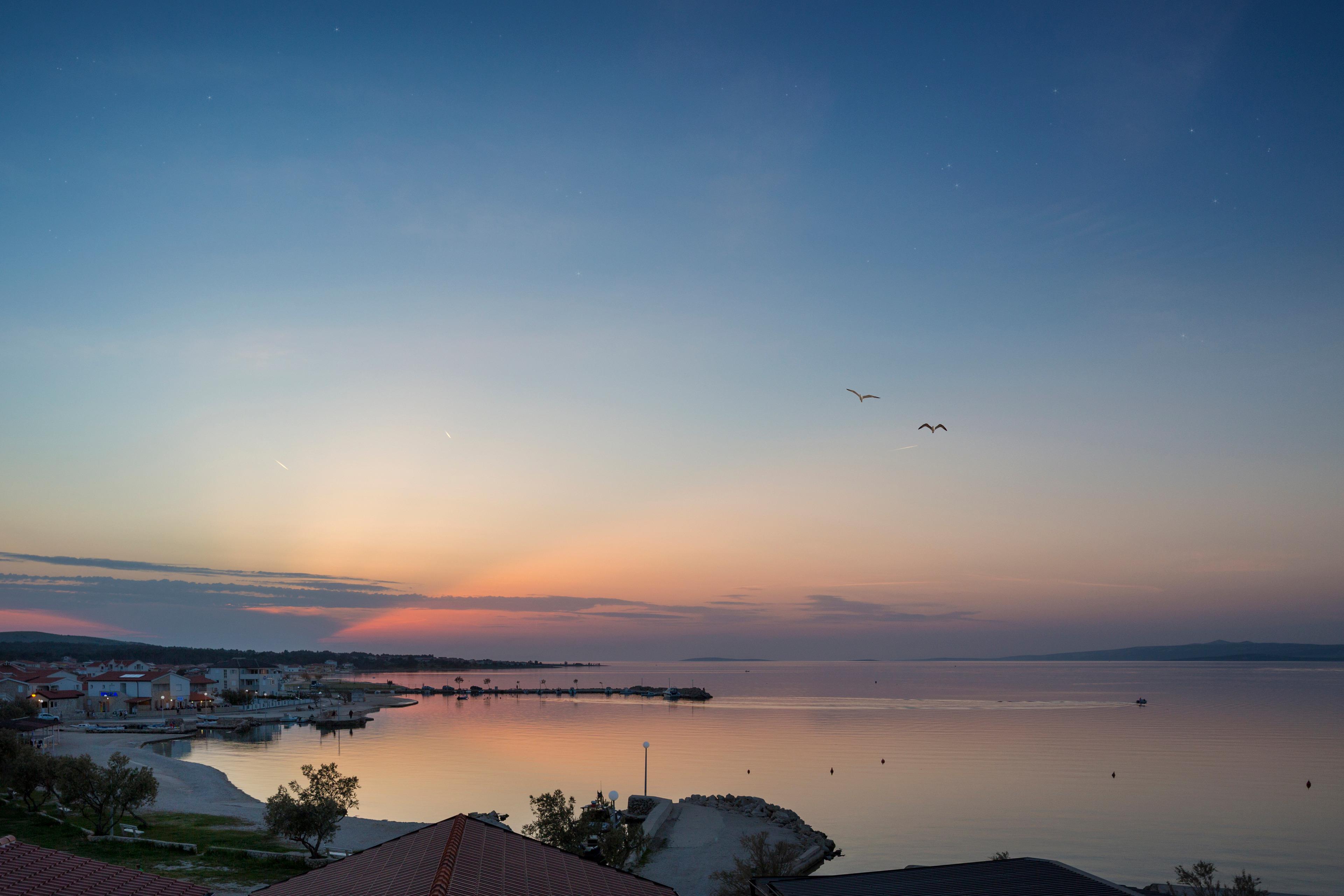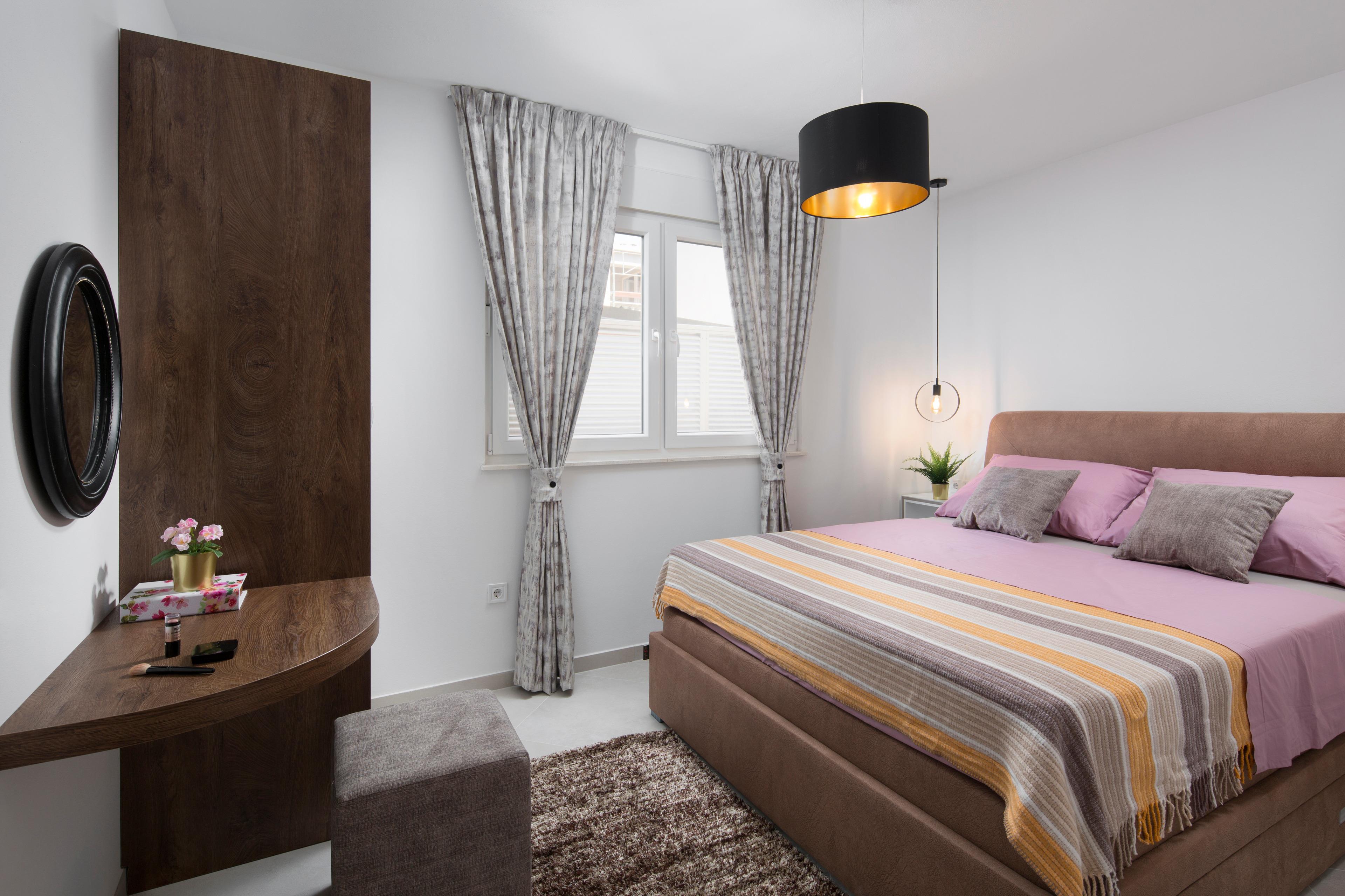 Die 63 m² Ferienunterkunft im Erdgeschoss des Hauses teilt sich auf ein Wohn- /Essbereich mit voll ausgestatteter Küche, zwei Schlafzimmern mit Doppelbett und ein Badezimmer mit Duschkabine. Zur Wohnung gehört eine 9 m² überdachte Terrasse mit Tisch und Stühlen und mit einem teilweisen Meerblick. Zu den weiteren Annehmlichkeiten gehören Waschmaschine, Geschirrspüler, Klimaanlage, Internet per WLAN, Sat-TV, Safe und Parkplatz auf dem Grundstück. Ein gemeinsamer Balkon und Lounge Bereich (85 m²) auf dem Dach des Hauses (3. Stock) mit Grill Pavillon, Sitzgarnitur, Liegestühlen und einem atemberaubenden Meerblick ist ein idealer Ort, um dem Alltag in den abendlichen Sonnenuntergang Atmosphäre zu entkommen. Am nahegelegenen Kiesstrand Lucica mit kristallklarem Meer können Sie Sonnenbaden, Schwimmen und Tauchen. Entlang der Küste erstreckt sich eine 7 km lange Promenade. Für diejenigen, die einen mehr aktiven Ferienurlaub bevorzugen, ist diese Promenade ideal für schnelles Gehen oder Laufen. Shops und Restaurants sind nur wenige Gehminuten entfernt.