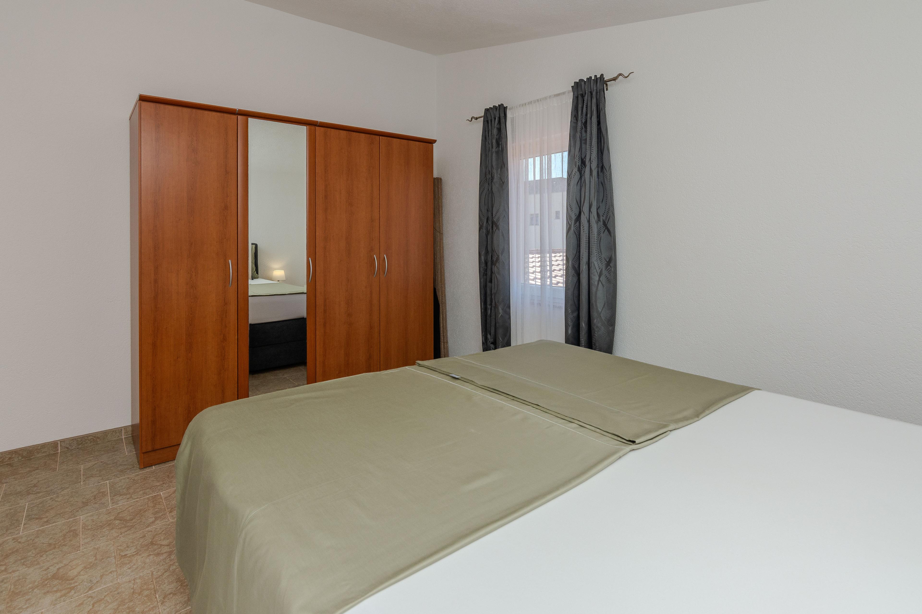 Verfügt über einen herrlichen Blick auf das Meer, Insel Pag und Velebit Gebirge. Die 60m2 Wohnung im ersten Stock des Hauses teilt sich auf eine Küche und Wohnbereich, ein Schlafzimmer mit Doppelbett und ein Badezimmer mit Dusche. Im Wohnzimmer befindet sich ein Schlafsofa für zwei weitere Personen. Zur Wohnung gehören ein 12m 2 Terrasse mit Tisch und Stühlen und der Meerblick. Klimaanlage, Internetzugang per WLAN, Sat-TV, Geschirrspüler und Grill im Innenhof gehören zu den weiteren Annehmlichkeiten. Nur 70m entfernt erwartet Euch den schönen Kieselstrand wo Sie im Schwimmen, Tauchen oder Sonnenbaden genießen können.