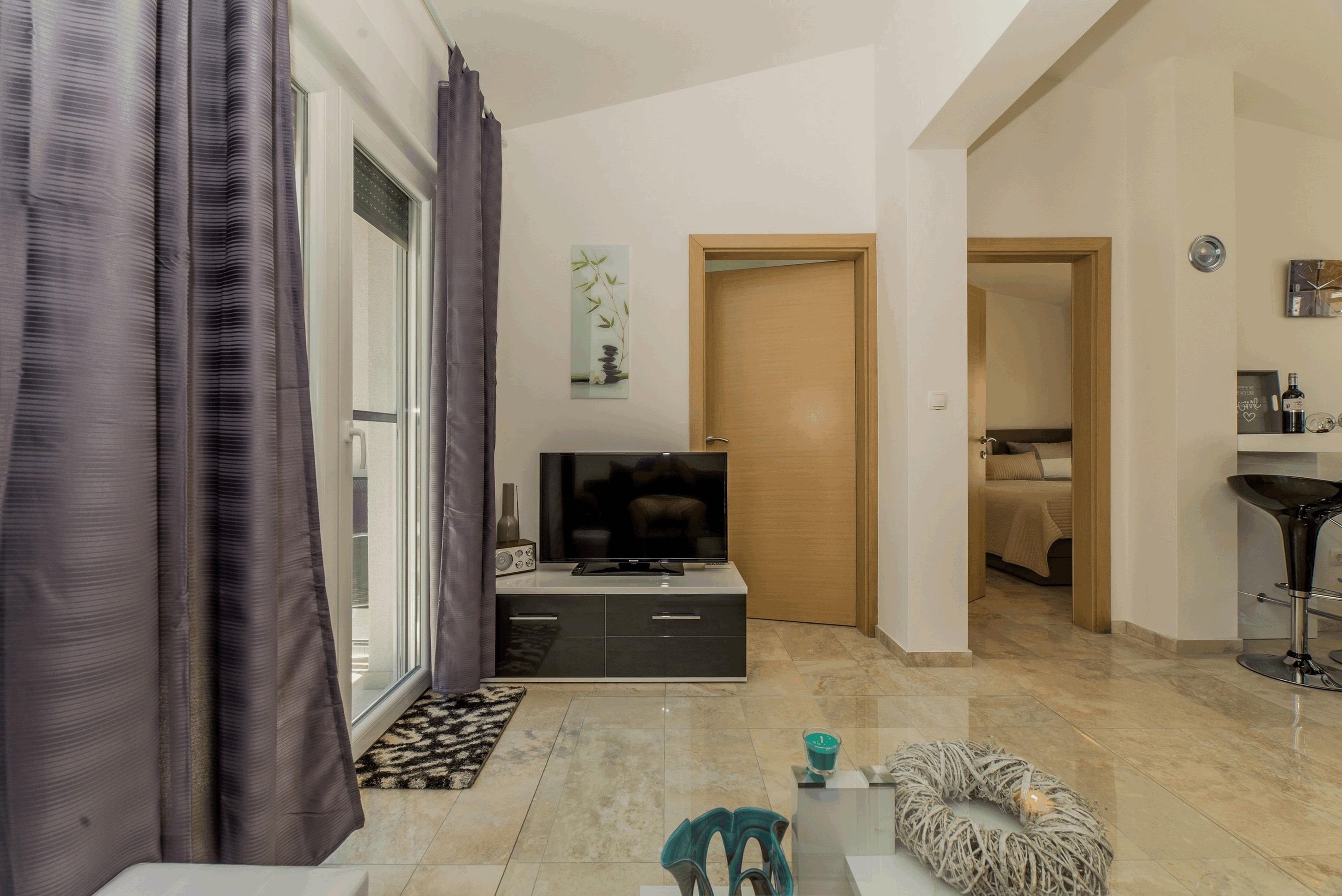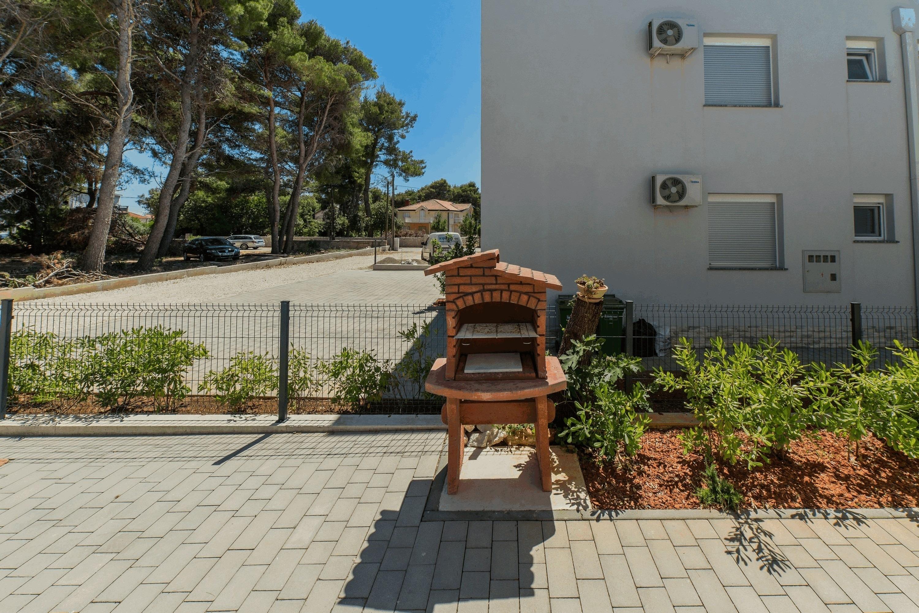 Das Apartment bietet Platz für bis zu 6 Personen. Die 40 m² große Unterkunft in der 1. Etage des Hauses ist modern und gehoben eingerichtet und bietet Ihnen zwei Schlafzimmer mit Doppelbett, ein Badezimmer mit Dusche sowie einen Wohnbereich mit Küche. Eine Schlafcouch für zwei Personen befindet sich im Wohnraum. Eine gut ausgestattete Küche, Klimaanlage, Sat-TV, Internetzugang per WLAN, Waschmaschine, möblierte Balkon und Grill im Innenhof zählen zu den weiteren Ausstattungsmerkmalen. Restaurants, Einkaufsmöglichkeiten und das Zentrum des Ortes Vir erreichen Sie innerhalb weniger Gehminuten. Nur 200 m vom Haus entfernt erwarten Sie die schöne Kiesel Strand Jadro im Zentrum von Vir. Hier wird eine große Vielfalt an unterhaltsame Freizeitaktivitäten und kinderfreundlichen Unterhaltungsprogrammen angeboten.