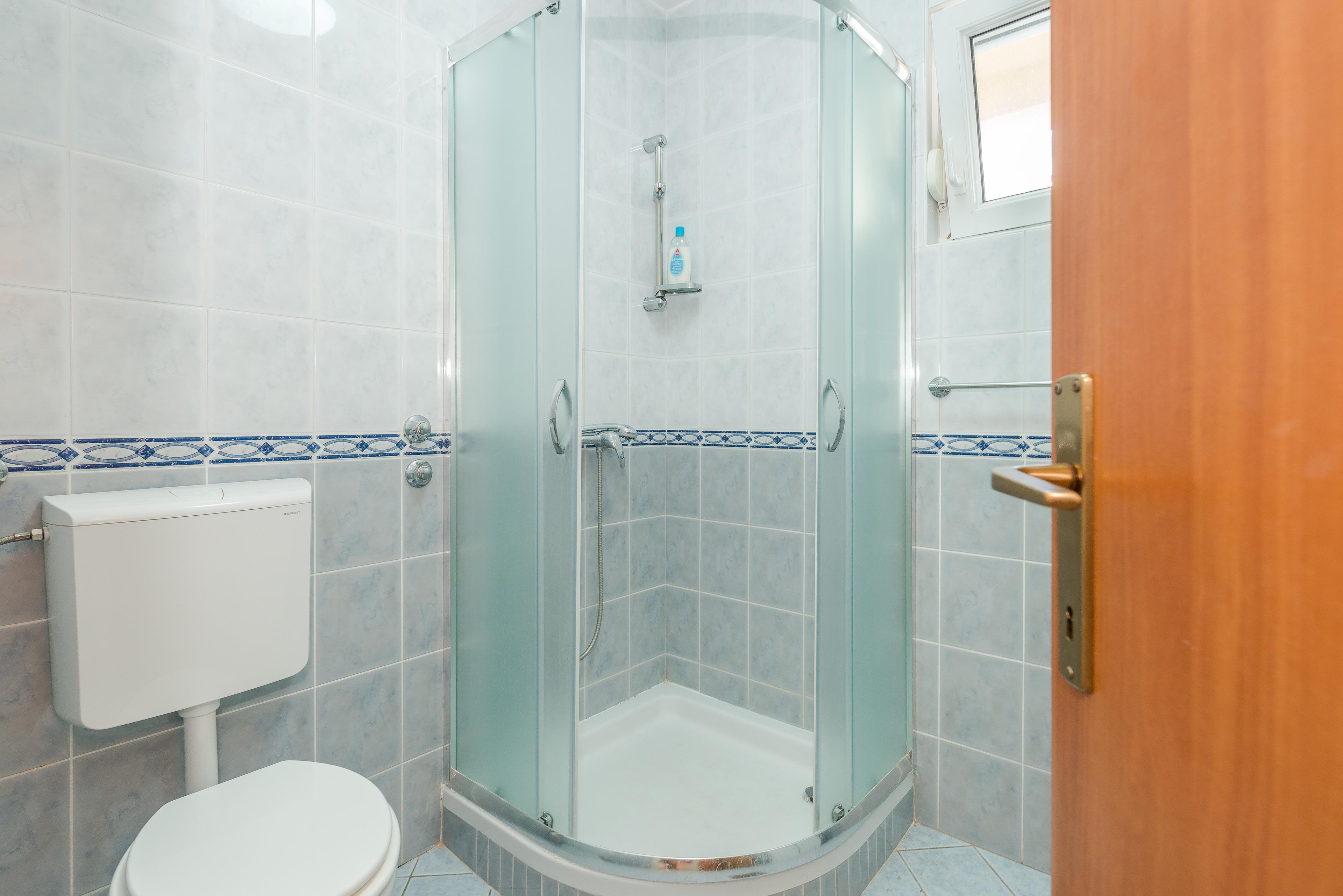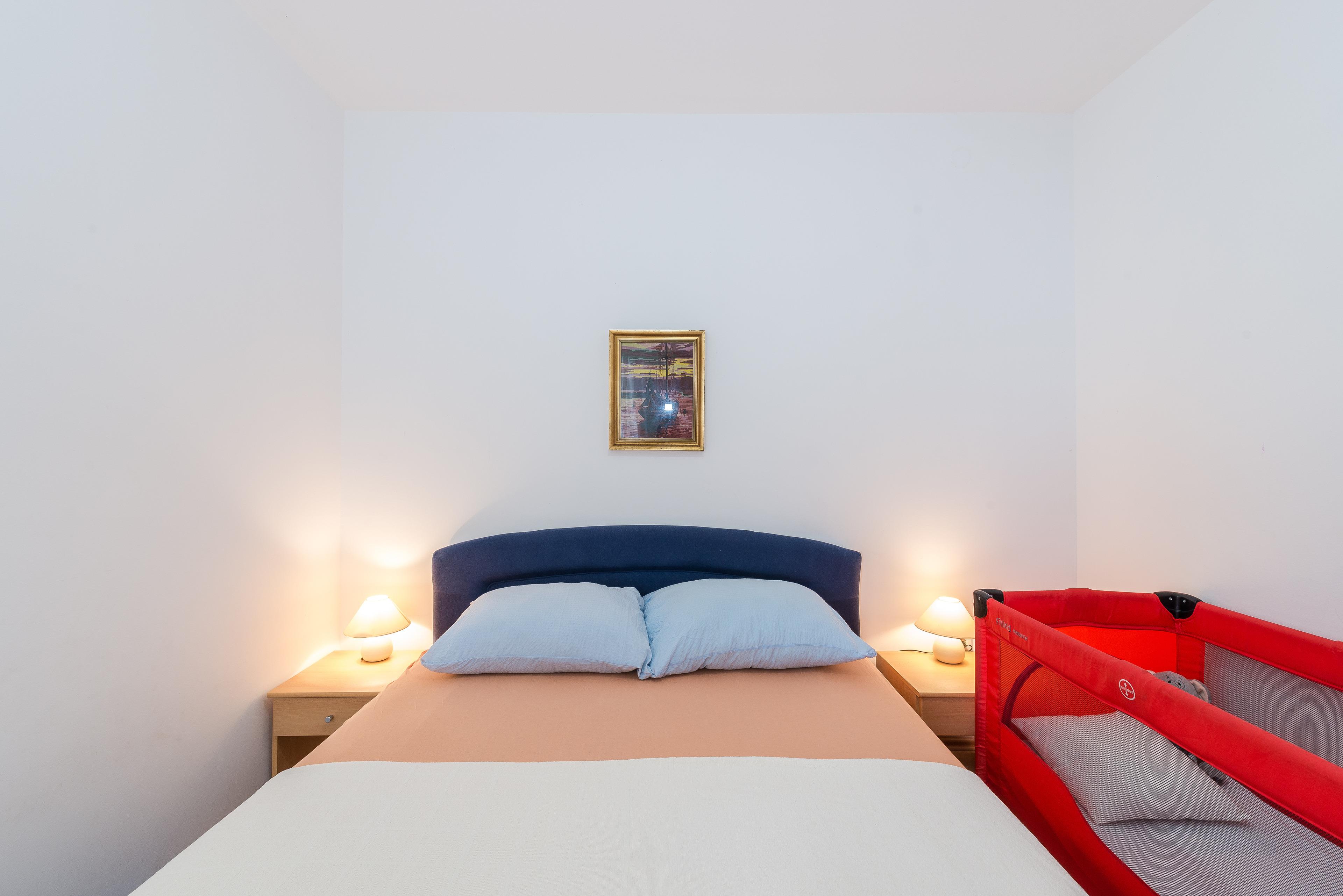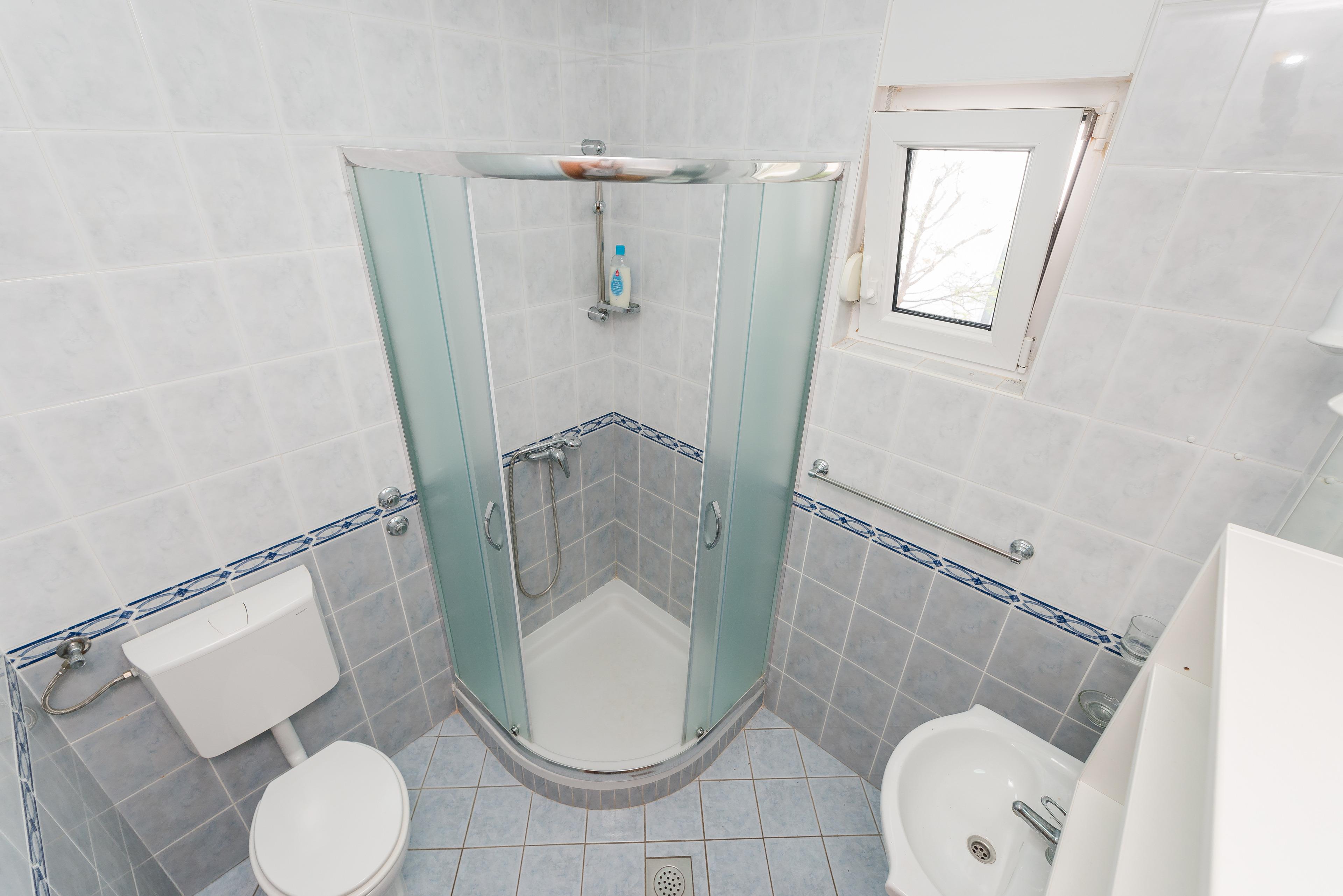 Ferienwohnung (45 m²) für 2-4 Personen im Erdgeschoss des Hauses befindet sich in eine ruhige Gegend der Insel Vir-Bobovik. Die Wohnung ist aufgeteilt in ein Wohnzimmer mit Küche und Esszimmer, Schlafzimmer mit Doppelbett und Badezimmer mit Dusche.