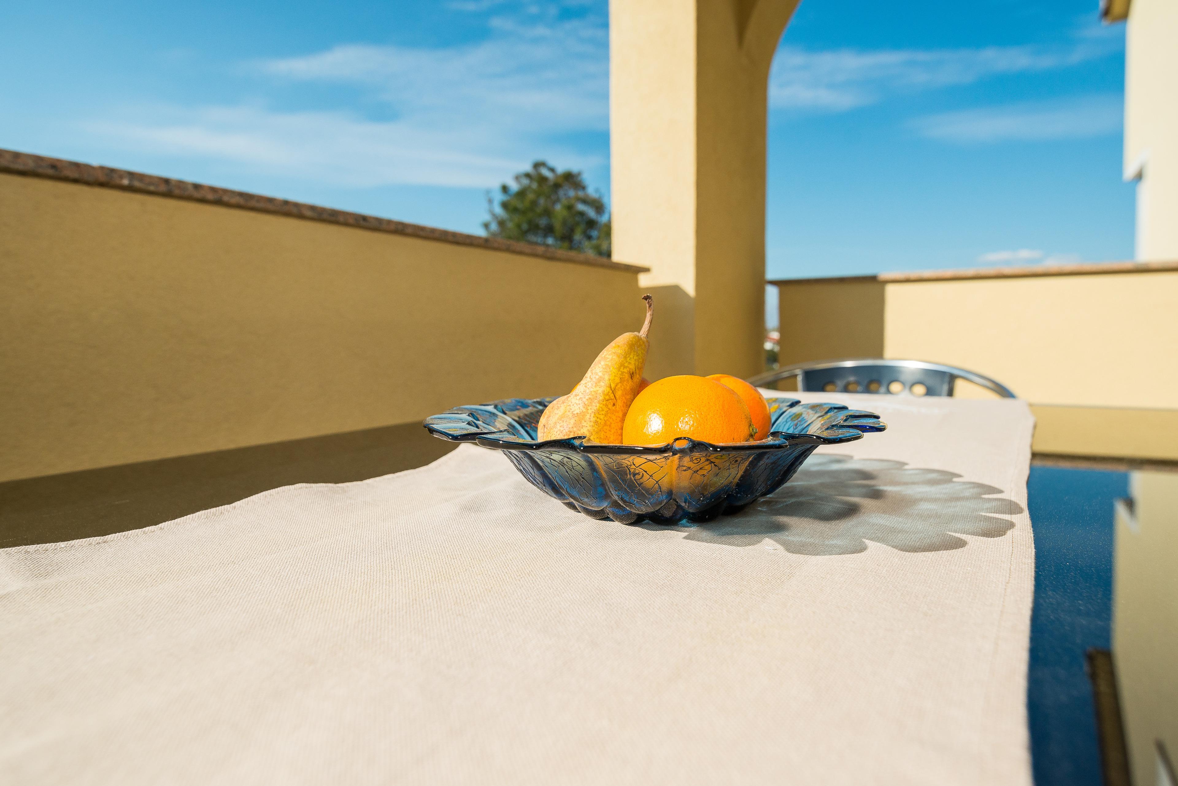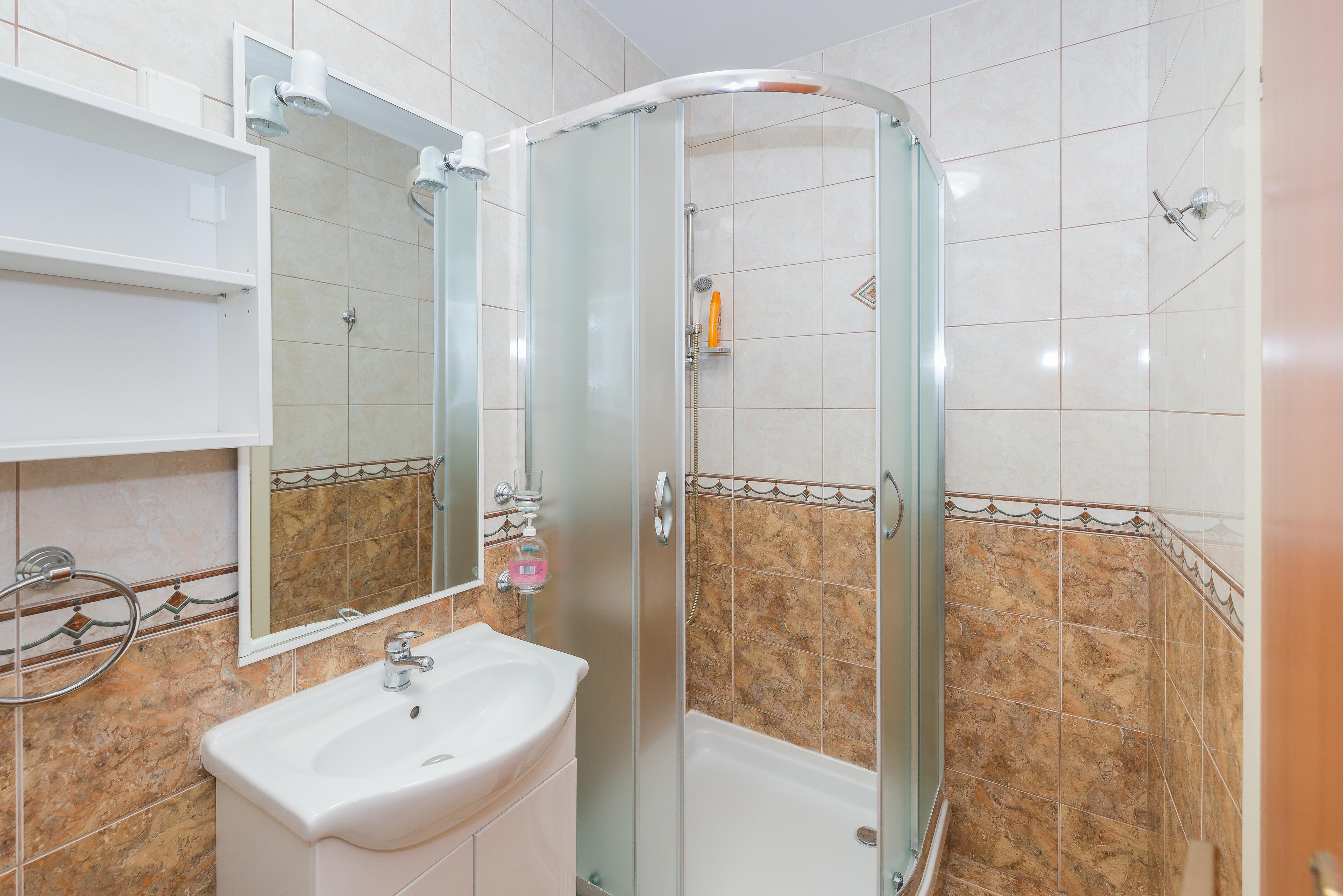 Die Wohnung ist aufgeteilt in ein Wohnzimmer mit Küche und Esszimmer, ein Doppelzimmer mit einem Doppelbett, zwei Einzelzimmer mit einem Bett für eine Person und ein Badezimmer mit Dusche. Im Wohnzimmer befindet sich ein Schlafsofa für zwei weitere Personen. Vom Wohnzimmer aus gelangt man auf eine möblierte und überdachter 8 m² Balkon. Zu den weiteren Annehmlichkeiten gehören Klimaanlage, Sat-TV, WLAN. Kinderbett auf Anfrage. Eine gemeinsame Lounge befindet sich im Keller des Hauses die umfasst eine Bar, Sitzplätze, Darts, SAT TV, Radio, Klimaanlage und Kühlschrank mit Gefrierfach. Hinter dem Haus gibt es einen Parkplatz für Fahrräder. Im geräumigen Innenhof des Hauses (200 m²) befindet sich ein Pavillon mit Grill und Gartenmöbeln, ideal für Versammlungen in warmen Sommerabenden. Die Wohnung befindet sich in einer Entfernung von 70 m vom Meer und 150 m von Shops und Restaurants. Haustiere sind gegen einen Aufpreis von 15 EUR pro Tier und Nacht willkommen.