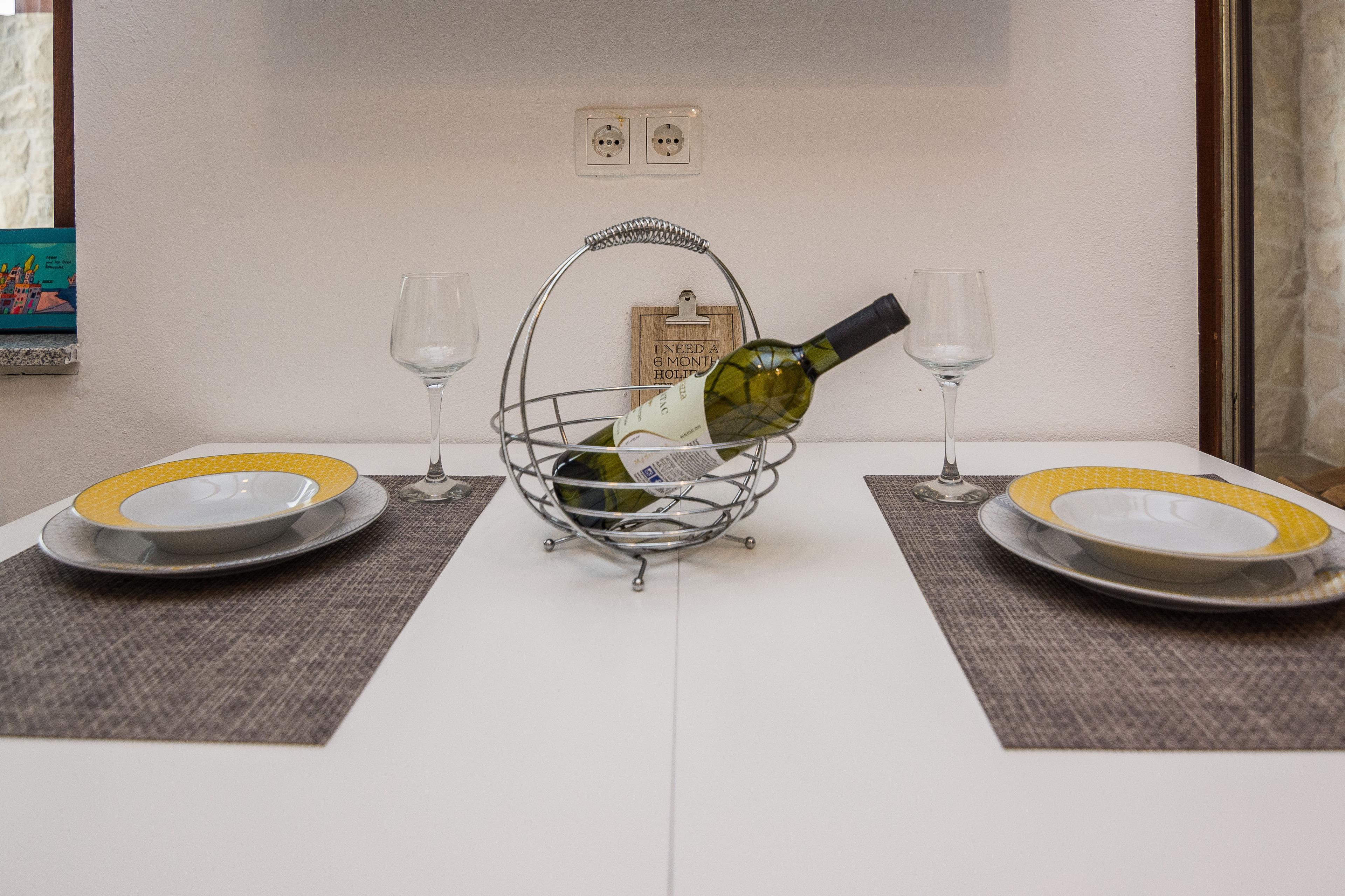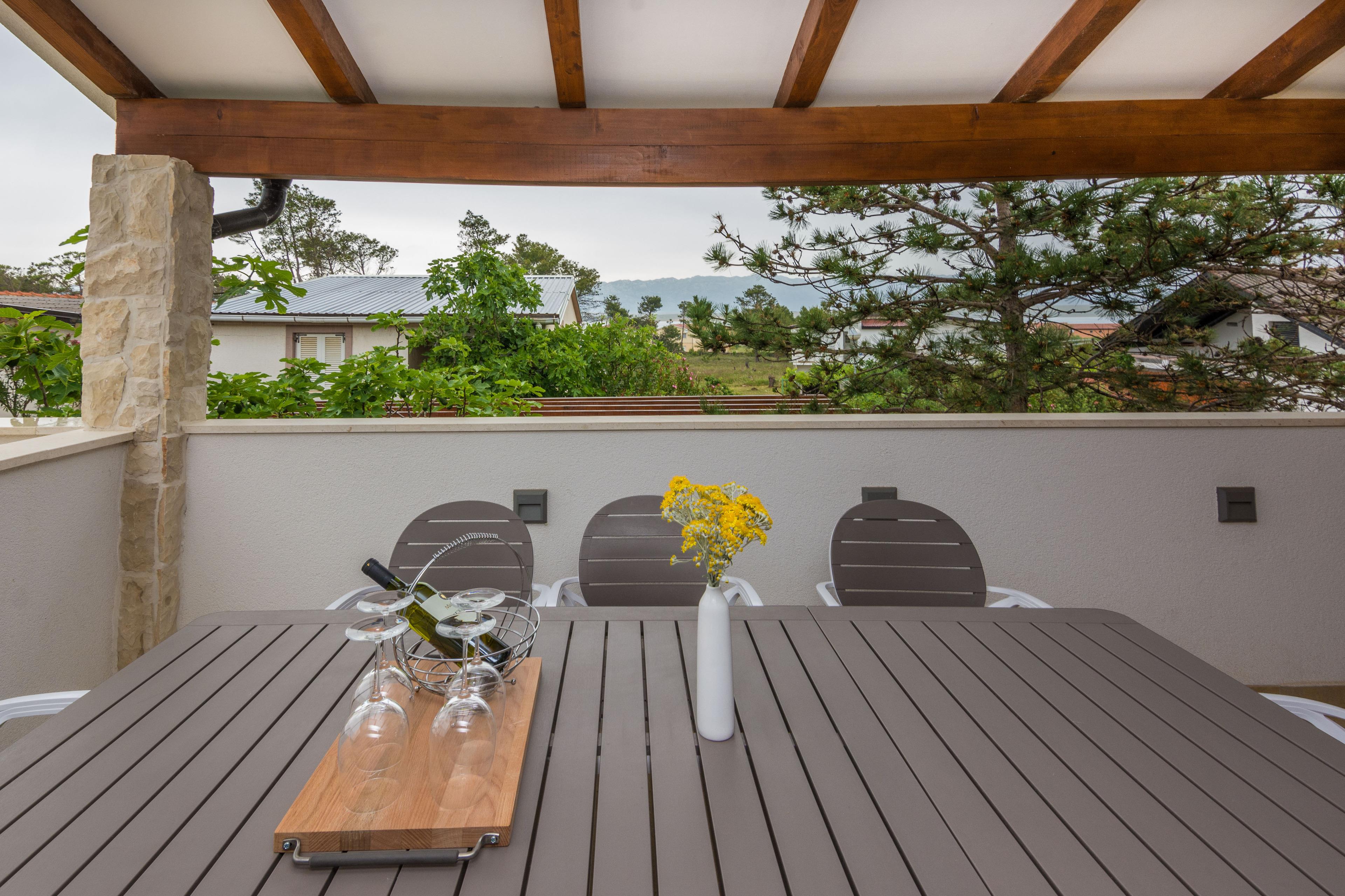 Die 45 m2 FeWo verfügt über ein Wohnzimmer mit Küche und Essbereich, zwei Schlafzimmern mit Doppelbett und Bad mit Dusche. Vom Wohnzimmer aus gelangen Sie auf eine möblierte und überdachte Balkon 15 m2 mit Tisch, Stühlen und Liegestühlen. Weitere Merkmale dieses Apartments sind Klimaanlage, WLAN, Sat-TV, Grill im Innenhof, Parkplatz auf dem Grundstück, Waschmaschine, Geschirrspüler. Kinderbett und Kinderstuhl sind auf Anfrage und ohne Aufpreis erhältlich. Restaurants und Geschäfte erreichen Sie in einen kurzen Spaziergang. In einer Entfernung von 200 m von den Apartments befindet sich einen Kiesstrand und Bucht Brdonja.