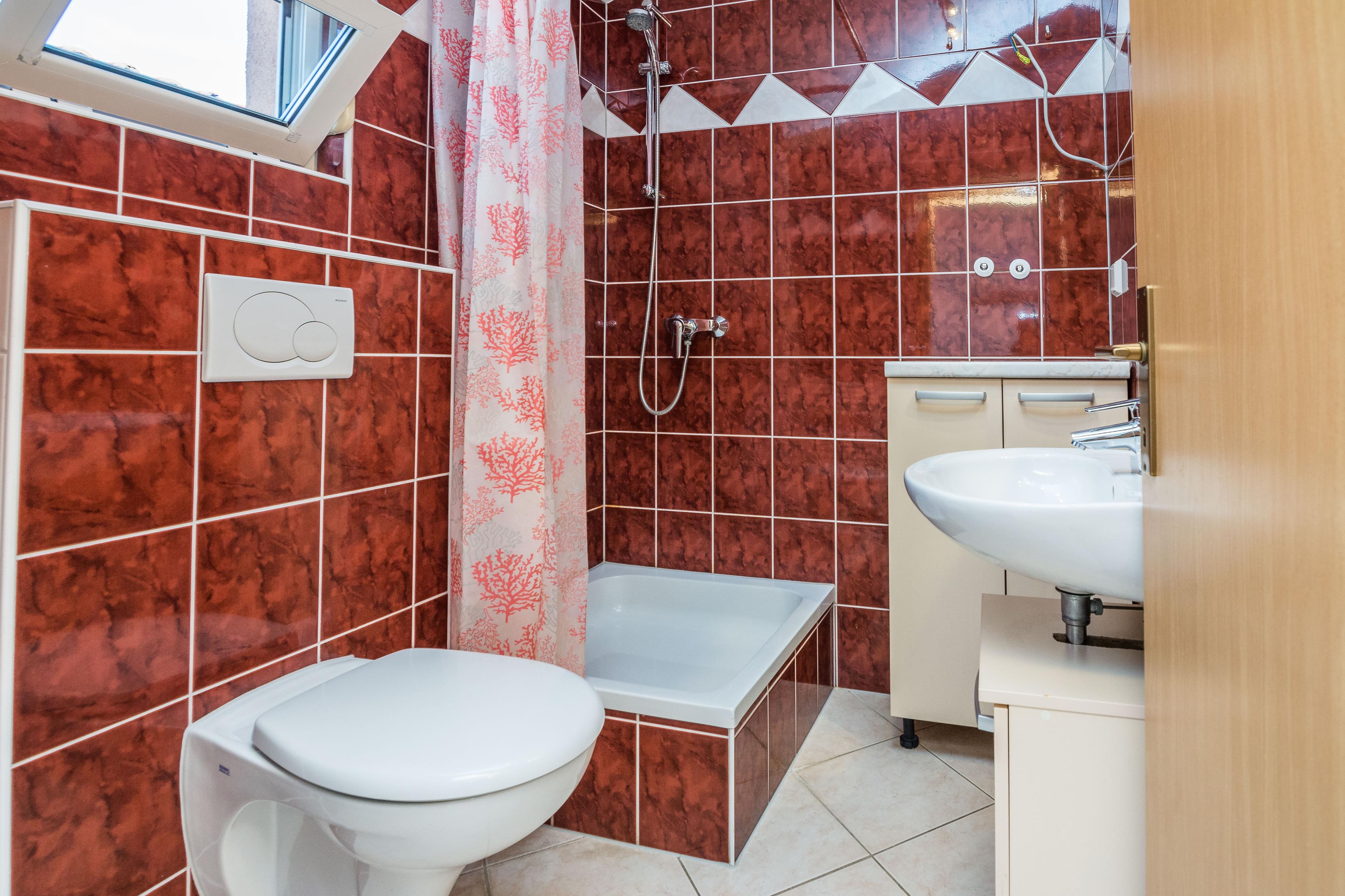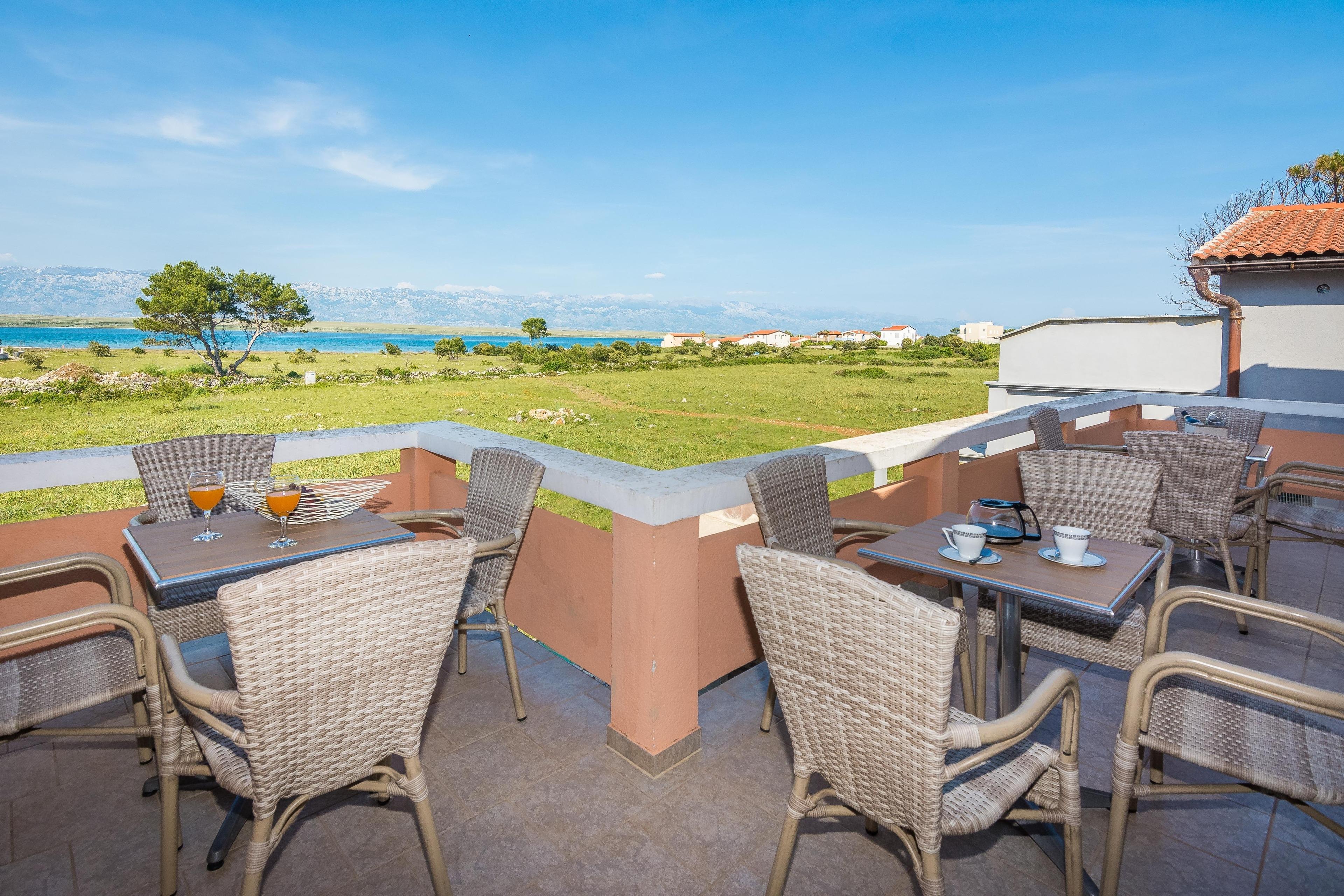 Die 45 m2 Unterkunft im ersten Stock des Hauses teilt sich auf in ein Wohnbereich mit Küche, ein Schlafzimmer mit Doppelbett und ein Badezimmer mit Dusche und Toilette. Im Wohnzimmer befindet sich ein Schlafsofa für zwei weitere Personen. Zu dem Apartment gehören zwei 10m2 gemeinsame Balkons, ausgestattet mit Tisch und Stühlen, die laden zum Entspannen und Genießen im Meerblick ein. Klimaanlage, Internetzugang, Sat-TV, Grill, Parkplatz auf dem Grundstück sowie Bettwäsche und Handtücher sind unter anderen vorhanden und kostenlos.