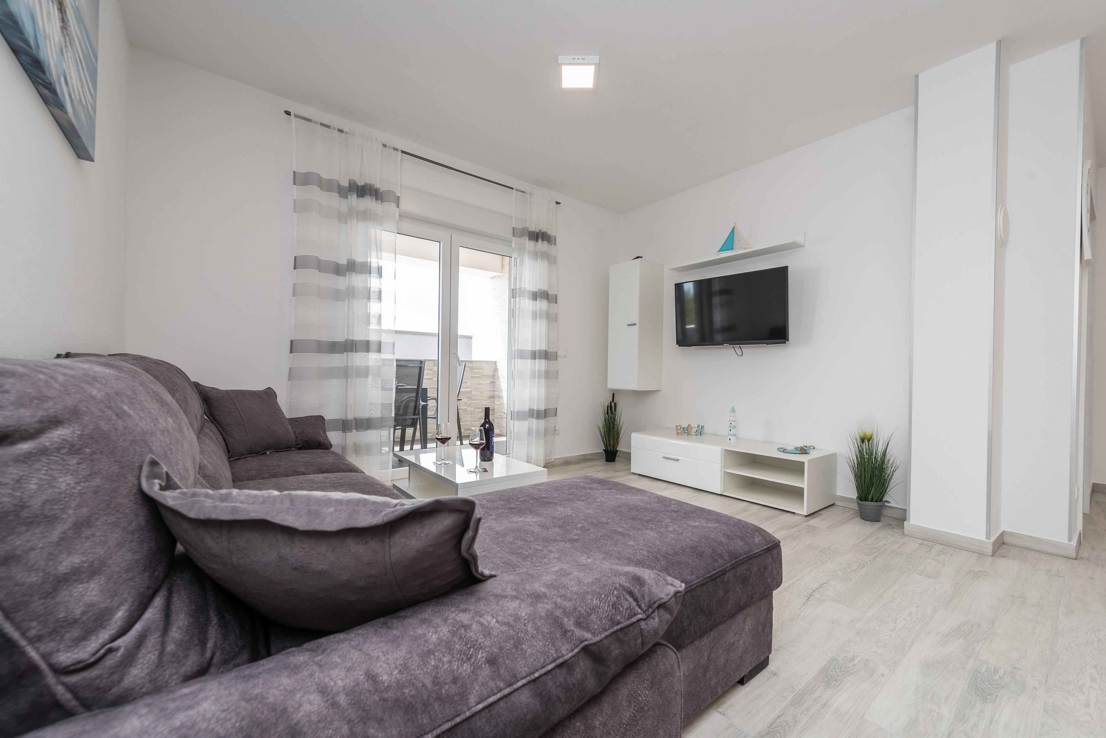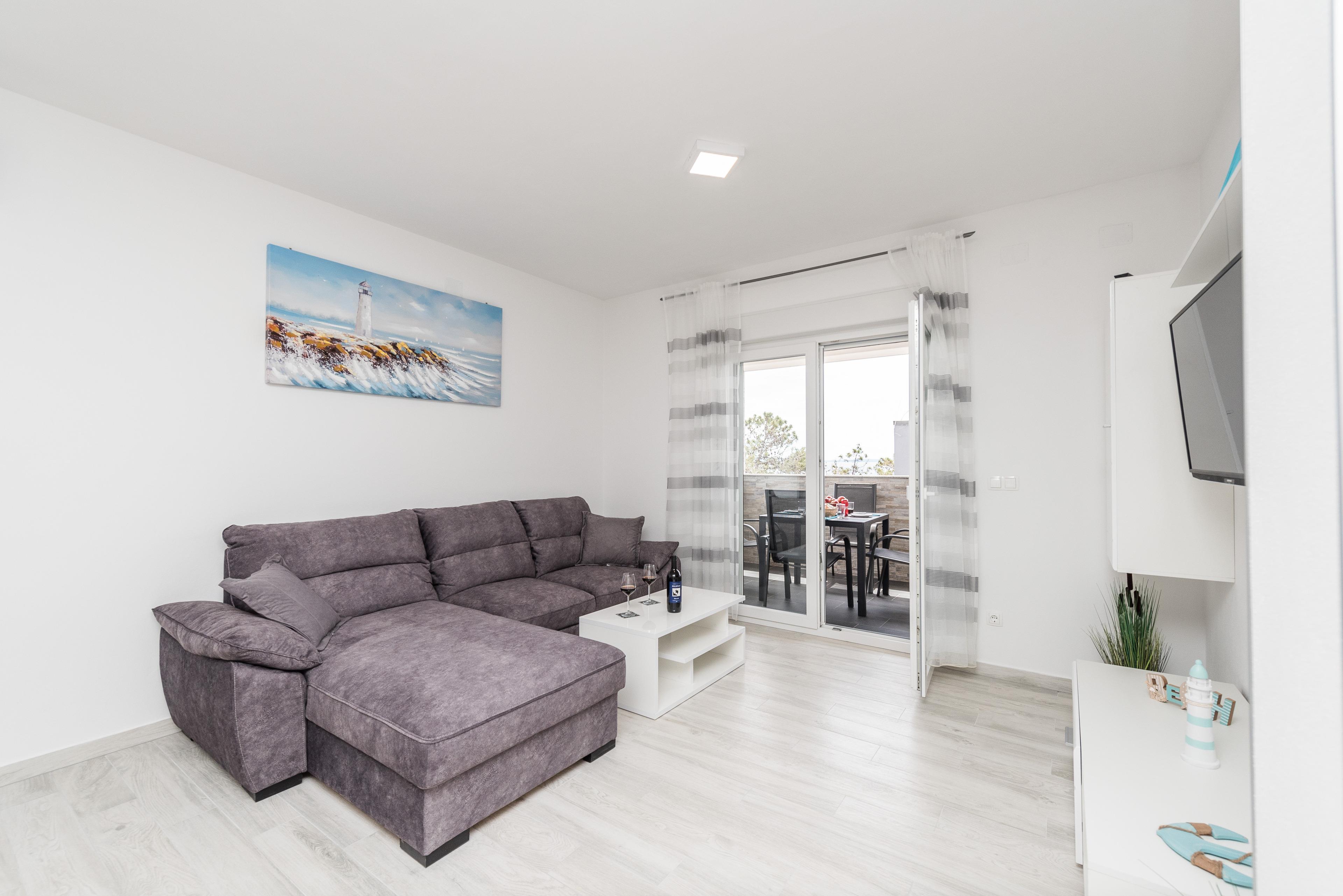 In ruhiger Lage namens Radovanjica befindet sich dieses moderne Appartement, nur 150 m vom Kieselstrand entfernt, und bietet Platz für bis zu 6 Personen.