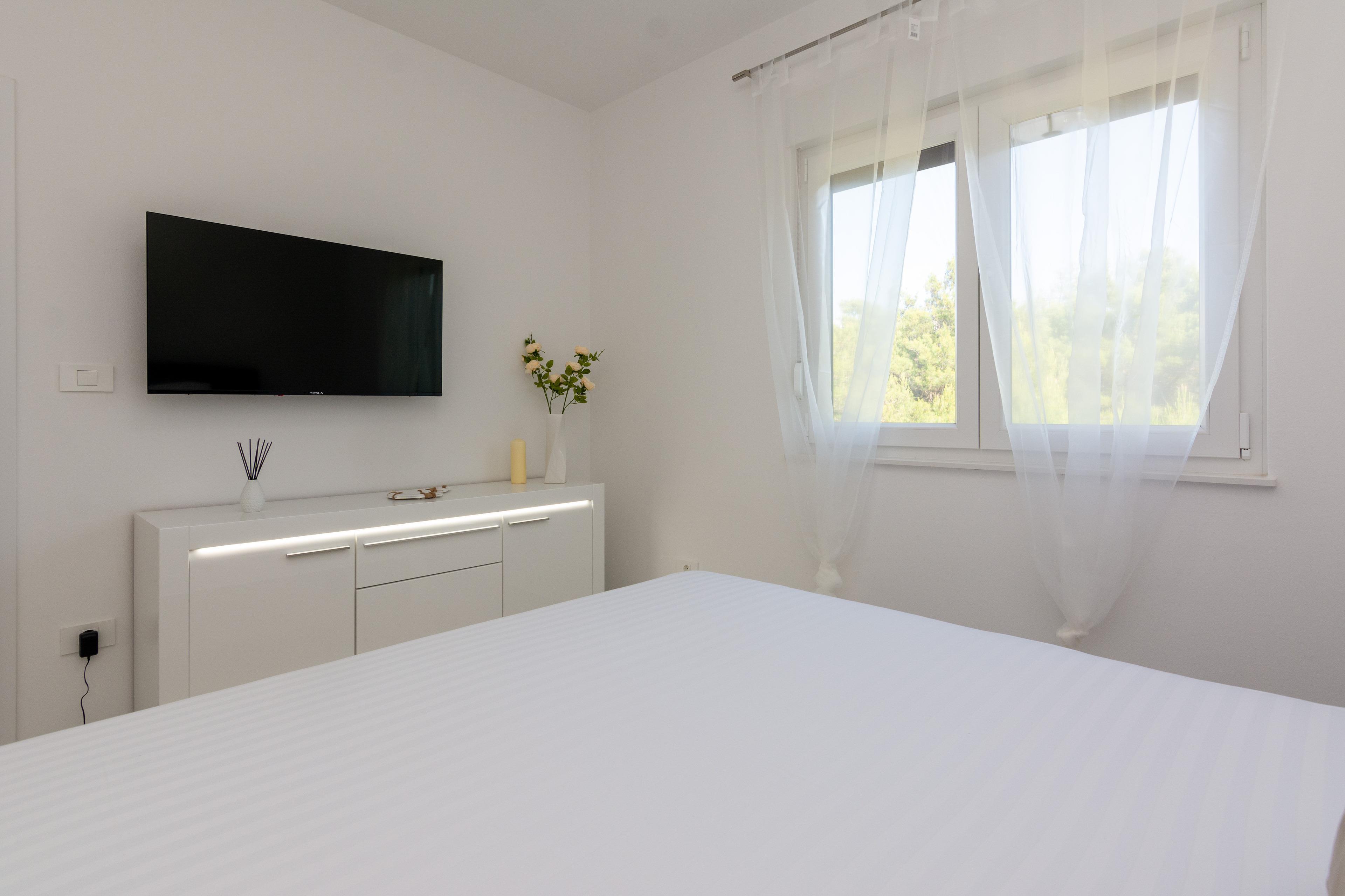 Diese Wohnung im ersten Stock eines Einfamilienhauses ist ideal für 4-5 Personen. Es befindet sich in einer ruhigen Lage der Insel Vir namens Smratina.