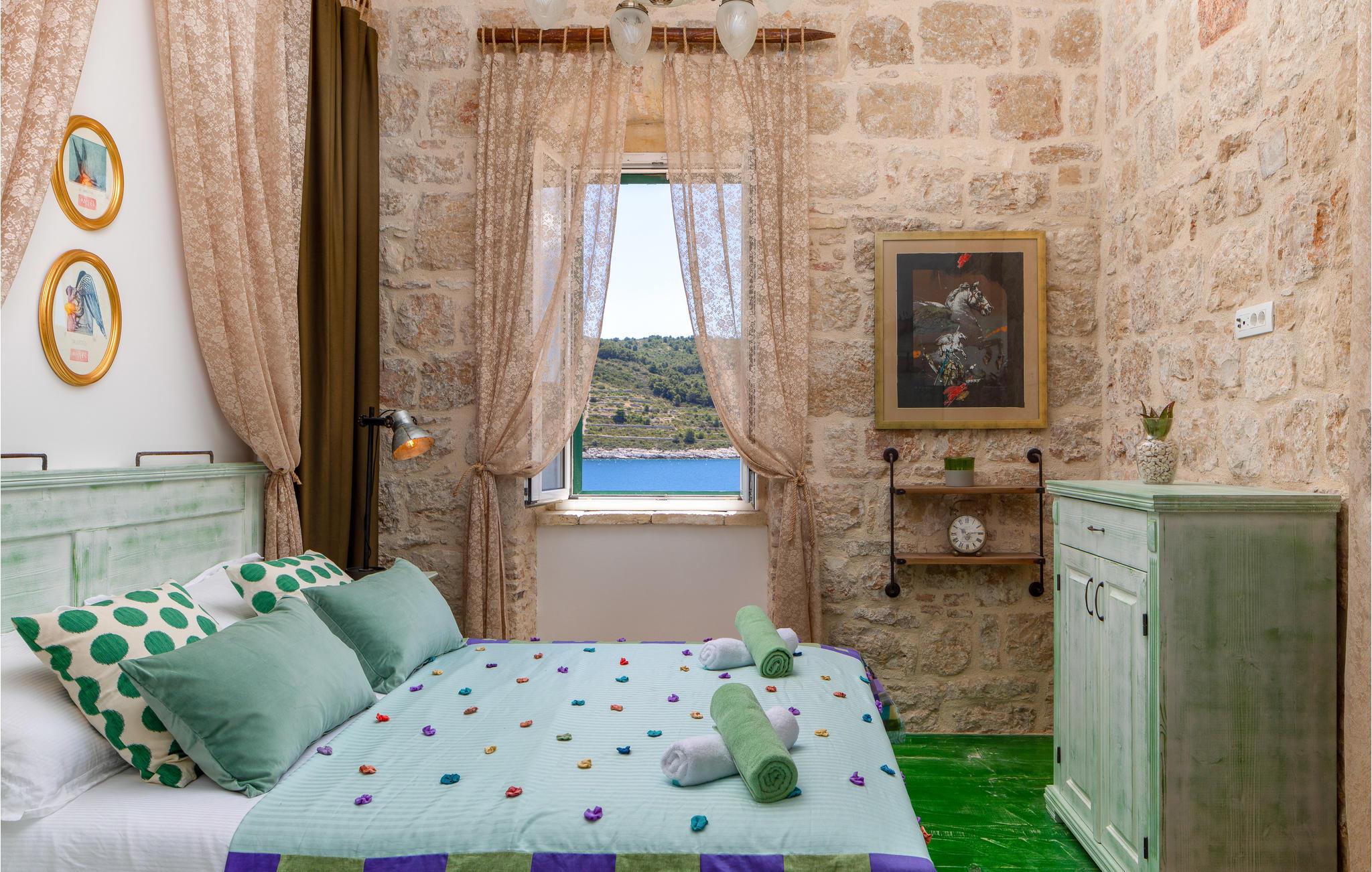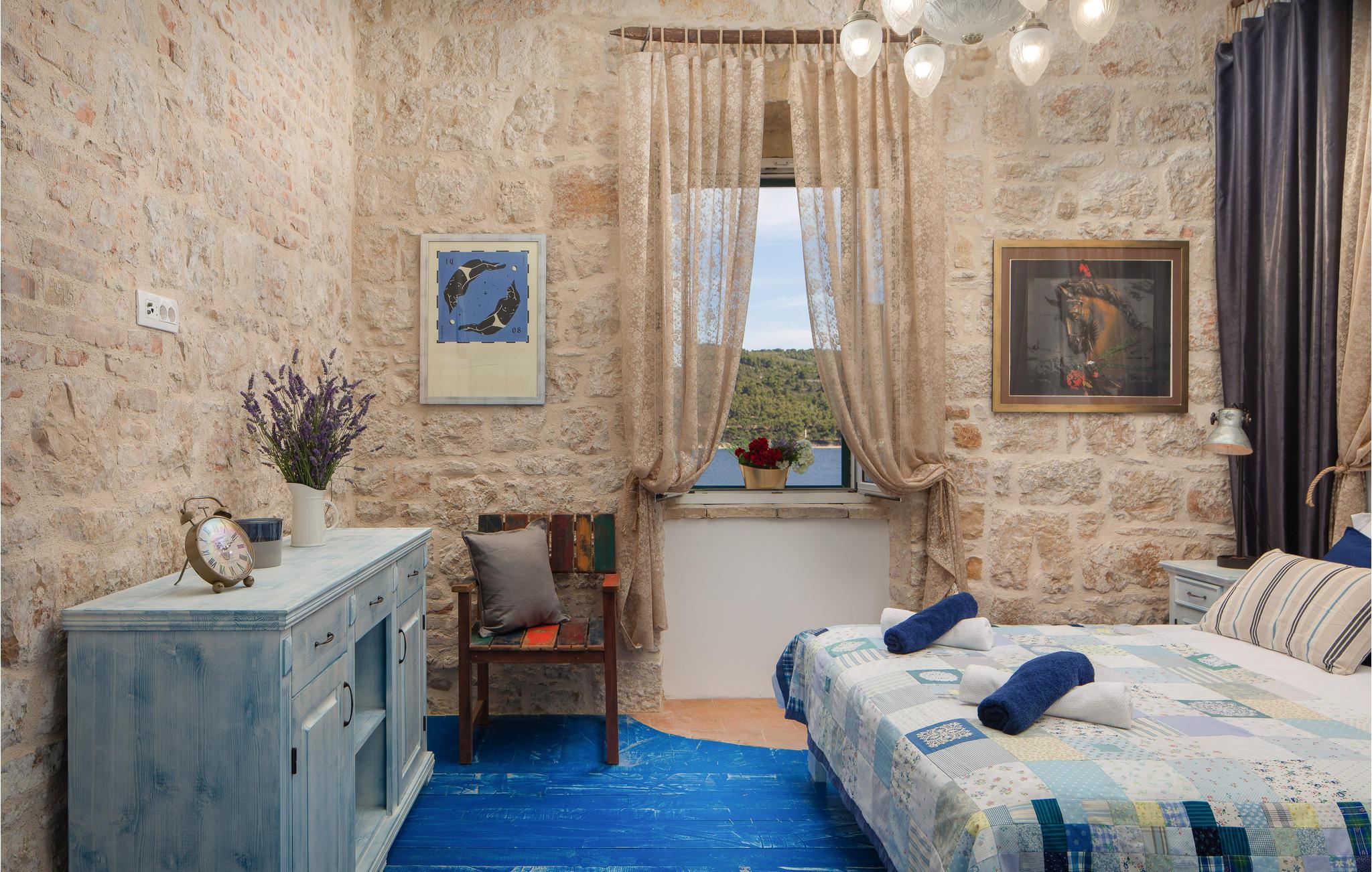 I tilbringer jeres ferie lige ved havet og kan svømme langs den stenede kyst ved feriehuset. Husejeren tilbyder bådtransport fra og til byen Vis ved ankomst og afrejse, såvel som i løbet af ferien.