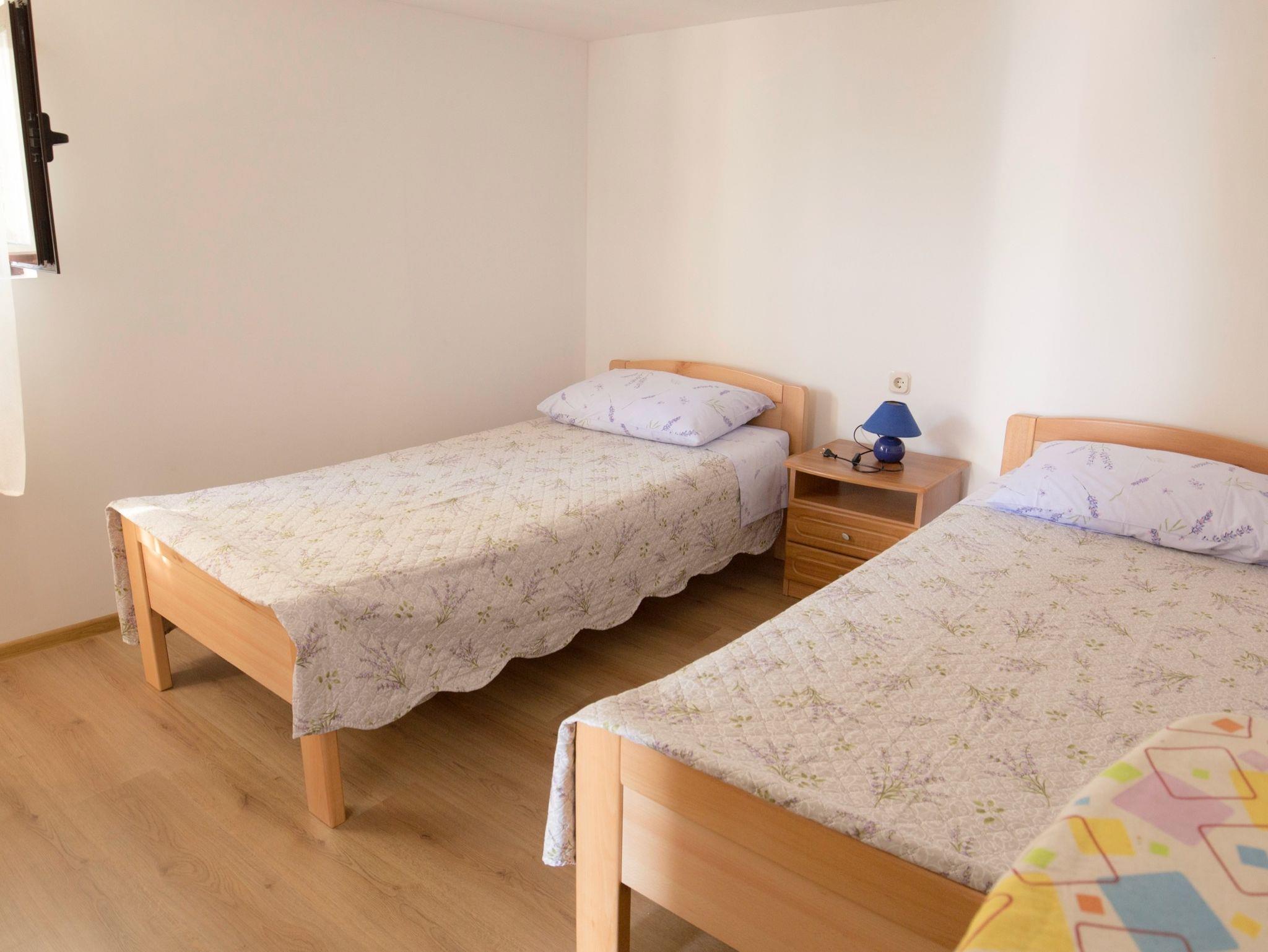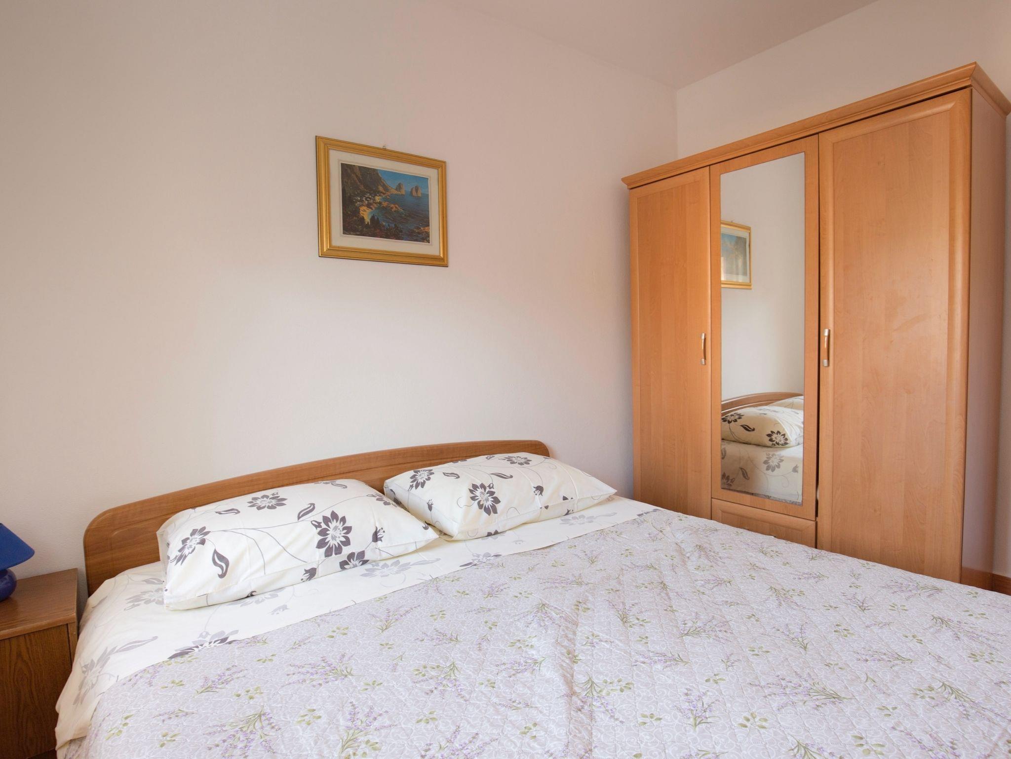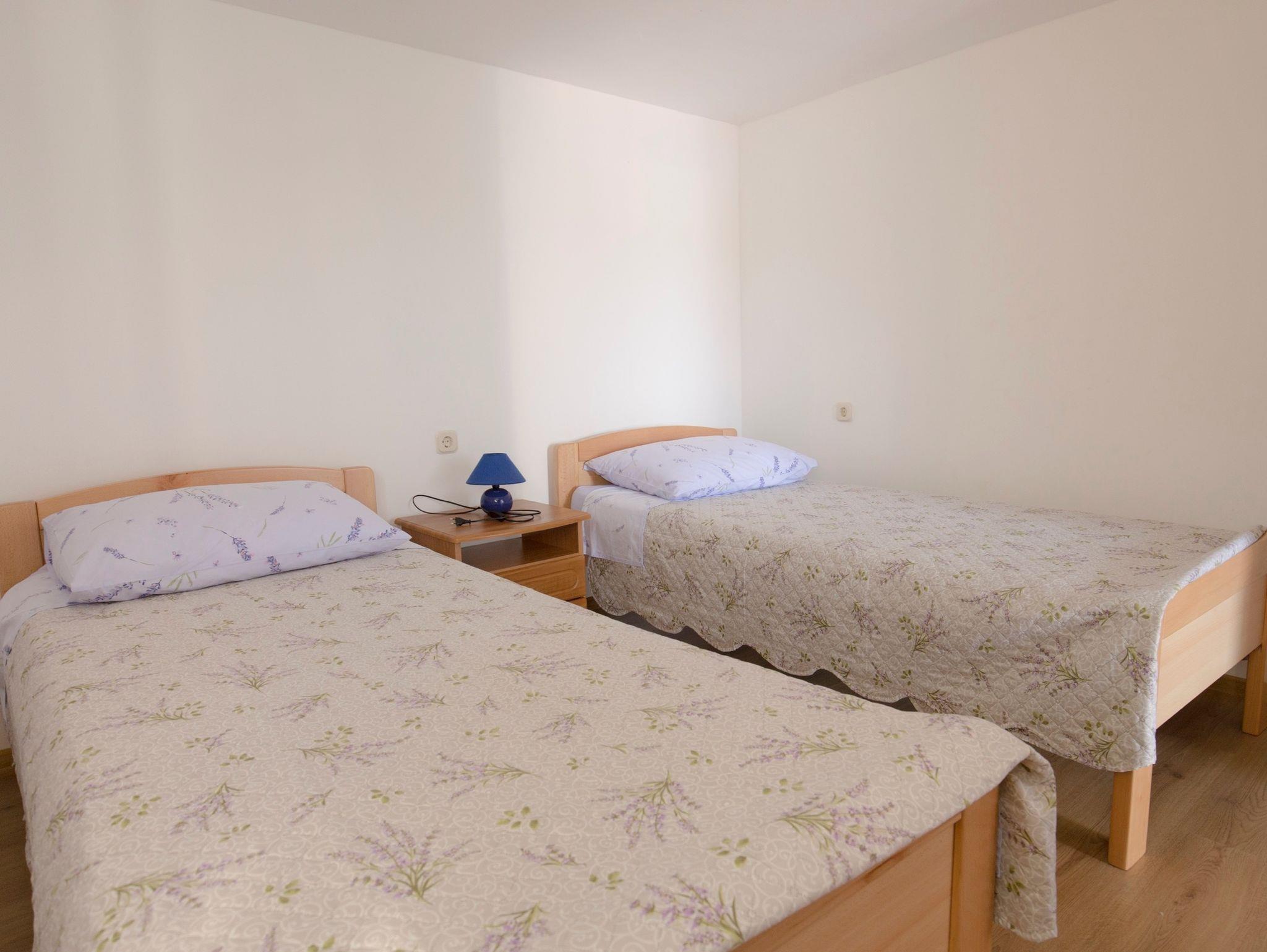 Ferienwohnung bietet Platz für 4 Gäste. Die Betten sind in Schlafzimmern, die es 2 gibt, innerhalb einer Gesamtfläche von 39m2, angeordnet. Es ist erlaubt, Speisen auf dem Gemeinschafts-Grill vorzubereiten. Die reservierte Unterkunftseinheit hat keinen Balkon und keine Terrasse. IM PREIS INBEGRIFFEN: Kurtaxe, Endreinigung, Klimatisierung, Internet, Bügeleisen, Bügelbrett, Föhn. VERBINDLICHE ZUSÄTZLICHE KOSTEN: Aufzahlung für Kurzaufenthalte (prozentualer Zuschlag pro Nächtigungsanzahl: 30% - 1, 20% - 2, 10% - 3). Die Verfügbarkeit zusätzlicher Dienstleistungen in Ihrem reservierten Termin und die Preise derselben (falls nicht aufgeführt) müssen im Voraus überprüft werden. Zusätzliche Dienstleistungen die in der Zahlungsaufforderung nicht aufgeführt sind werden direkt beim Vermieter bezahlt, angenommen der Gast nutzt auch diese.