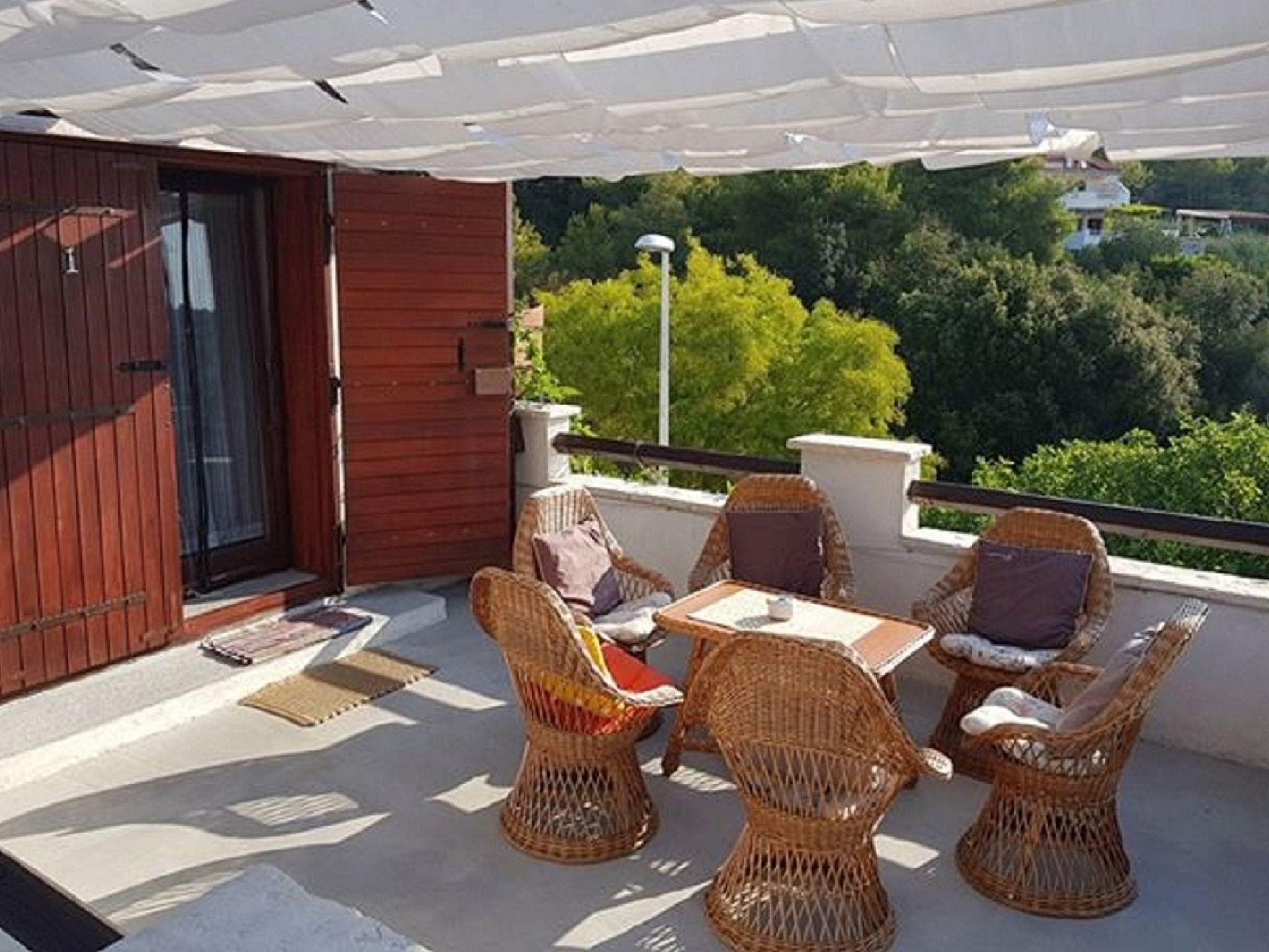 Ferienwohnung bietet Platz für 6 Gäste. Die Betten sind in Schlafzimmern, die es 3 gibt, innerhalb einer Gesamtfläche von 70m2, angeordnet. Die Gäste haben eine eigene Terrasse zur Verfügung, auf der sie in warmen Sommernächten genießen können. Es ist erlaubt, Speisen auf dem Gemeinschafts-Grill vorzubereiten. In der Unterkunftseinheit besteht die Möglichkeit des Mitbringens von Haustieren, und die Dienstleistung ist im Preis der Unterkunft enthalten. IM PREIS INBEGRIFFEN: Kurtaxe, Endreinigung, Klimatisierung, Parkplatz, Internet, Haustiere, Kinderbett, Bügeleisen, Bügelbrett, Föhn, tragbarer Grill. Die Verfügbarkeit zusätzlicher Dienstleistungen in Ihrem reservierten Termin und die Preise derselben (falls nicht aufgeführt) müssen im Voraus überprüft werden. Zusätzliche Dienstleistungen die in der Zahlungsaufforderung nicht aufgeführt sind werden direkt beim Vermieter bezahlt, angenommen der Gast nutzt auch diese.