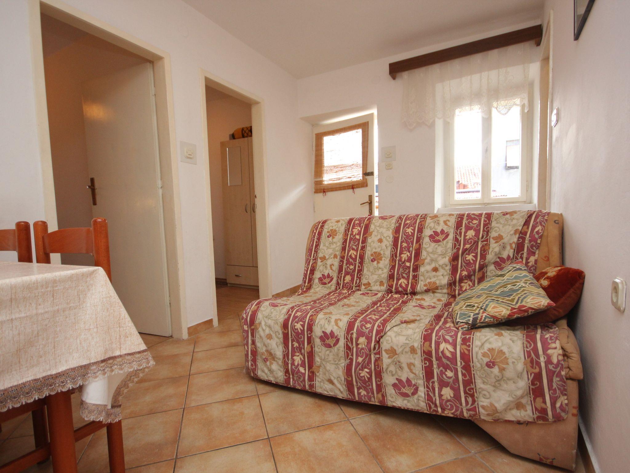 Ferienwohnung bietet Platz für 4 Gäste. Die Betten sind in Schlafzimmern, die es 2 gibt, und in Esszimmer, innerhalb einer Gesamtfläche von 31m2, angeordnet. Die Gäste haben einen eigenen Balkon zur Verfügung, auf der sie in warmen Sommernächten genießen können. IM PREIS INBEGRIFFEN: Kurtaxe, Endreinigung, Klimatisierung, Internet, Bügeleisen, Bügelbrett, Föhn. VERBINDLICHE ZUSÄTZLICHE KOSTEN: Aufzahlung für Kurzaufenthalte (prozentualer Zuschlag pro Nächtigungsanzahl: 30% - 1, 20% - 2, 10% - 3). Die Verfügbarkeit zusätzlicher Dienstleistungen in Ihrem reservierten Termin und die Preise derselben (falls nicht aufgeführt) müssen im Voraus überprüft werden. Zusätzliche Dienstleistungen die in der Zahlungsaufforderung nicht aufgeführt sind werden direkt beim Vermieter bezahlt, angenommen der Gast nutzt auch diese. Ermäßigung auf den Grundpreis: Gratistag 14=13 (bei einem Aufenthalt von 14 Tagen oder mehr erhalten Sie einen Gratistag für den Aufenthalt bis 31.12.26).